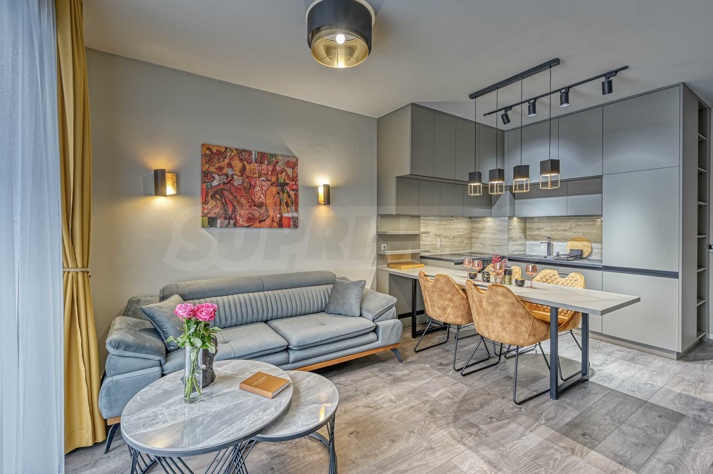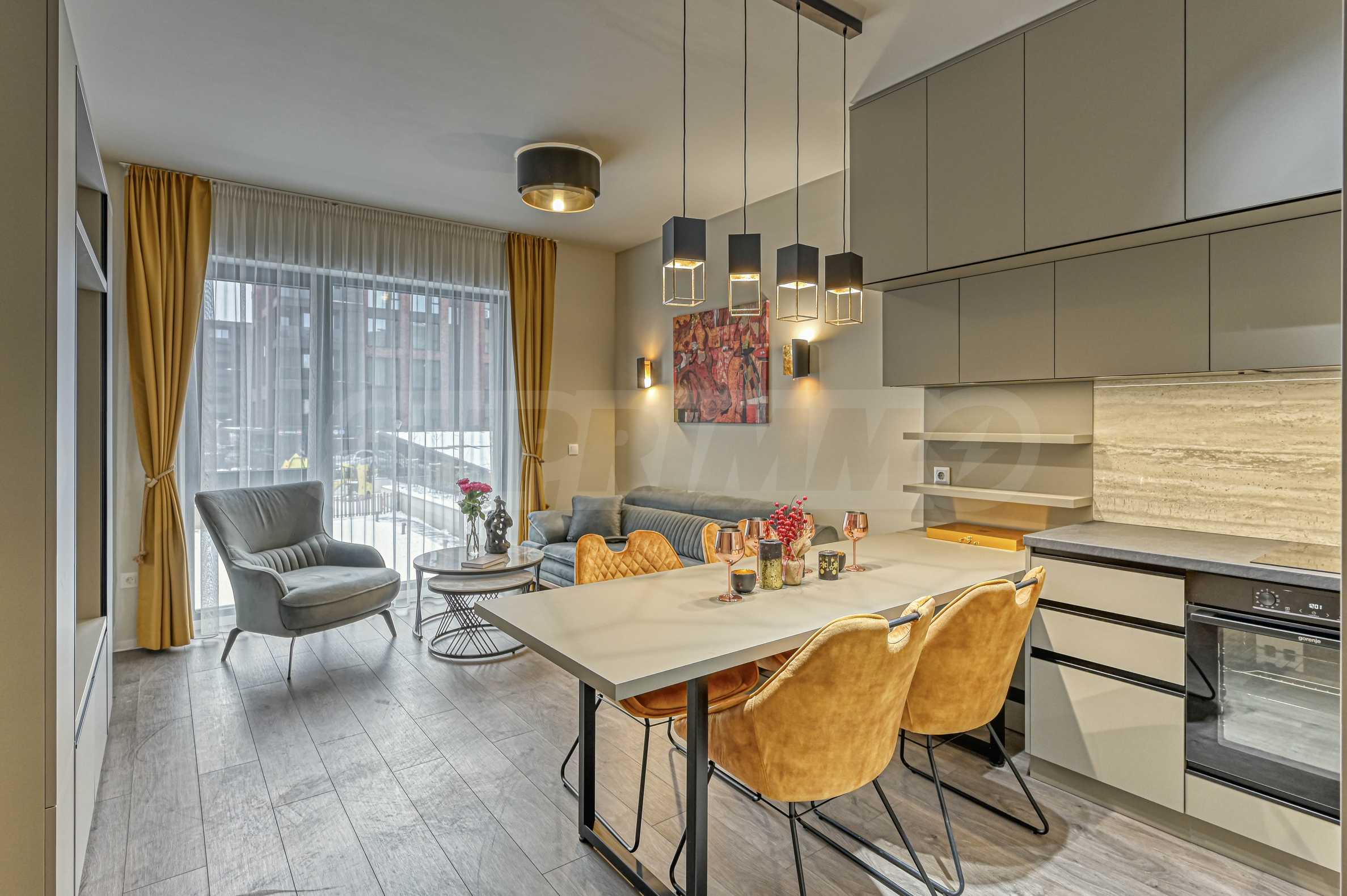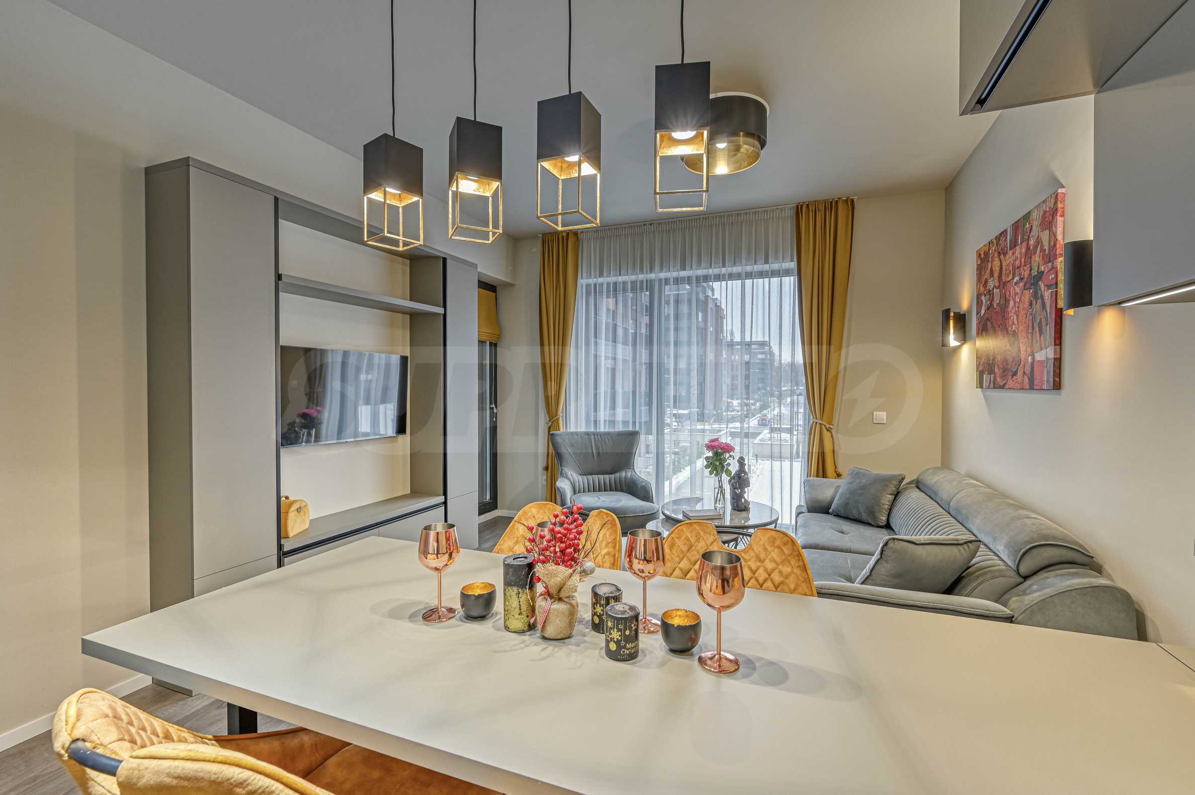 Напълно обзаведен с висококачествени мебели и електроуреди;