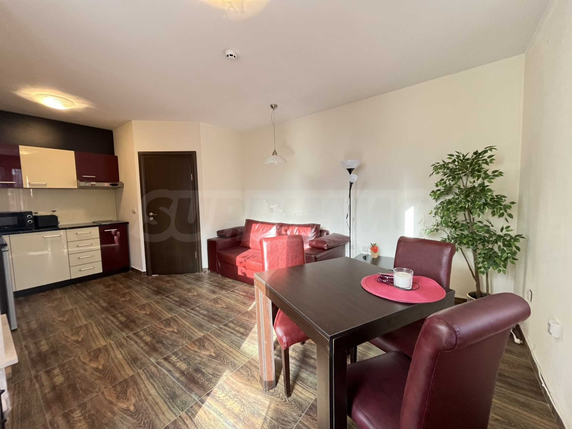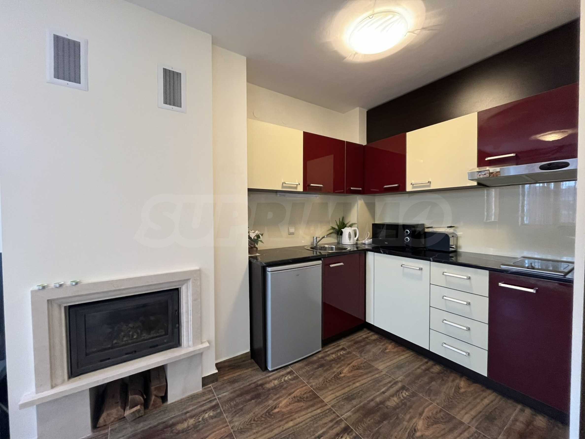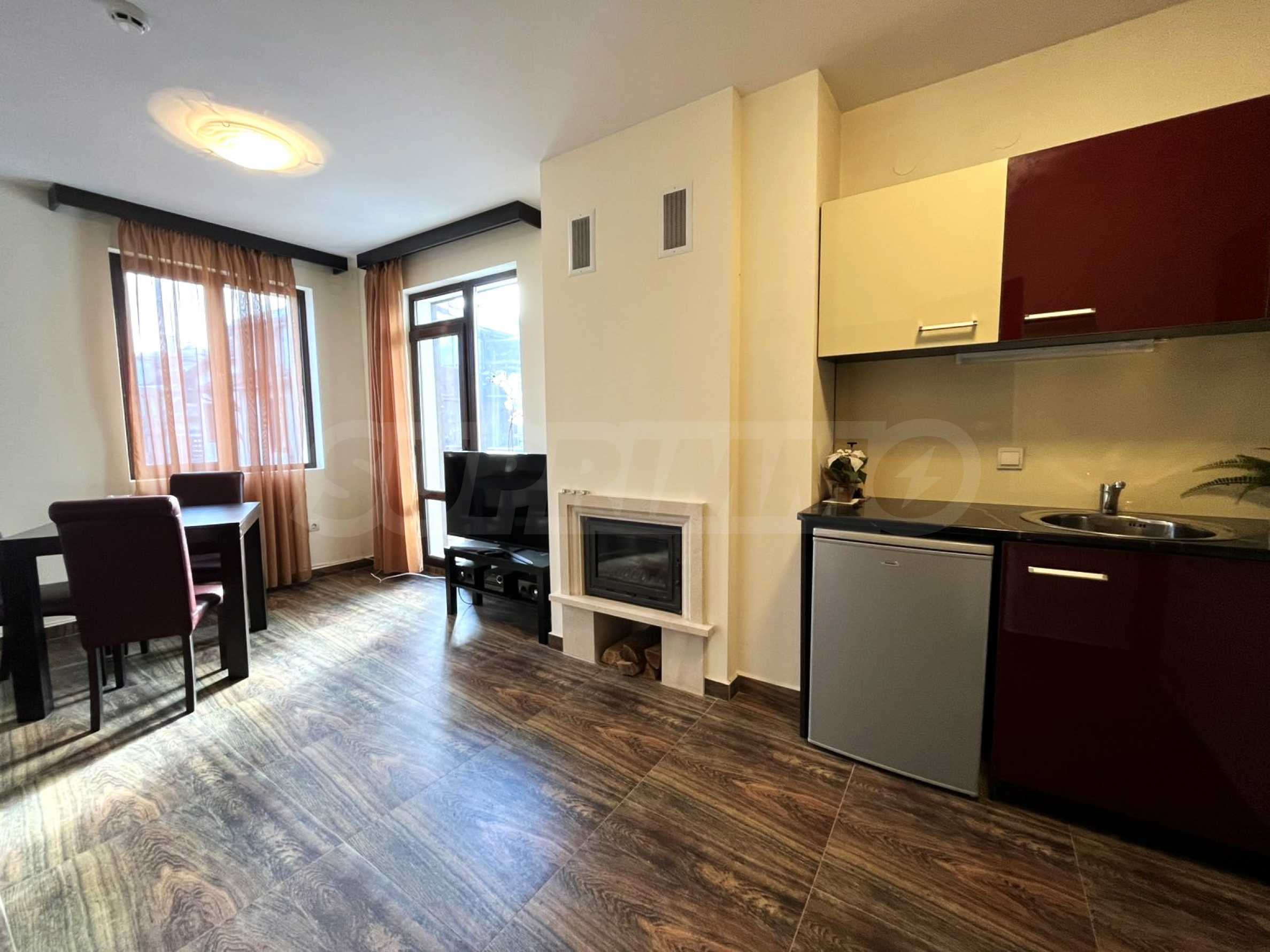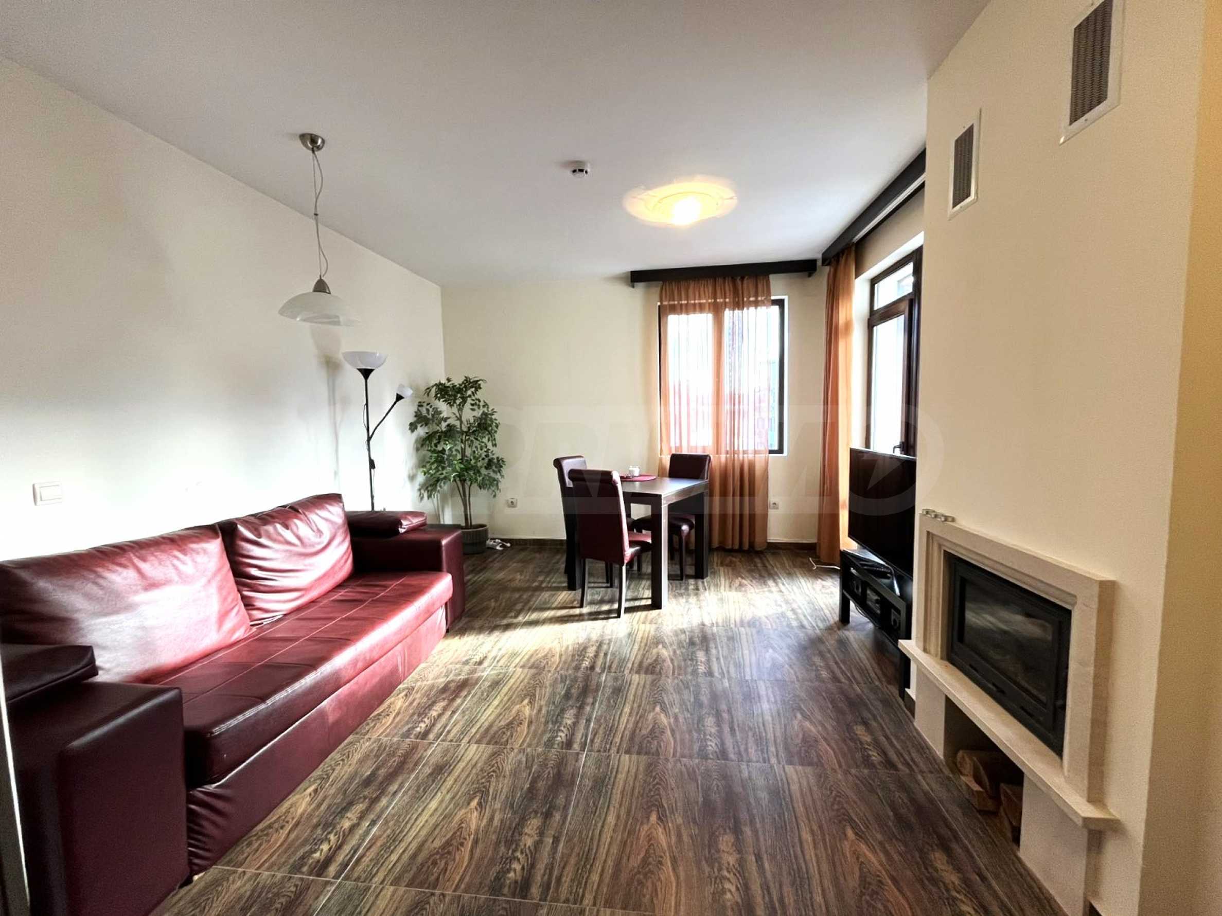 Южен двустаен апартамент с камина, разположен в жилищна сграда с ниска такса поддръжка, в близост до ски лифта в Банско