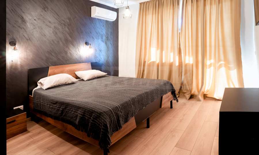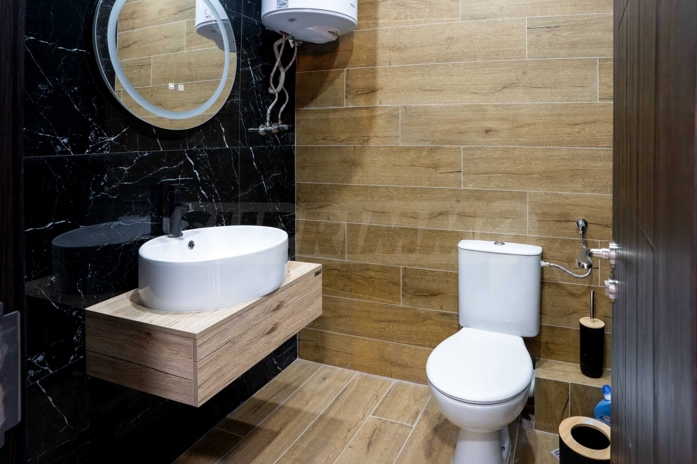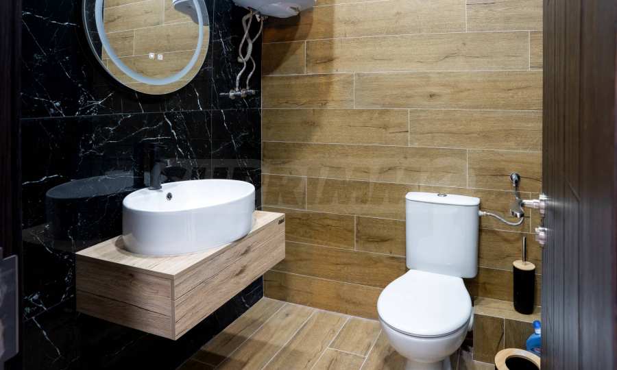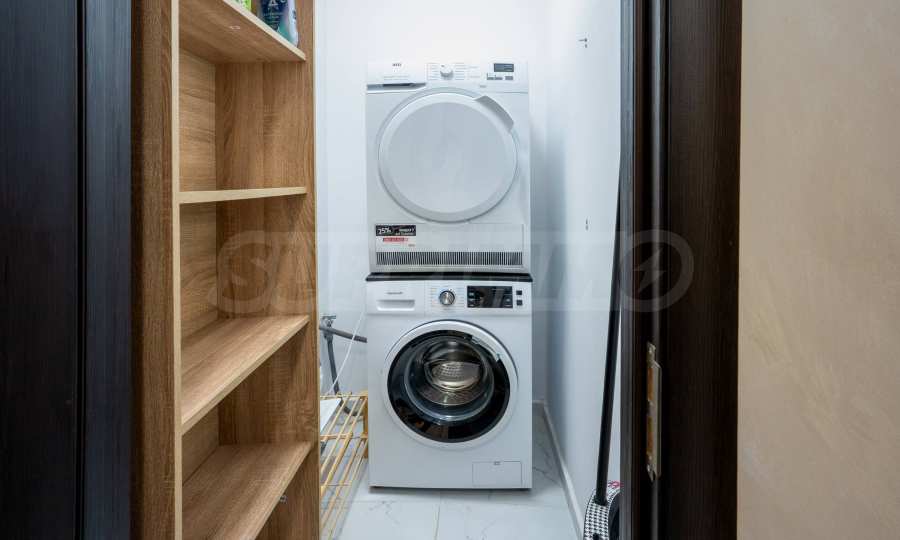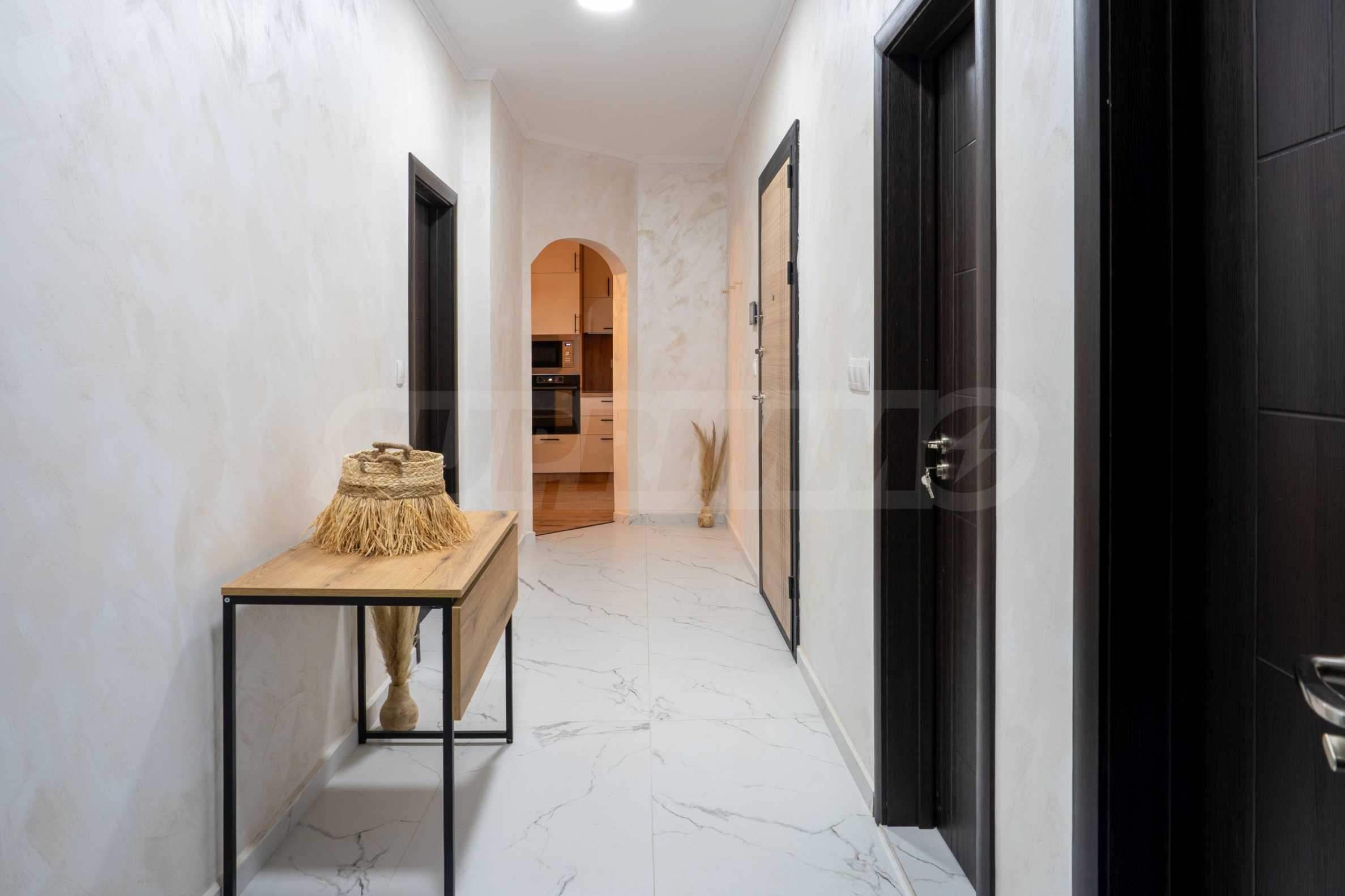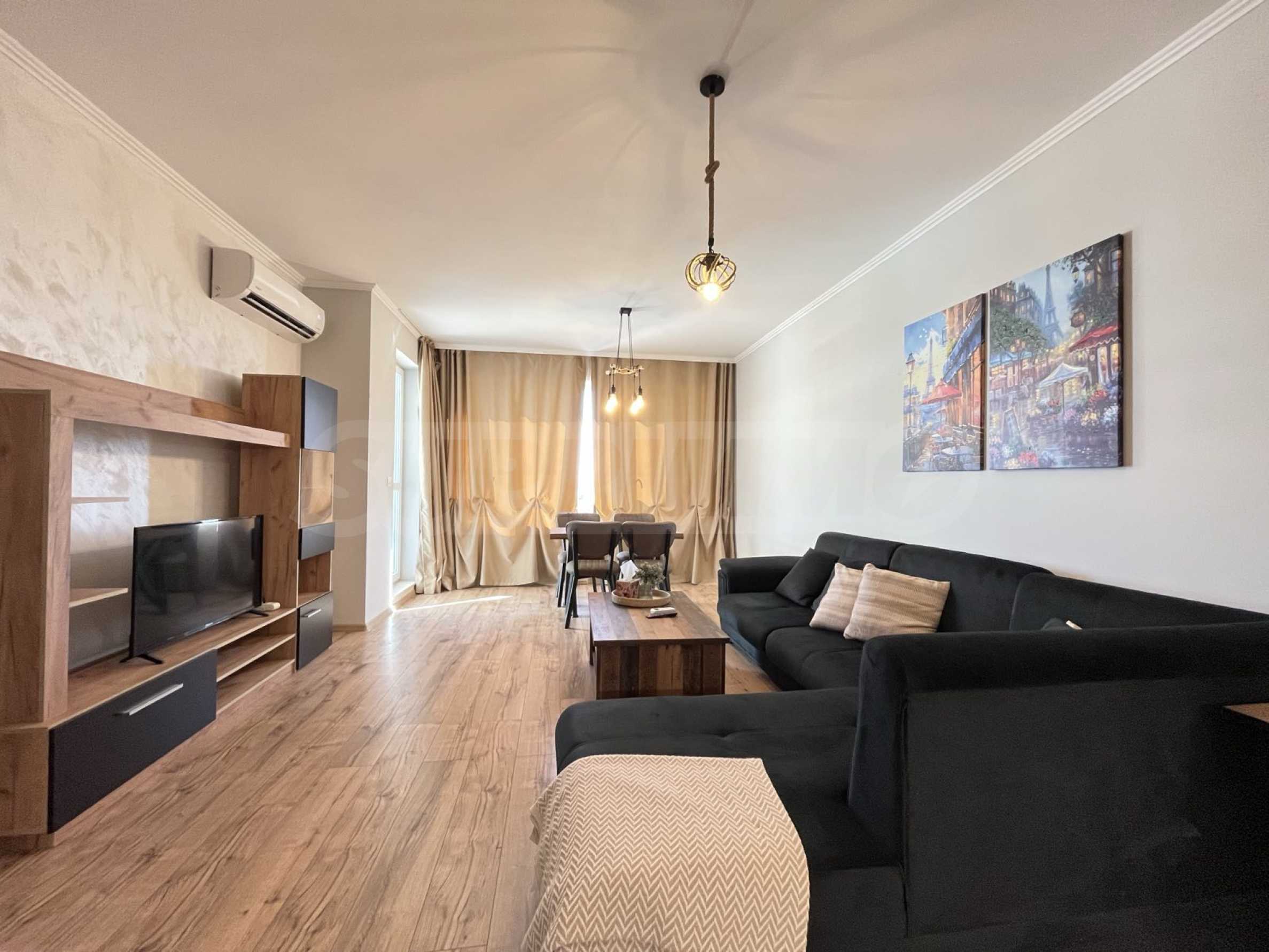 Имотът е просторен и уютен с обща площ от 118 кв.м, разположен на 5-и етаж с изложение юг и гледка към езерото Вая.