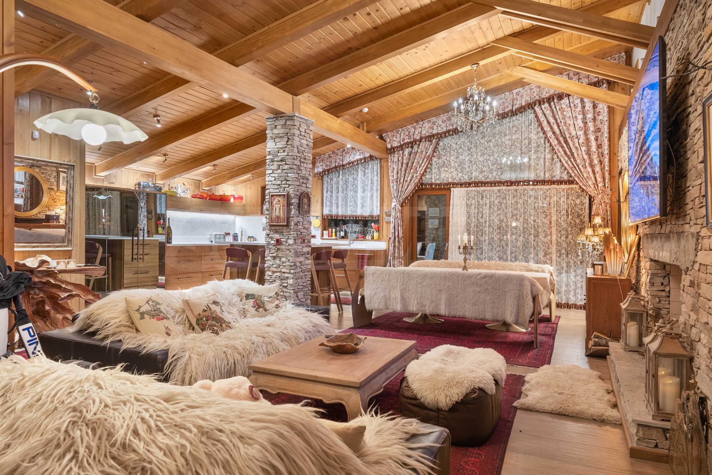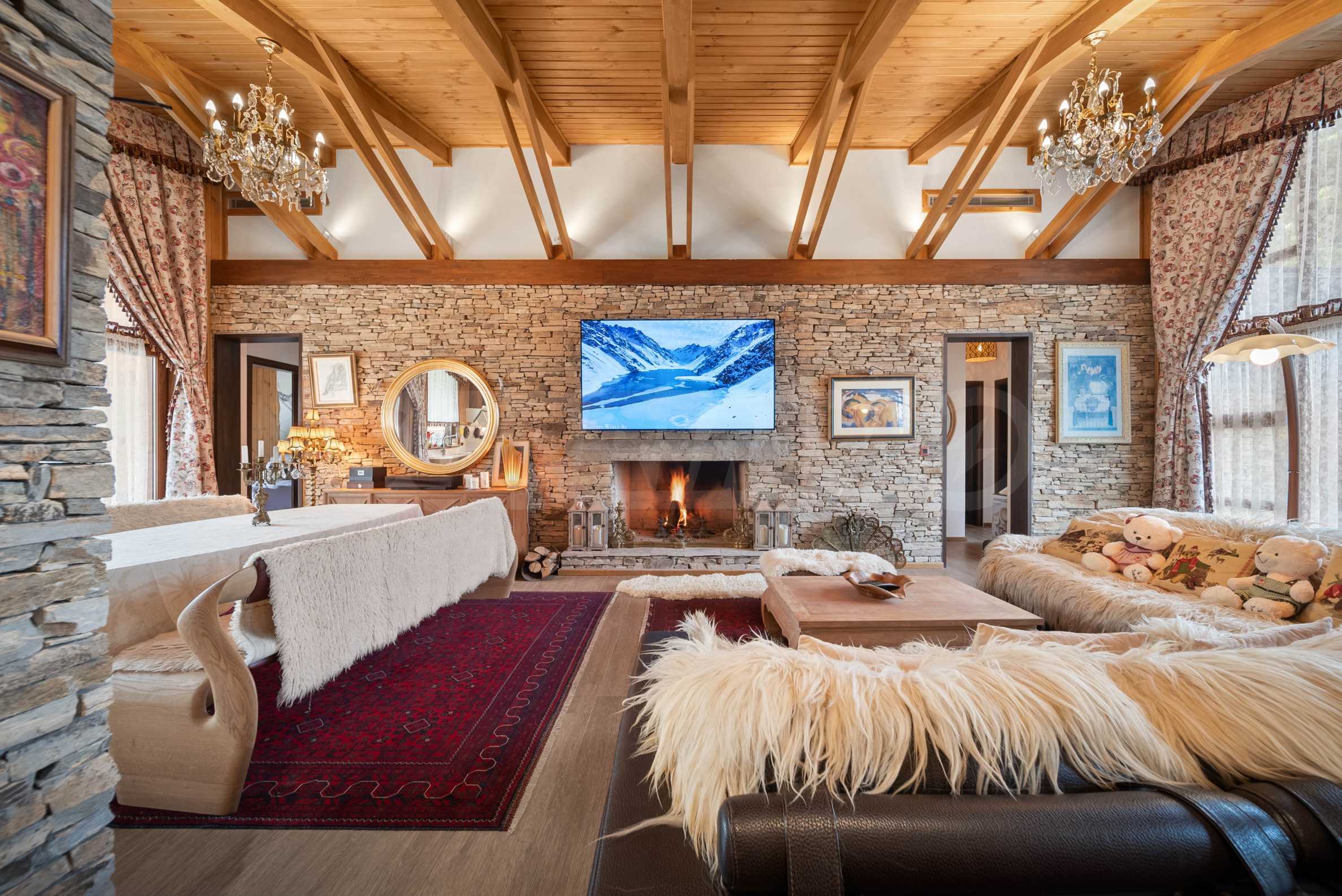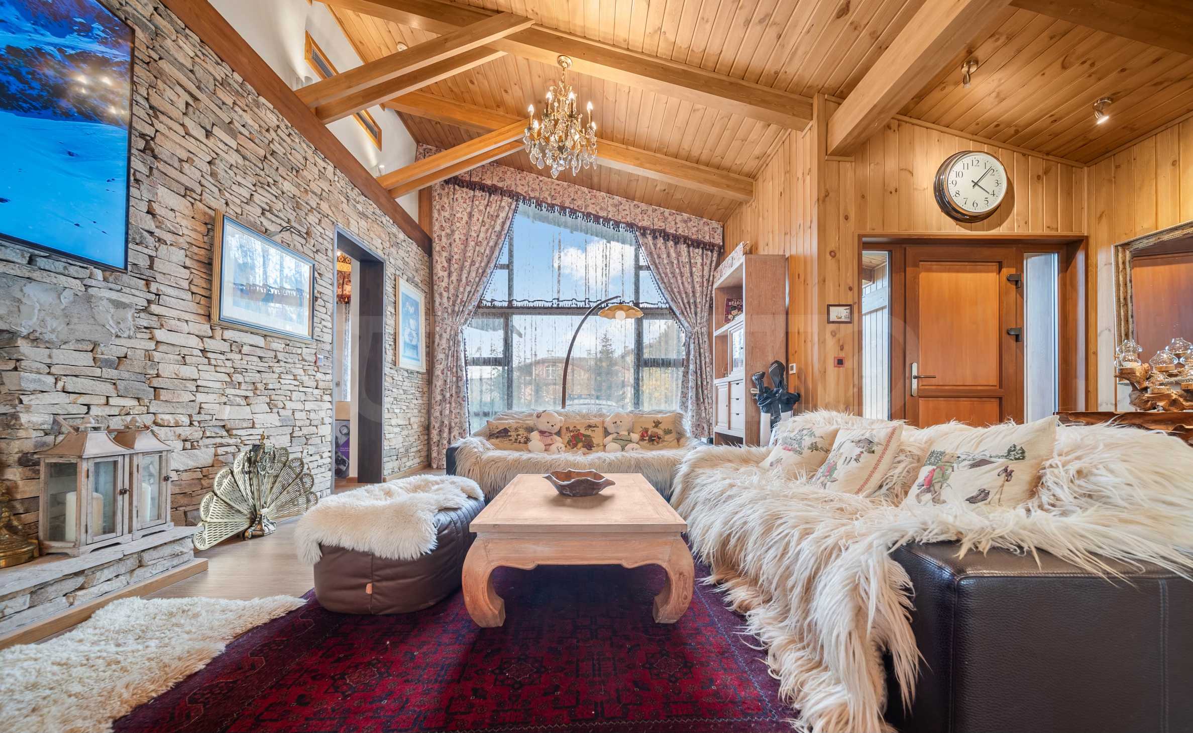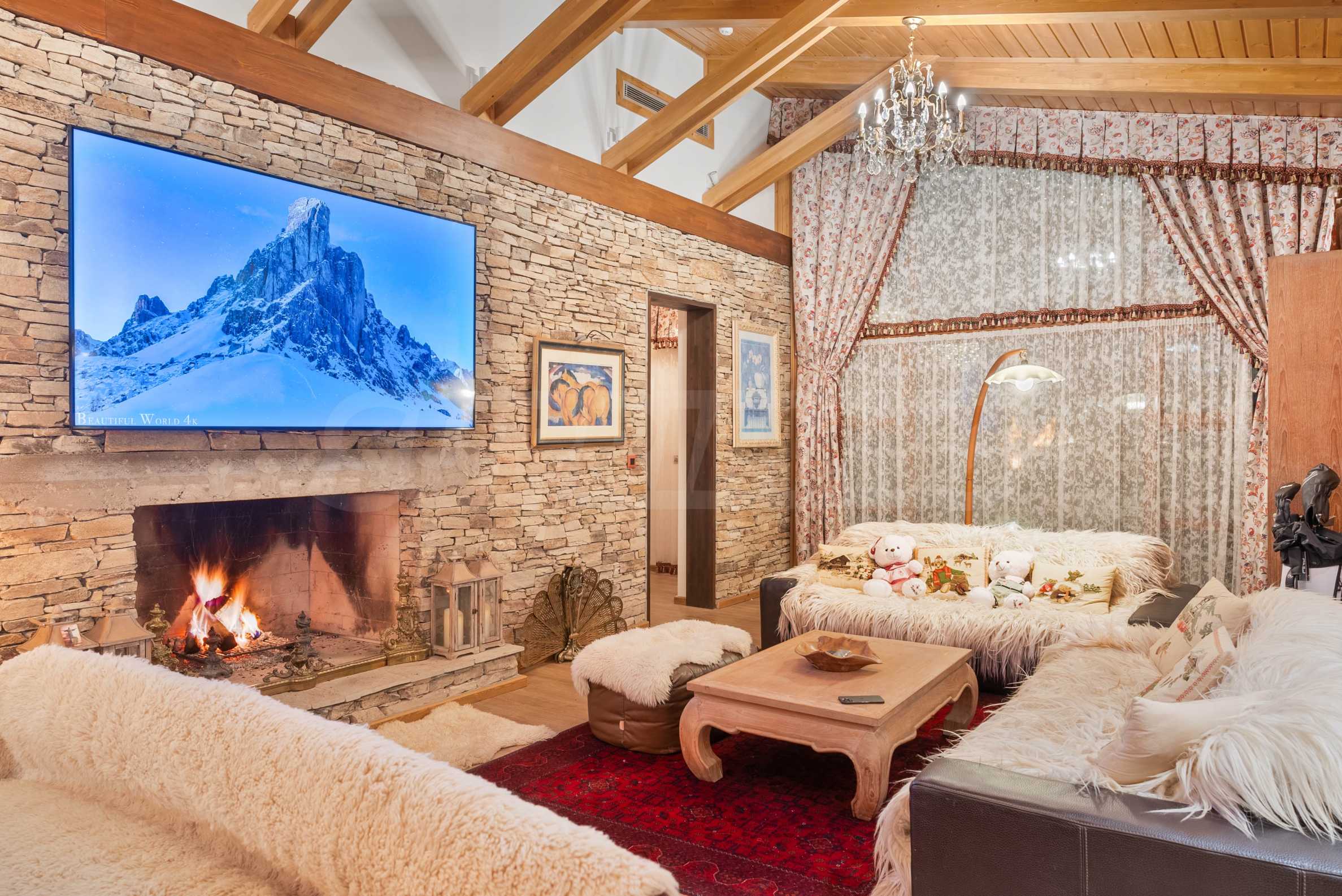 Шалето е обзаведено с изключително луксозни, дизайнерски мебели, които съчетават алпийски стил със съвременни елементи. От имота се разкриват магически гледки към околните планини, които ще Ви зареждат с енергия и спокойствие всеки ден.
