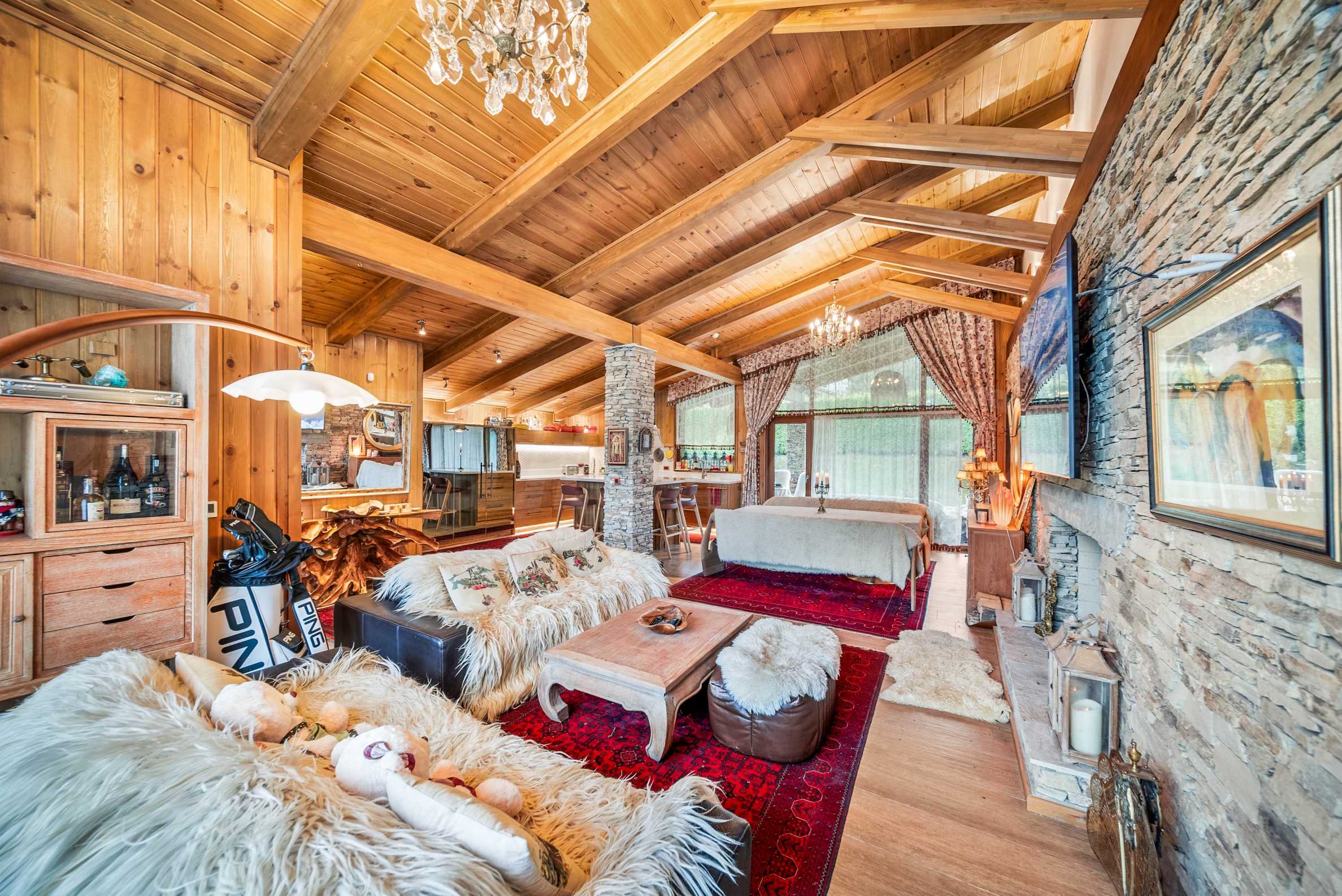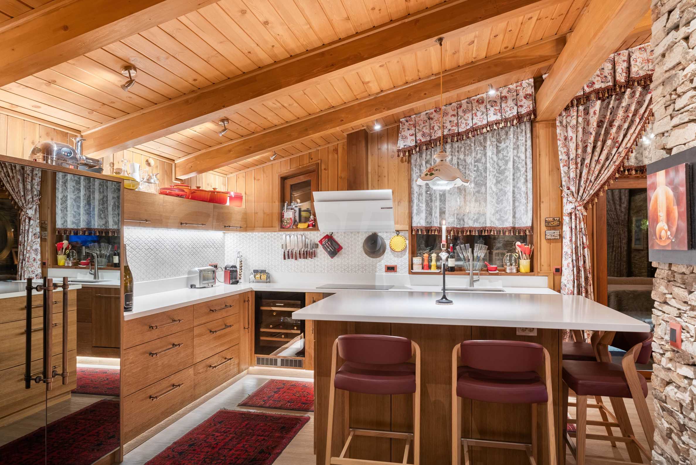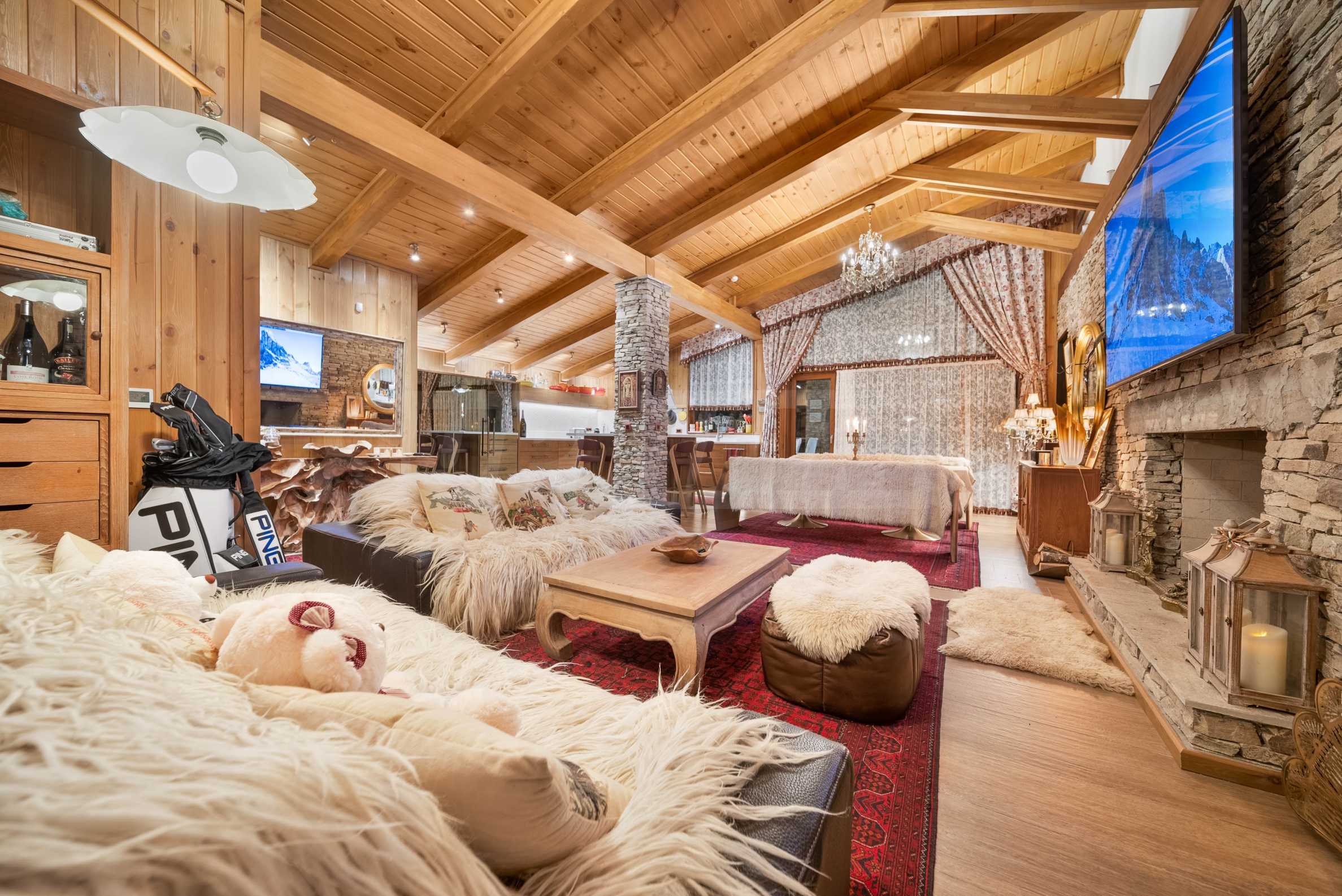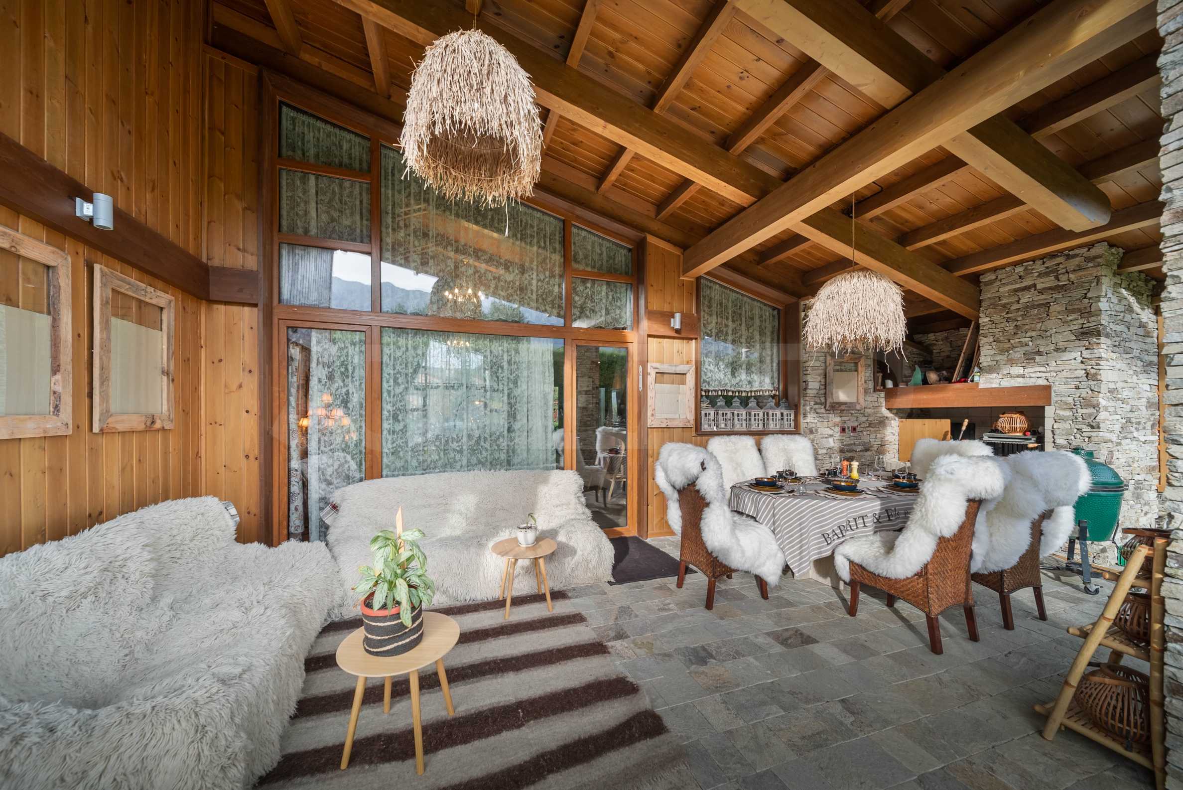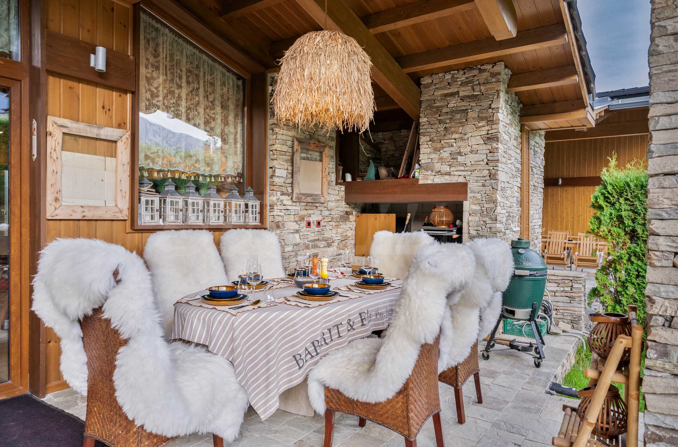 Шалето е обзаведено с изключително луксозни, дизайнерски мебели, които съчетават алпийски стил със съвременни елементи. От имота се разкриват магически гледки към околните планини, които ще Ви зареждат с енергия и спокойствие всеки ден.