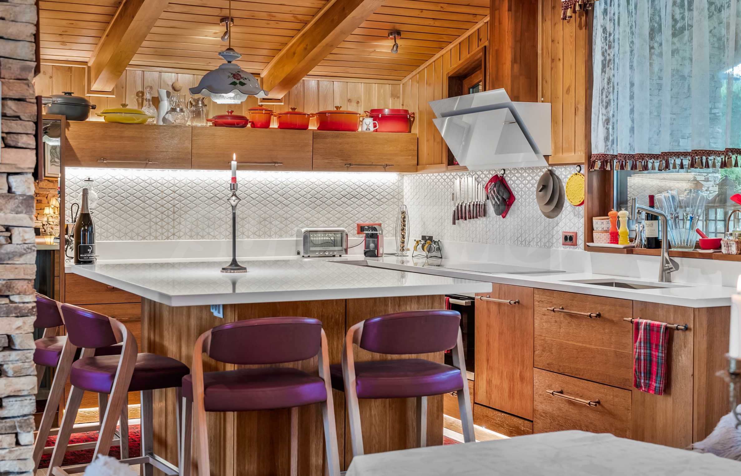 • Уютна дневна с напълно оборудвана кухня и камина, за посрещане на гости или сплотени моменти у дома.