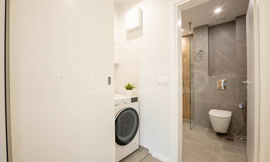 Апартаментът е ситуиран на 2-ри етаж и предлага 148.22 кв.м обща площ. Интериорът му е модерен, завършен с качествени довършителни работи и висок клас мебели по проект.