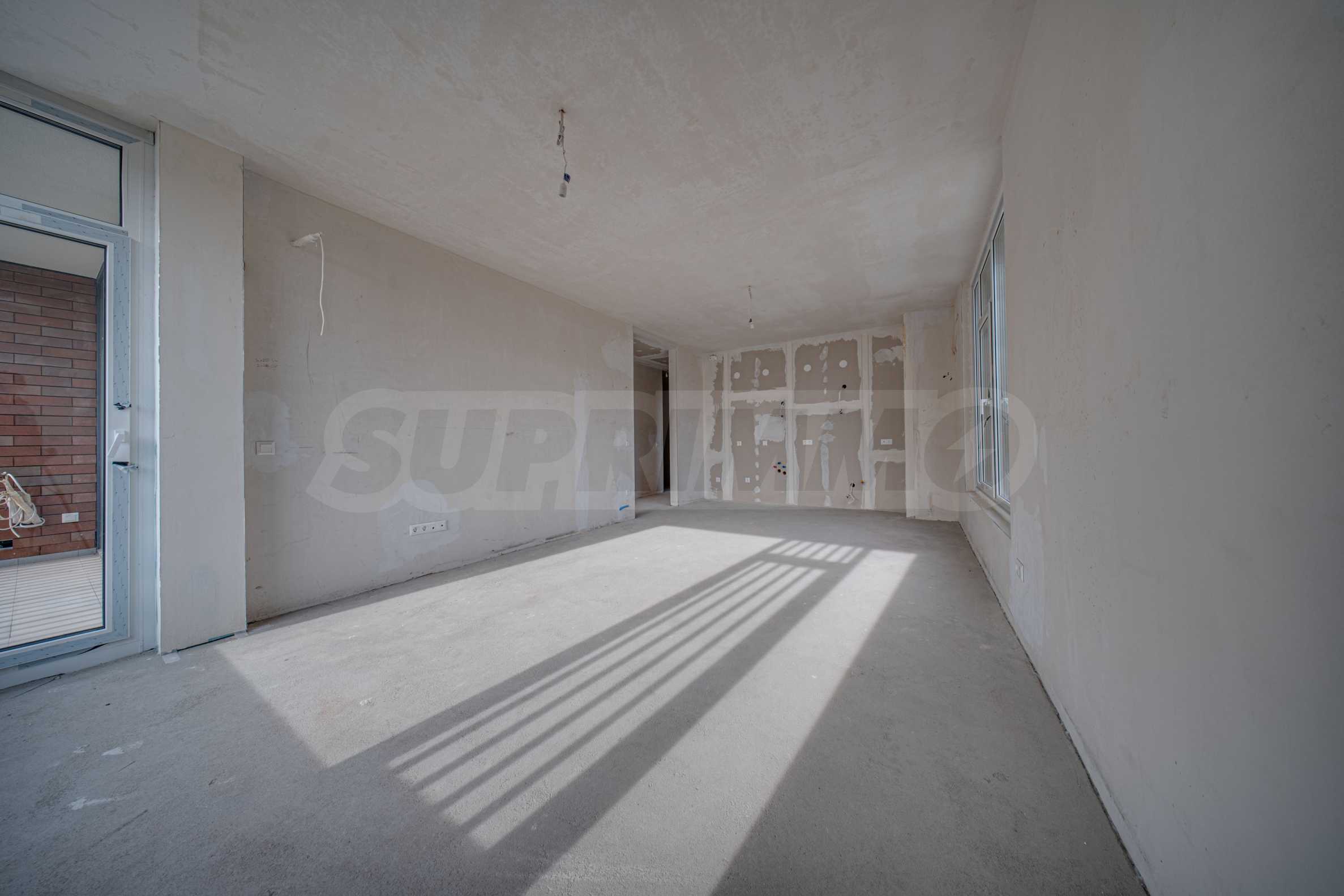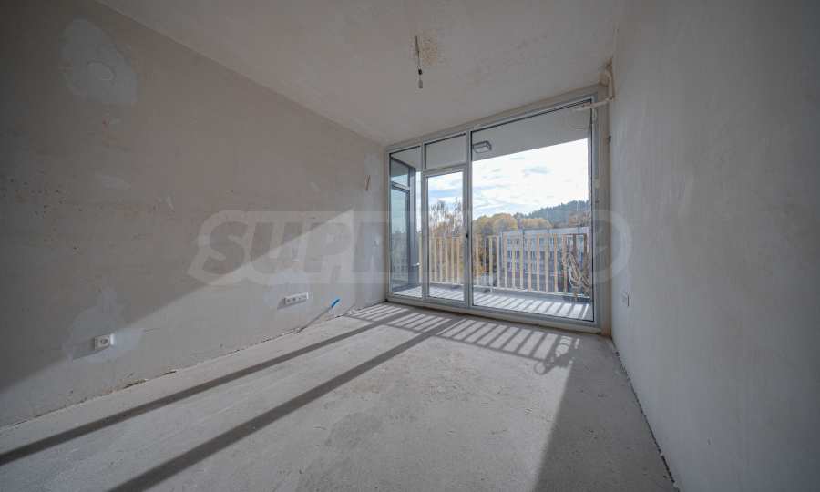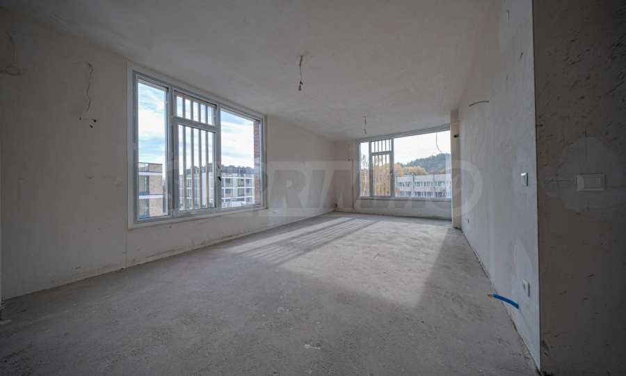 Апартаментът се намира на 3-ти етаж, с благоприятно изложение изток/юг и има обща площ 120.67 кв.м. Състои се от антре, две бани с тоалетни, две спални, всекидневна с кухня, тераса тип лоджия, с излаз от дневната и една от спалните, с гледка към планината.