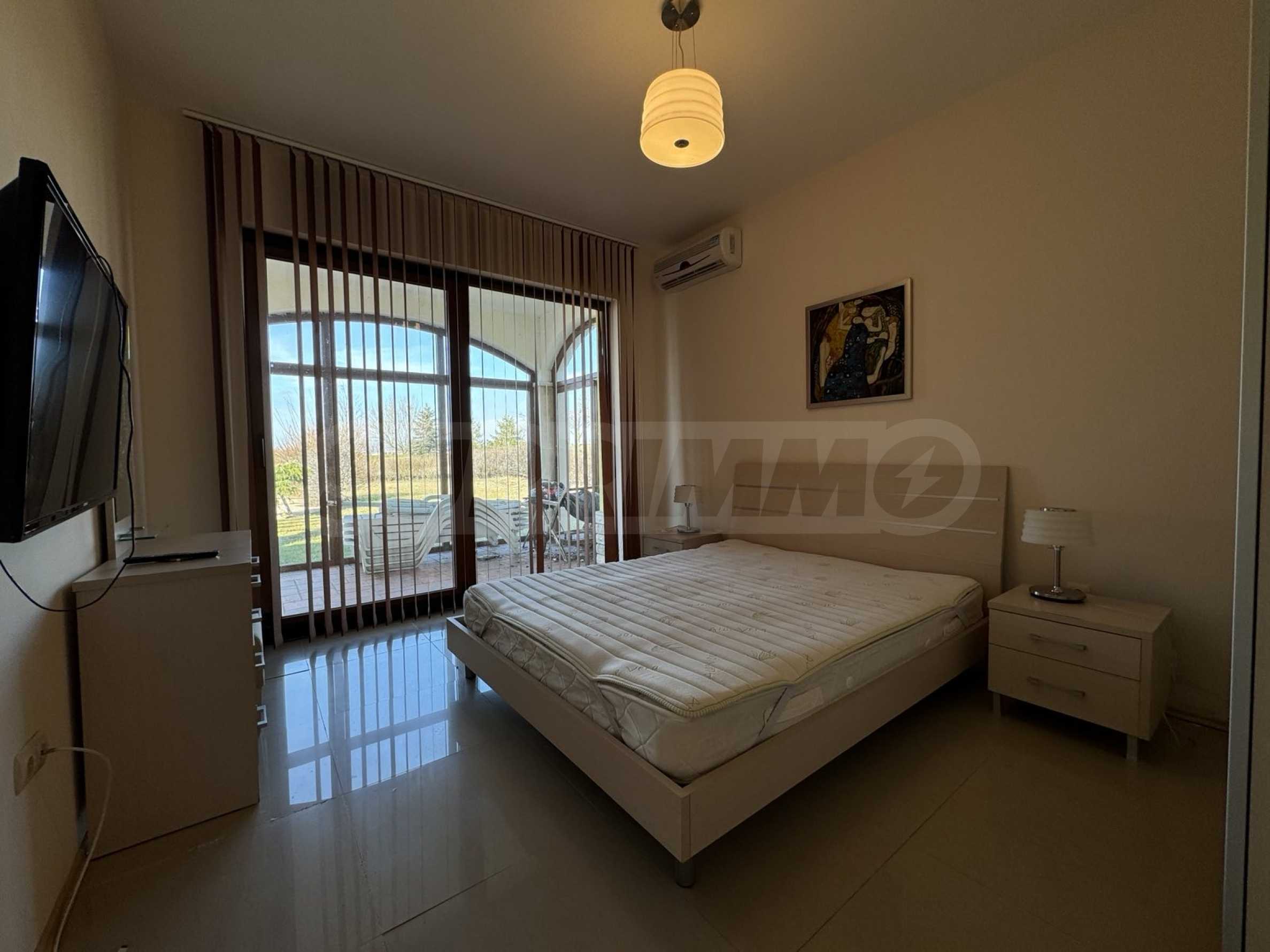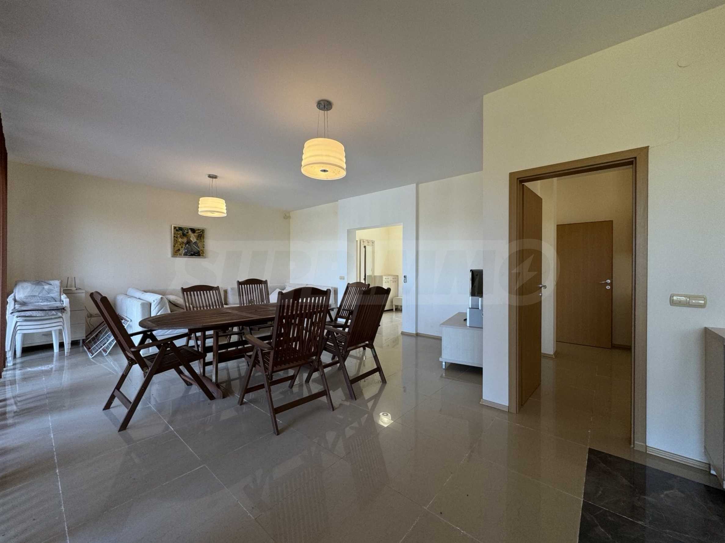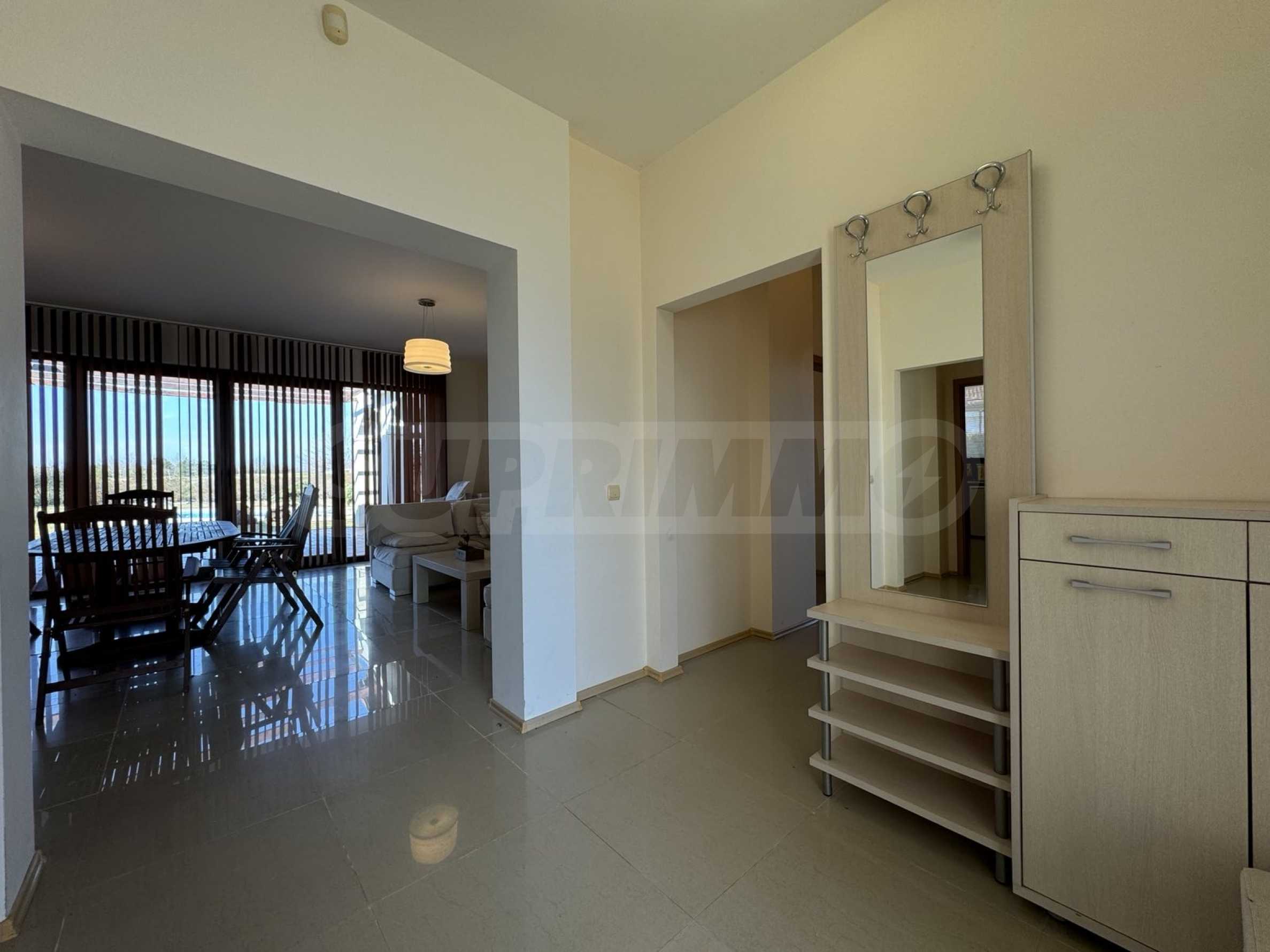 - голяма всекидневна с трапезария, излаз и гледка към басейна;