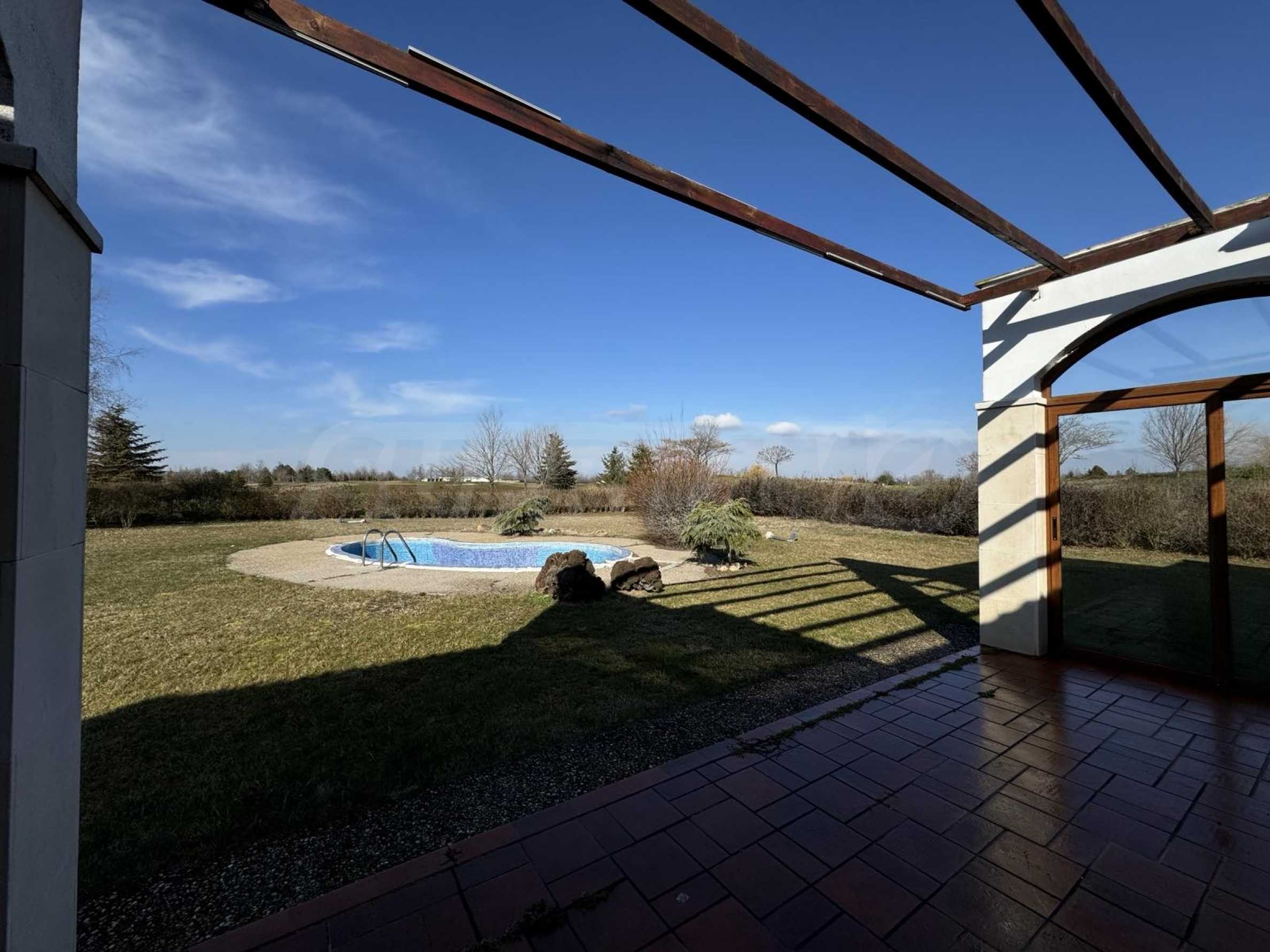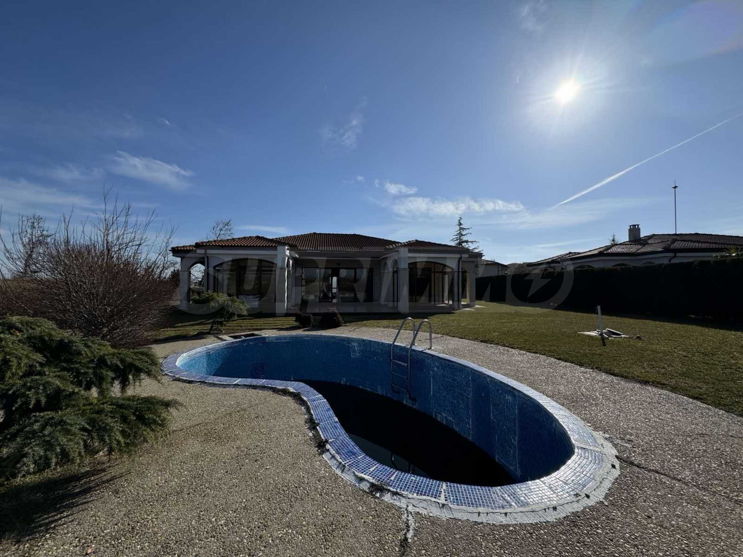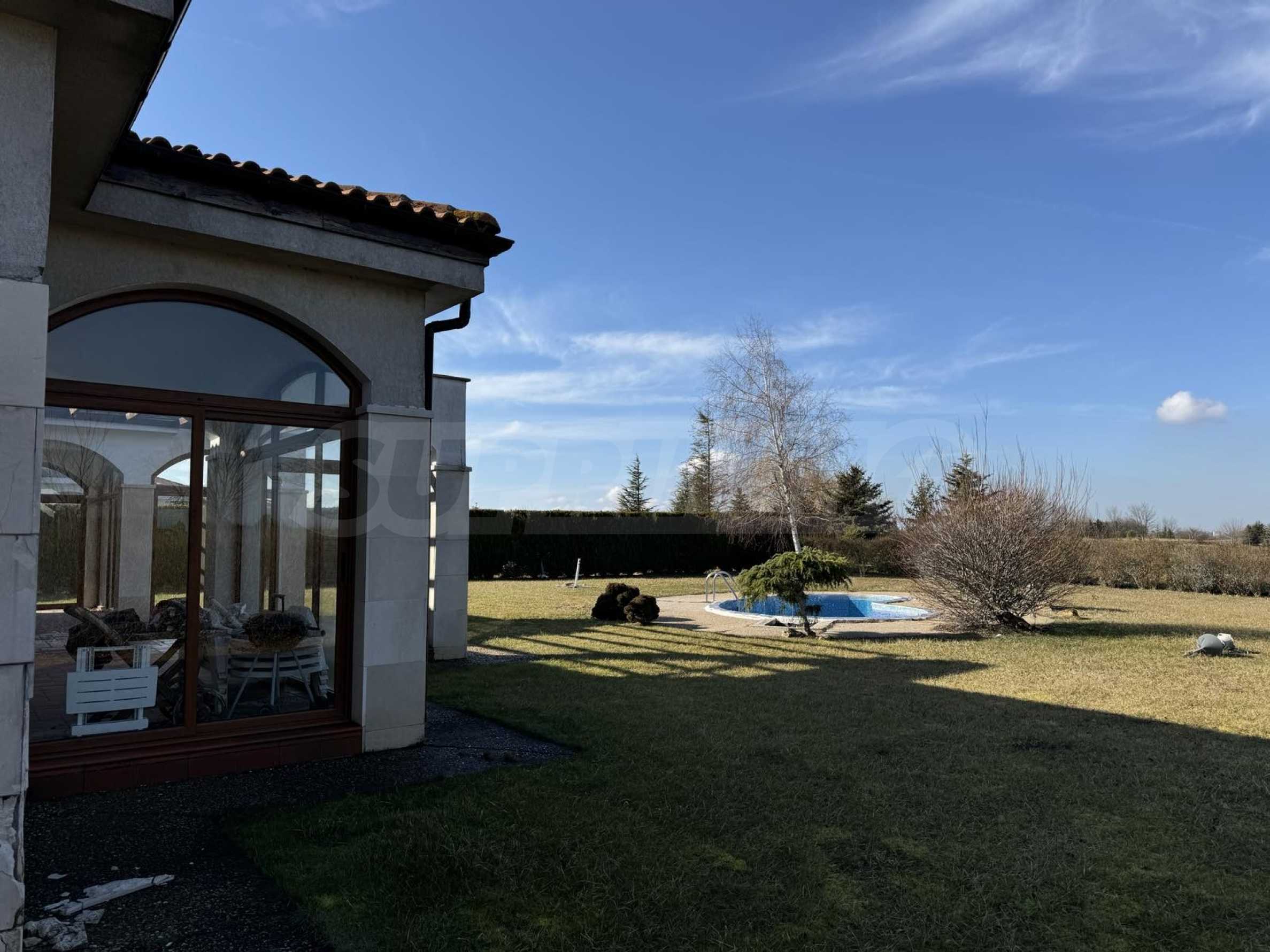 Имотът с РЗП от 247.30 кв.м и разполага със собствен двор с площ от 830 кв.м, басейн и две паркоместа.