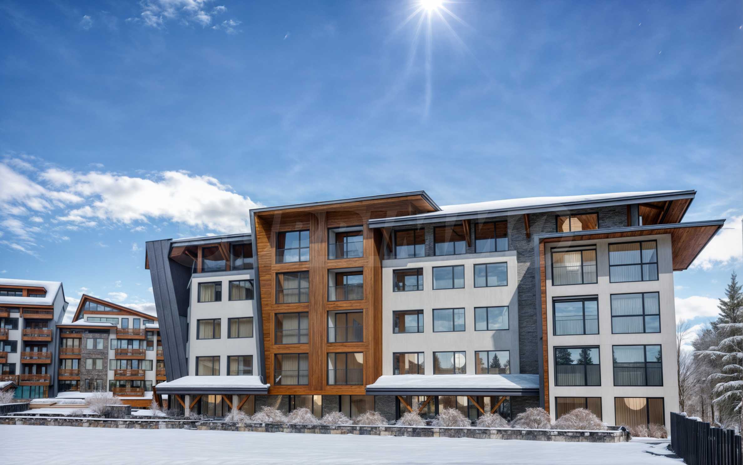 Предстоящата нова сграда предлага атрактивна съвременна вентилируема фасада с HPL, в традиционните цветове на комплекса, разпределена е на 5 етажа с два входа - "А" и "Б", с модерен асансьор. Предлага избор от просторни студиа, двустайни и тристайни апартаменти.