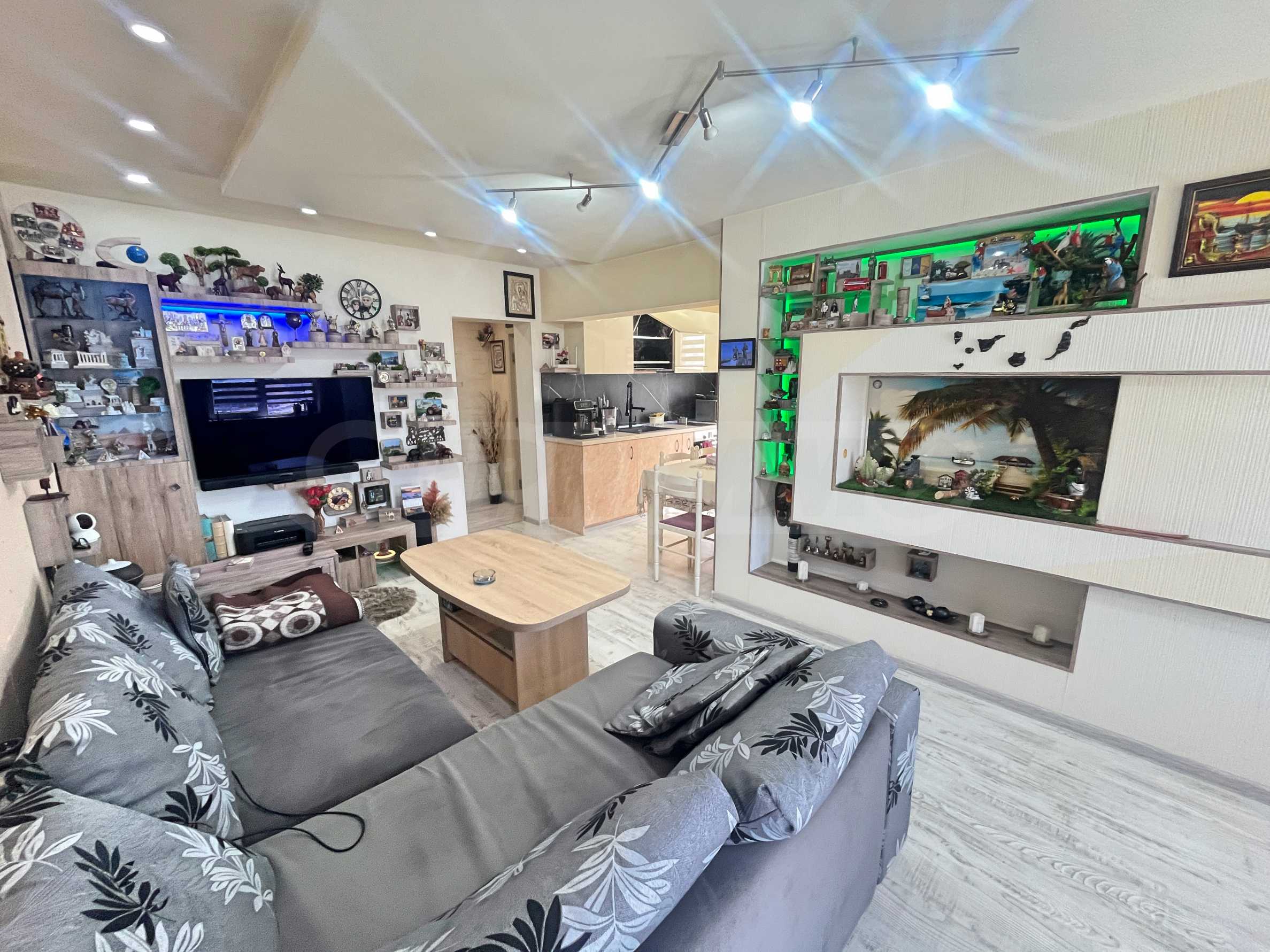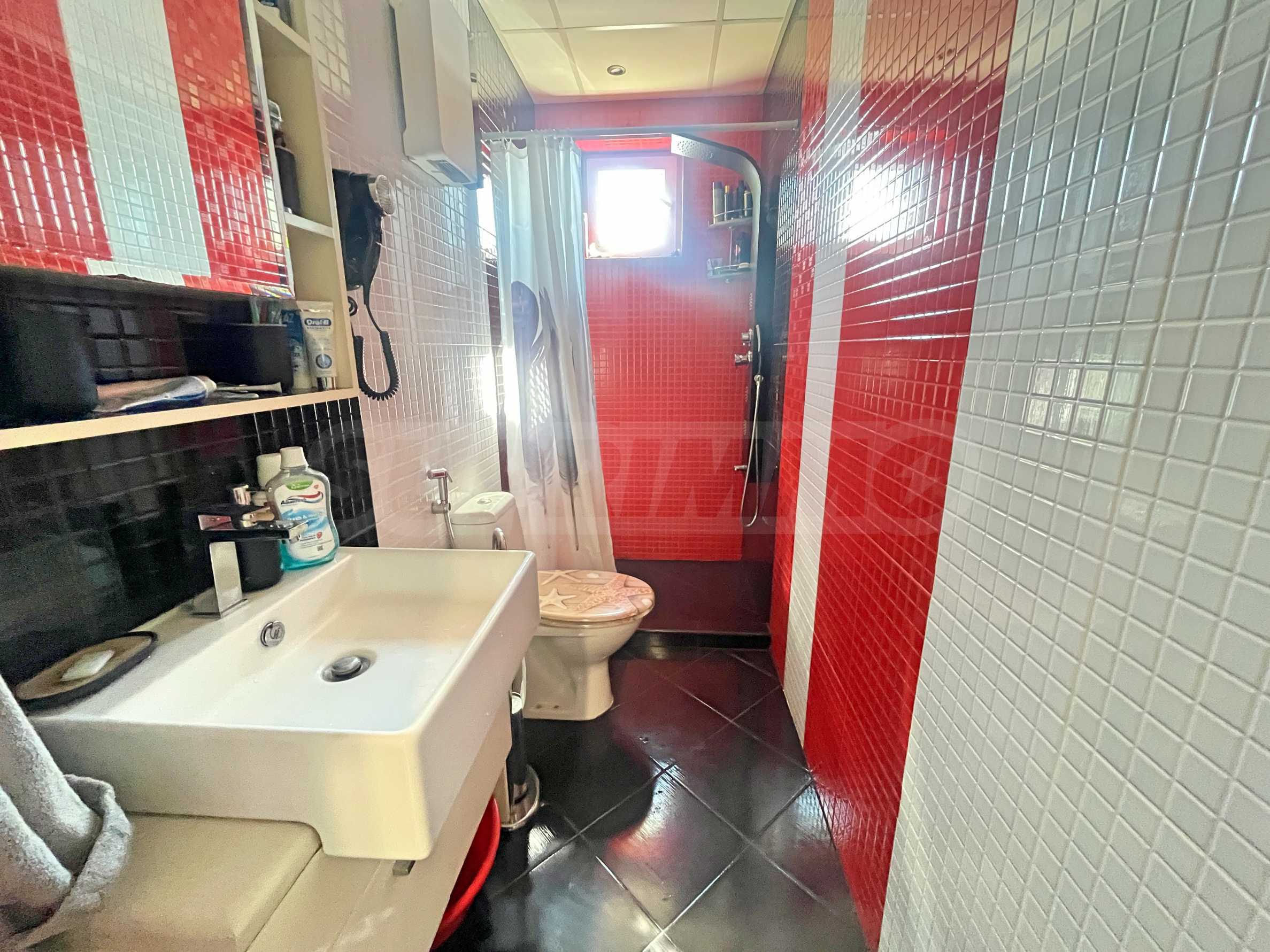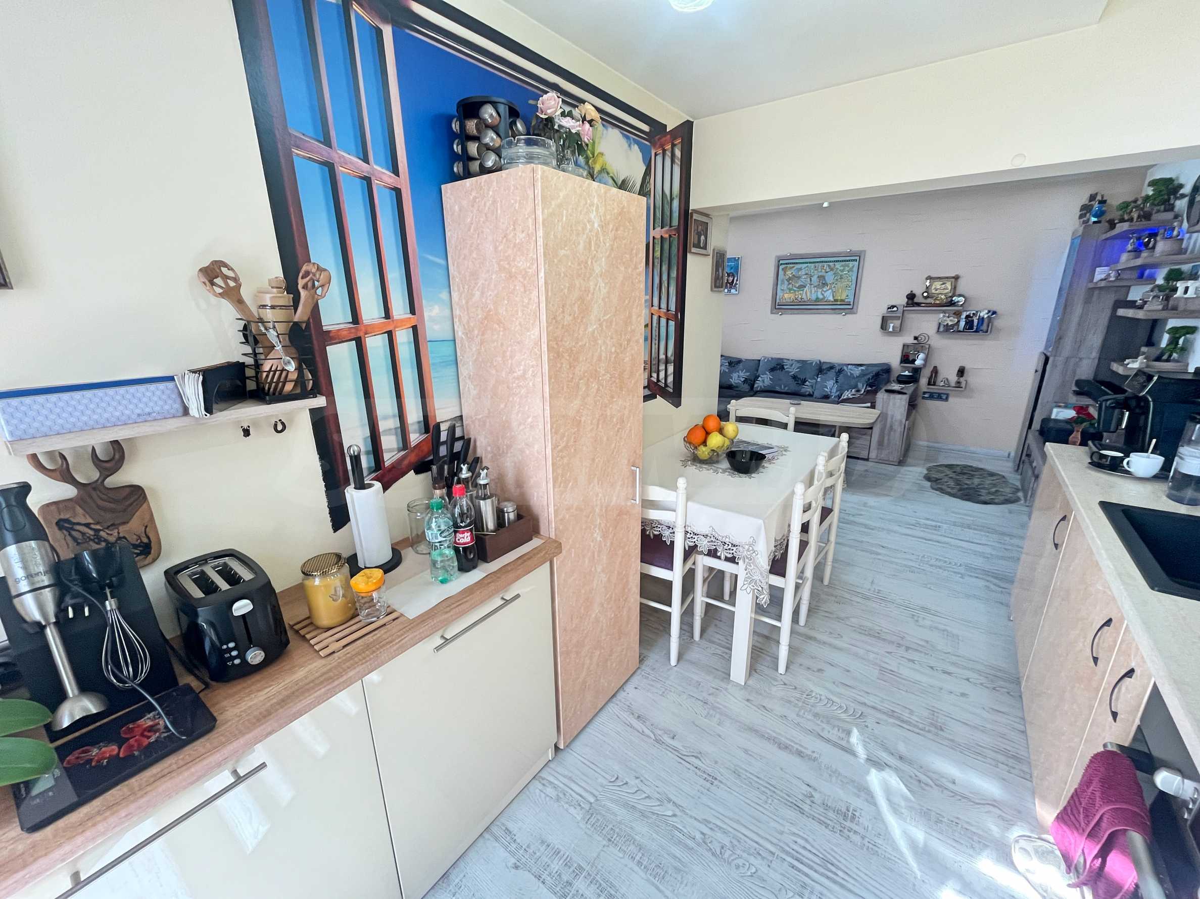 Апартаментът се продава с всички мебели и електроуреди, които виждате на снимките. Включително: пералня, хладилник, фурна, телевизор, гардероби, спалня, маси, столове, диван и портманто.