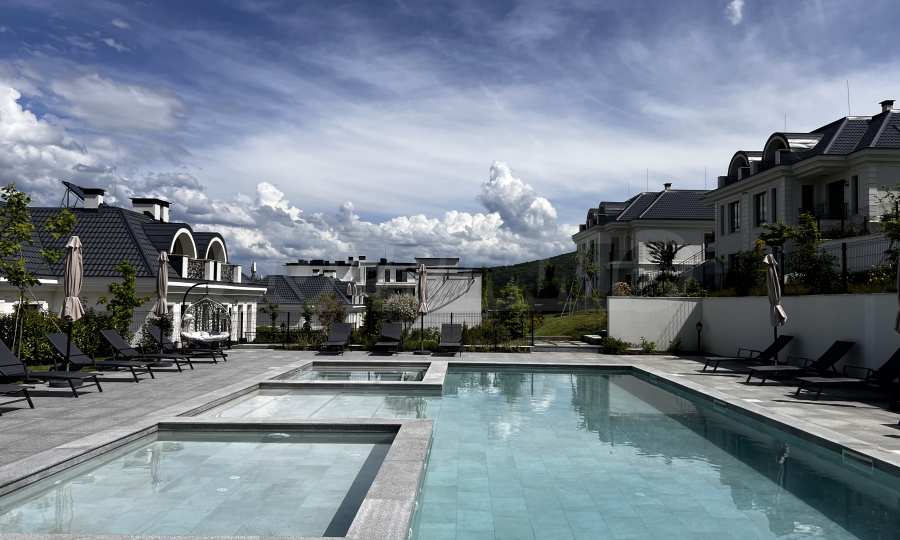 Жилището се намира в сграда с контролиран достъп, 24-часова жива охрана, видеонаблюдение, SPA зона със сауна, пилатес, фитнес и директен излаз към външен басейн и парк с детски площадки, детски парти клуб.