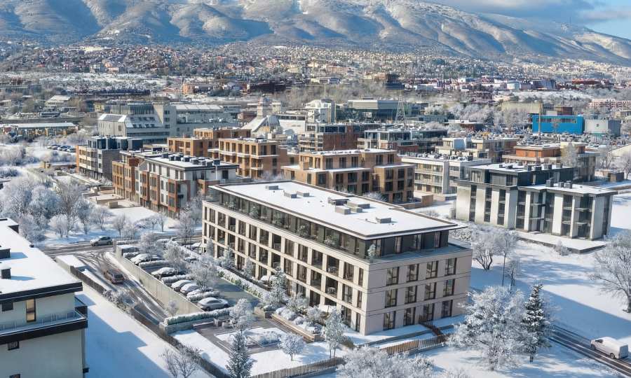 Архитектите и строителният предприемач отново са заложили на жилищен комплекс с най-съвременен дизайн, проектиран с акцент върху минималистичния стил, чистите линии и хармоничното взаимодействие между архитектурата и околната среда. Композицията съчетава функционалност и естетика, предлагайки открити пространства, обилно естествено осветление и модерни материали. Сградата има правоъгълна форма, с добре дефинирана модулна структура, която придава усещане за ред и ритъм. Разпределението на фасадата и прозорците създава балансирана визия, като същевременно предоставя оптимално осветление и гледки към заобикалящата среда и красивата планина.
