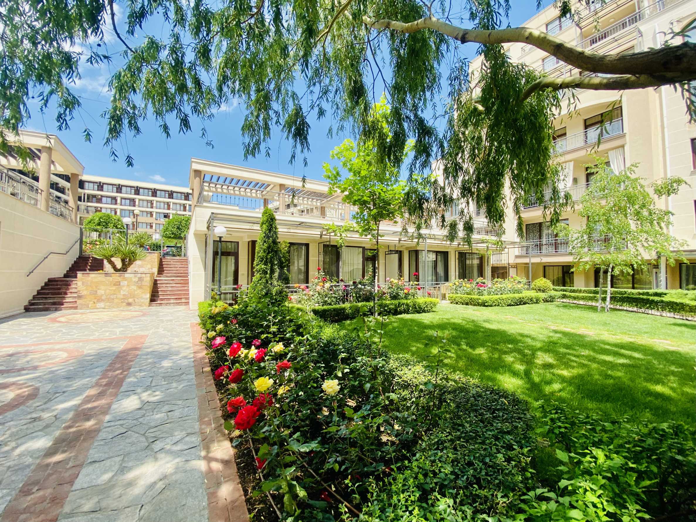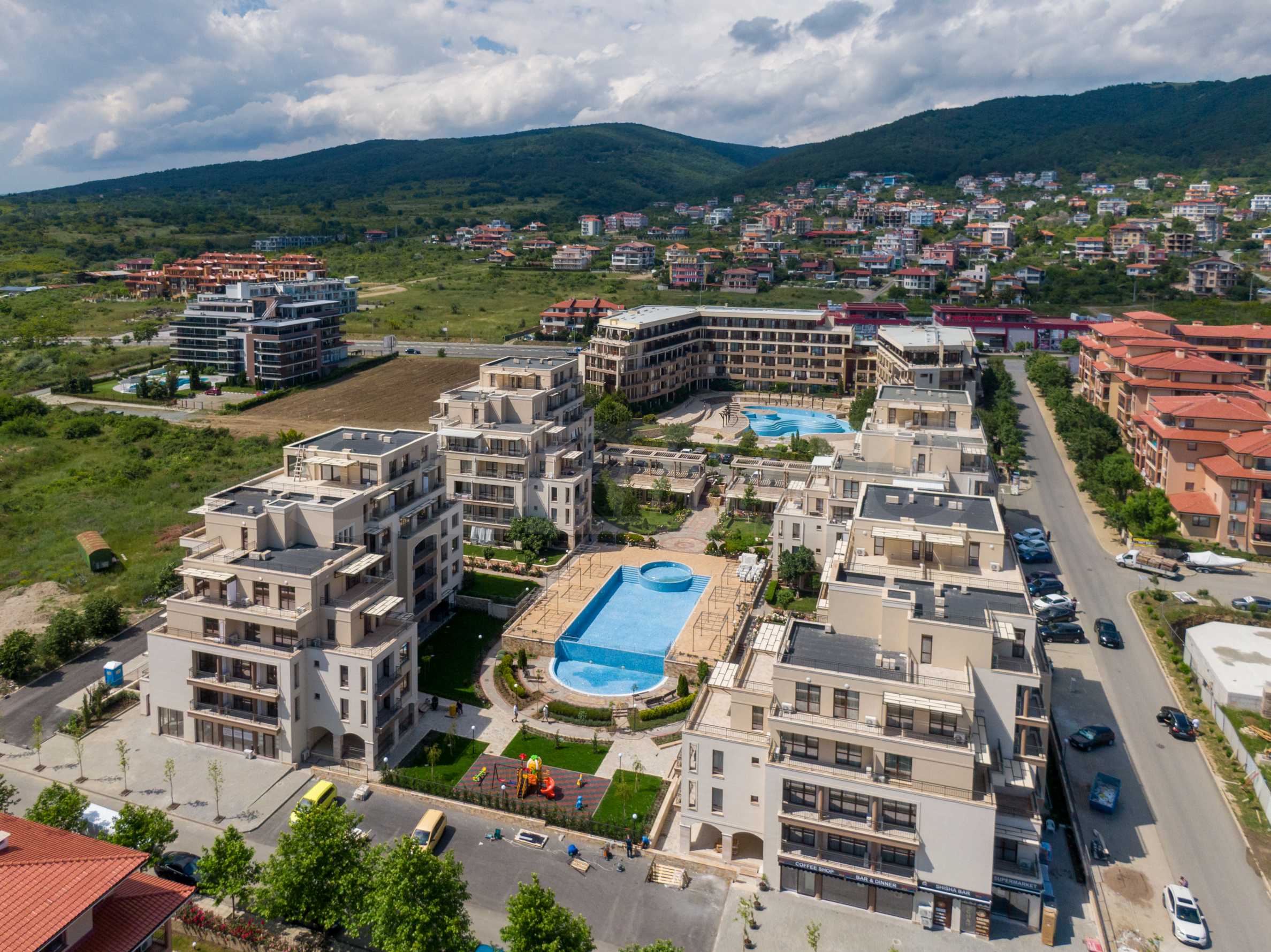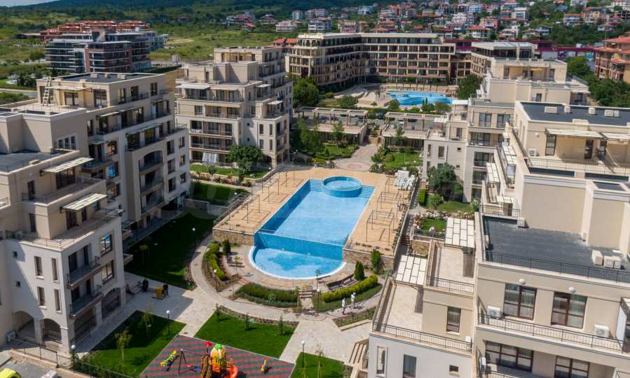 Уютният комплекс се състои от две 6-етажни сгради, разположени една срещу друга и две едноетажни сгради, позиционирани от двете страни на главния вход. В строителство са нови две 6-етажни сгради, които ще бъдат успоредни на другите и заедно ще образуват завършен кръг около басейна и градината на комплекса. Комплексът разполага с басейн с детска секция и втори, отделен детски басейн, детска площадка и рецепция. Има чудесен ресторант, а до сградата има места за паркиране. В района има голям супермаркет, СПА и фитнес център, заведения и други удобства.