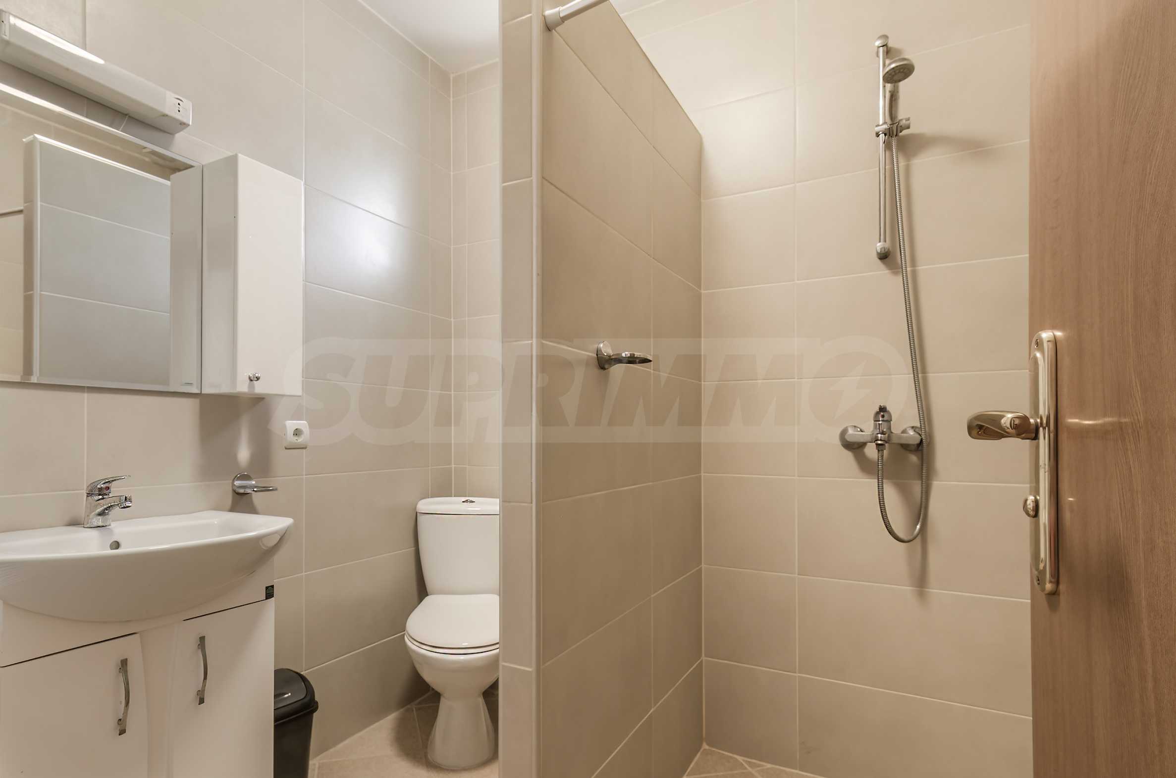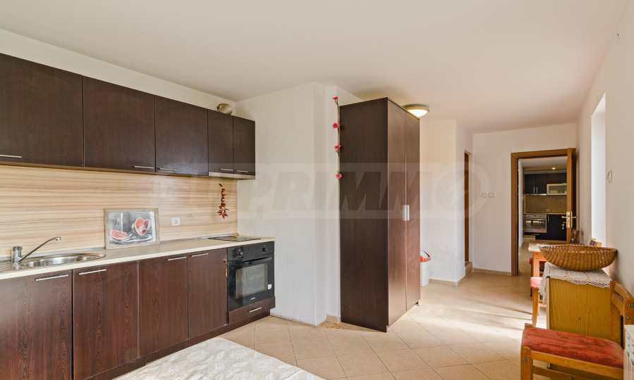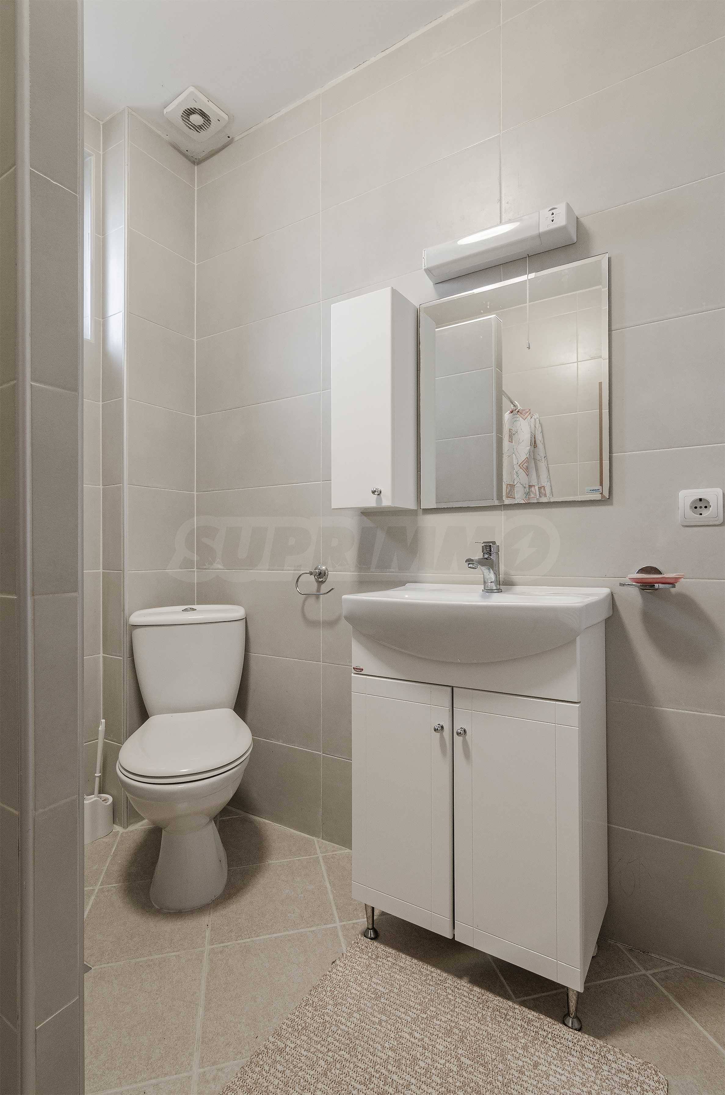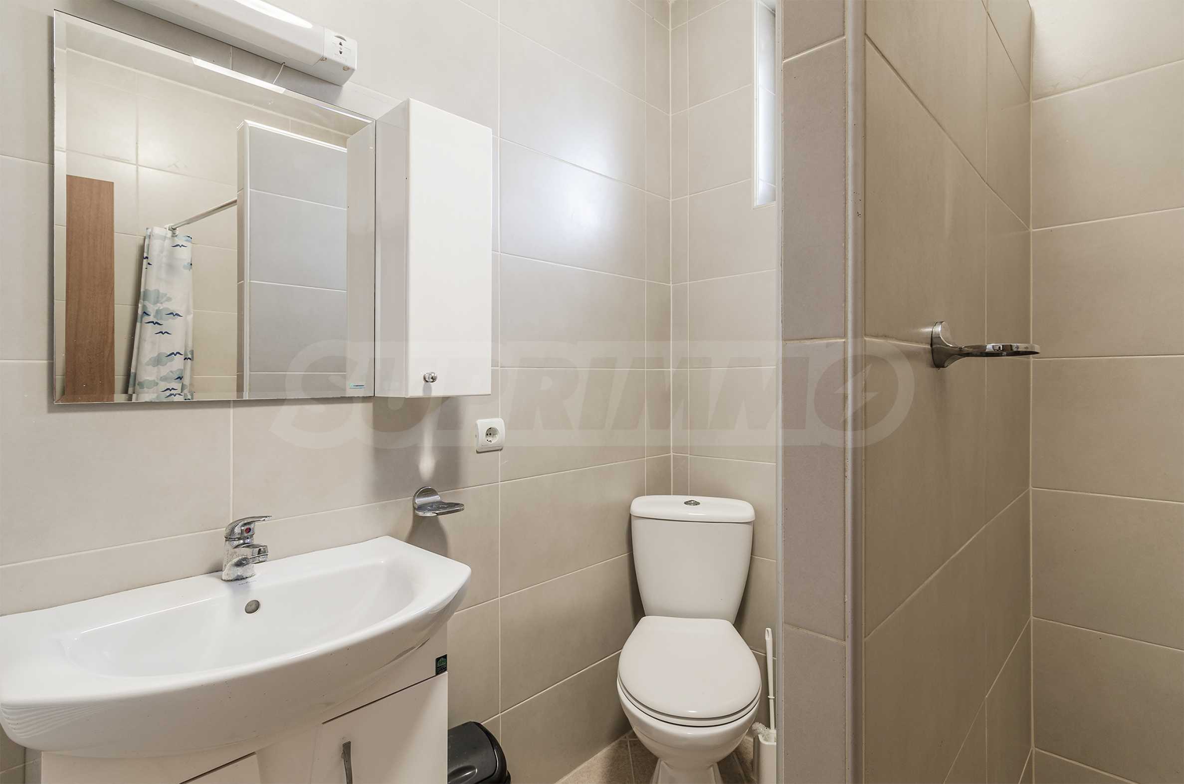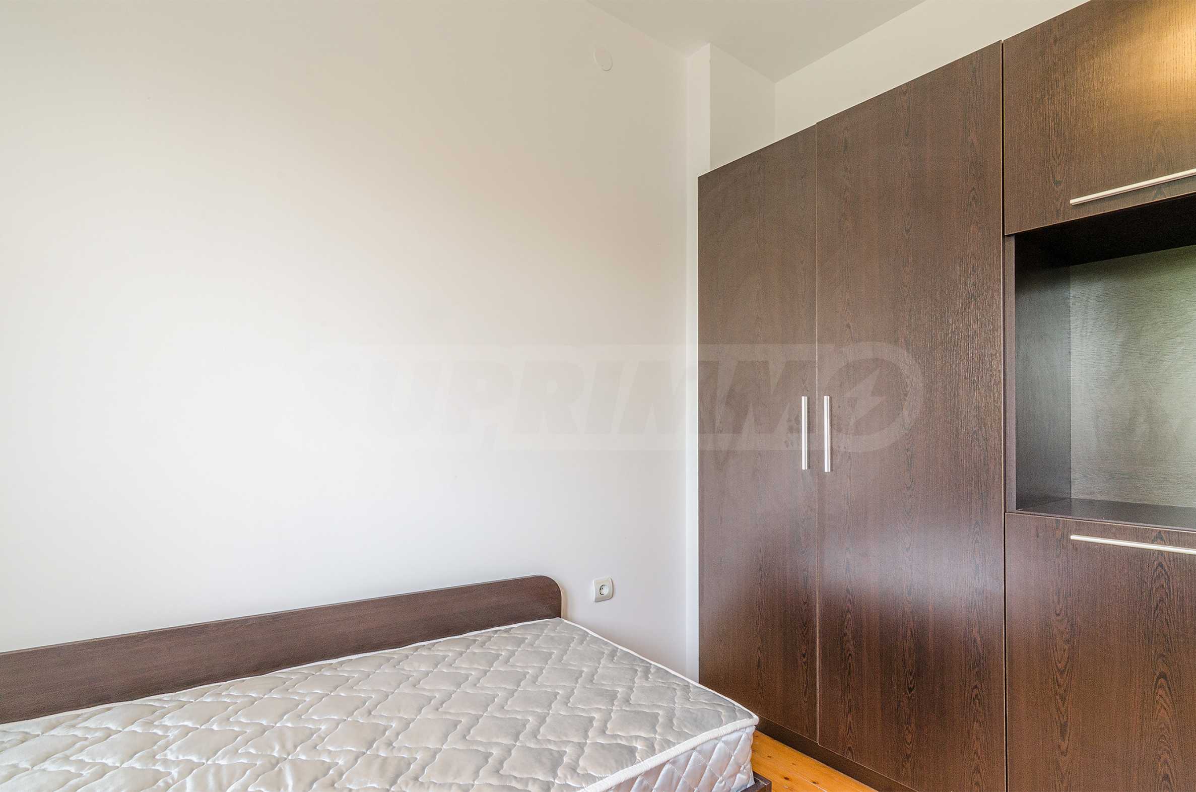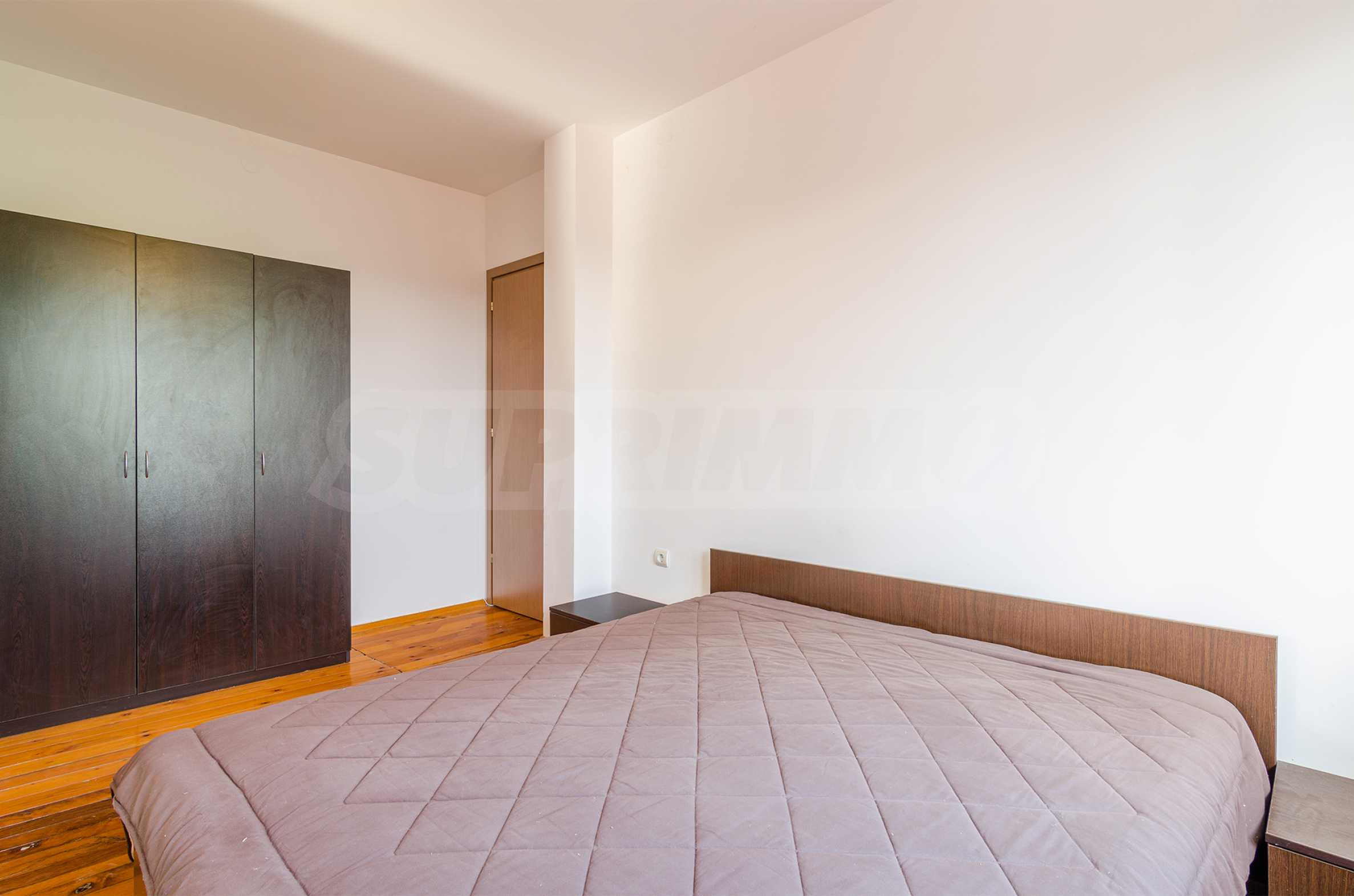 На приземния етаж ще откриете просторна кухня, трапезария, хол и една спалня. Освен това, има и самостоятелен апартамент с една спалня, който разполага с отделен вход от градината. На същото ниво се намират две бани. Горният етаж включва четири спални и три бани, като една от спалните има самостоятелен достъп през външно стълбище и тераса. В подпокривното пространство е обособен малък апартамент със собствена баня и тераса.