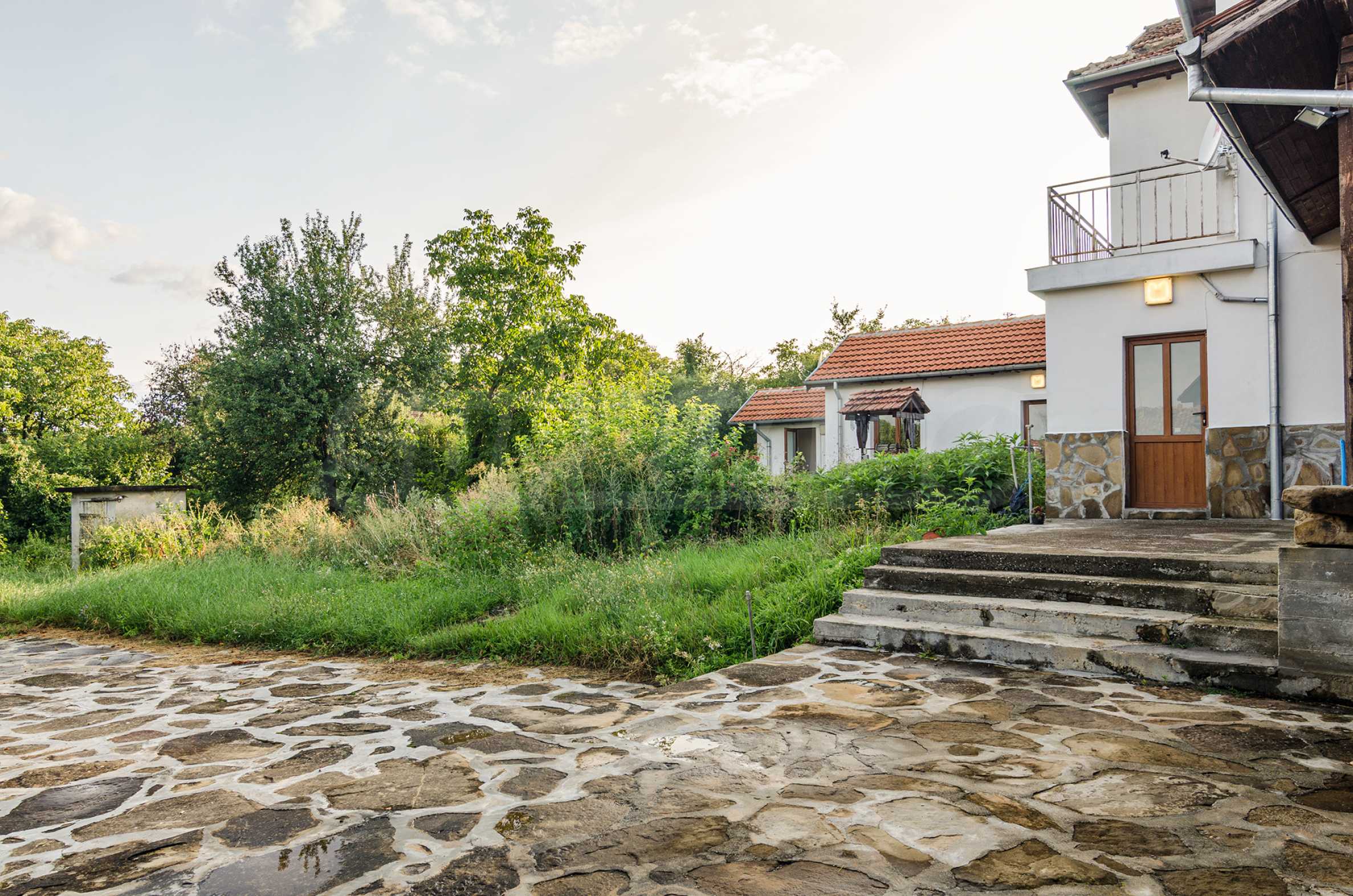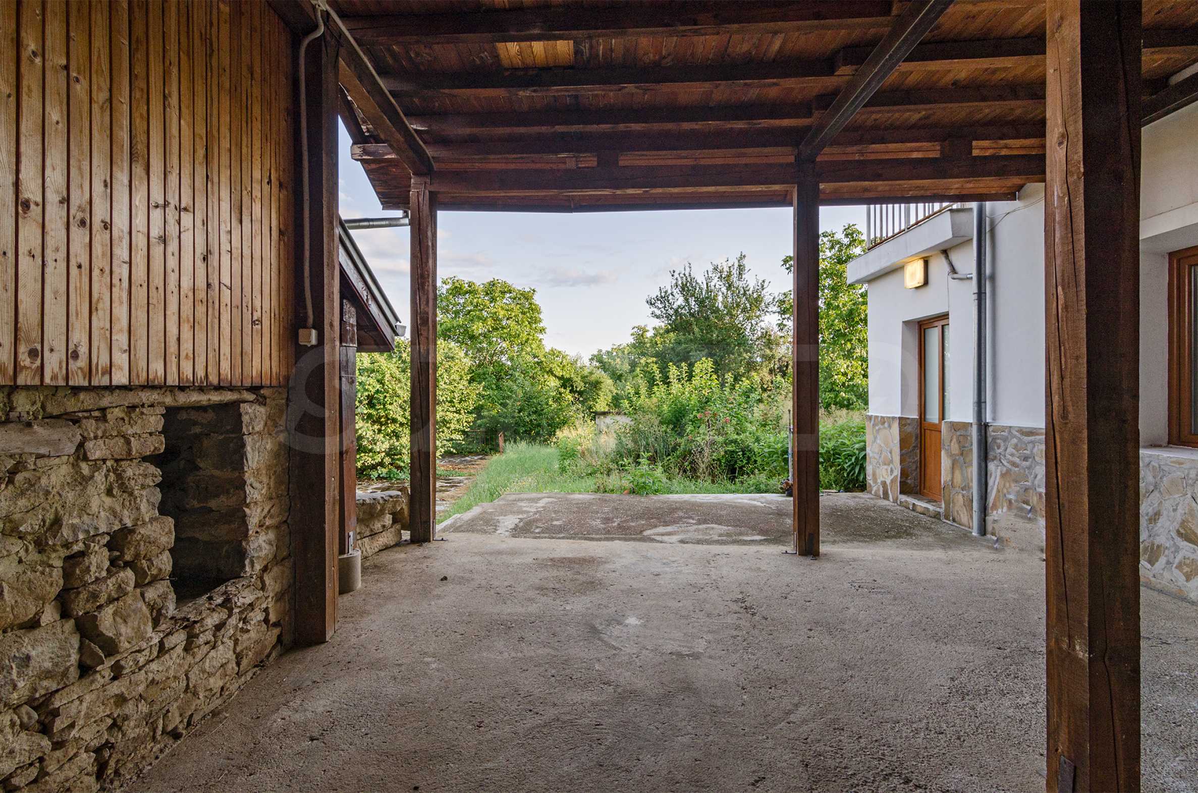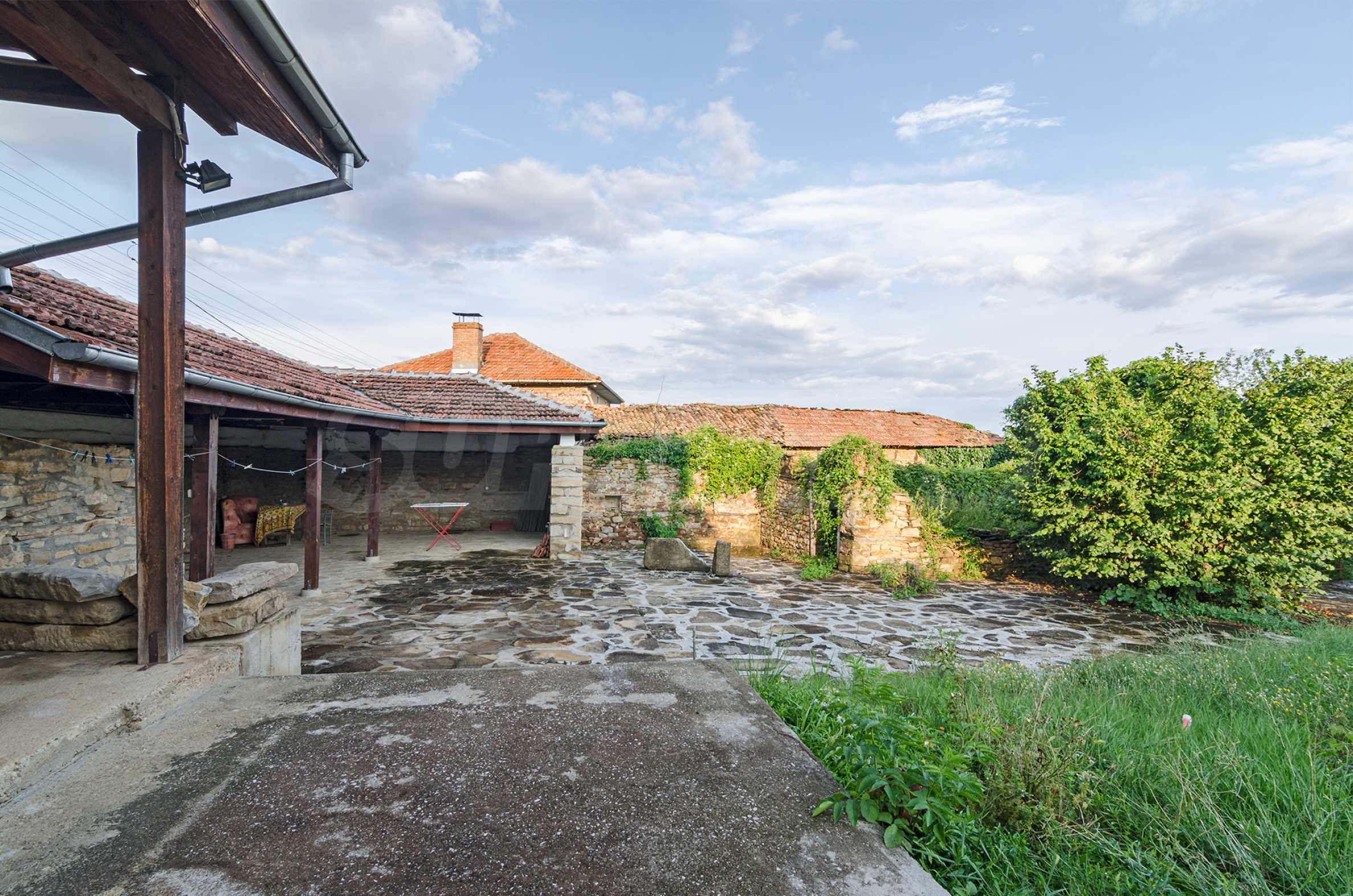 Дворът от 1570 кв.м е просторен и добре поддържан, като разполага с кладенец, гараж и навес за барбекю, осигуряващи допълнителни удобства за комфортен начин на живот. Къщата е с изцяло подменени ВиК и електроинсталации, съчетавайки автентичен селски стил със съвременни подобрения.