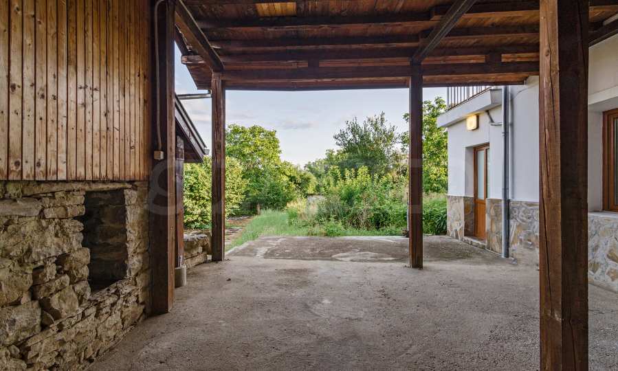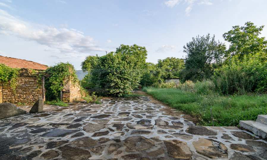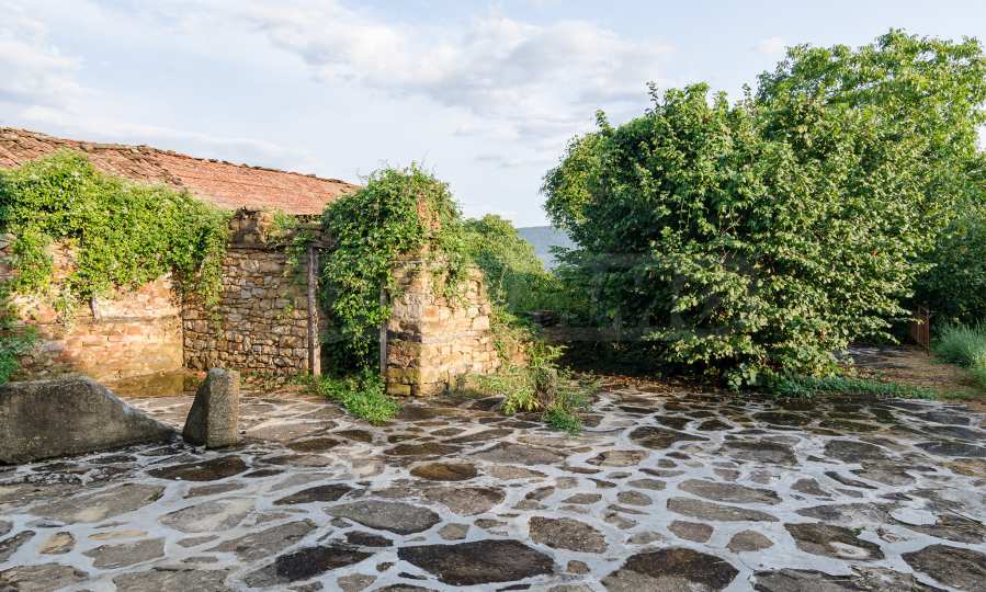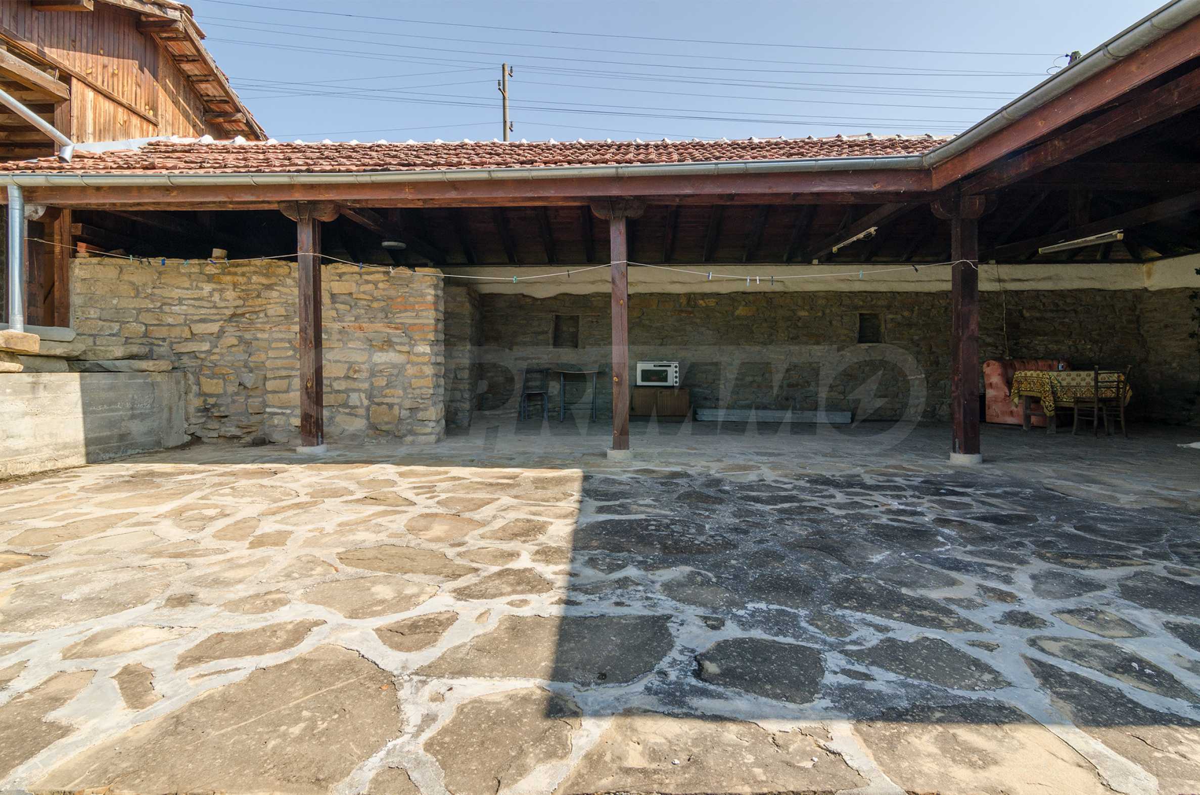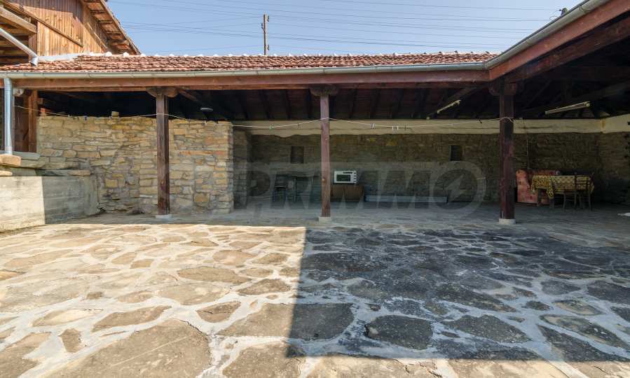 Дворът от 1570 кв.м е просторен и добре поддържан, като разполага с кладенец, гараж и навес за барбекю, осигуряващи допълнителни удобства за комфортен начин на живот. Къщата е с изцяло подменени ВиК и електроинсталации, съчетавайки автентичен селски стил със съвременни подобрения.