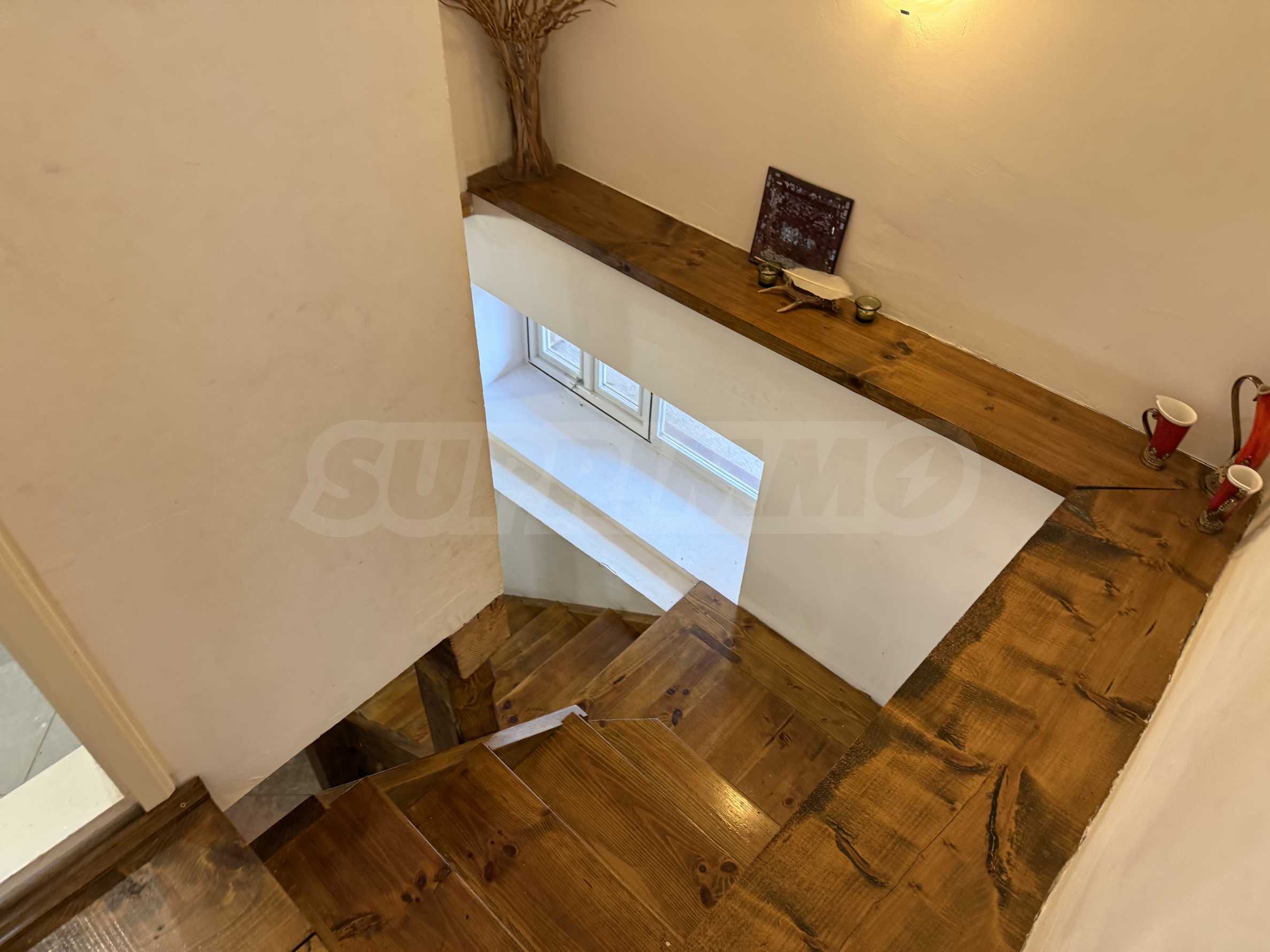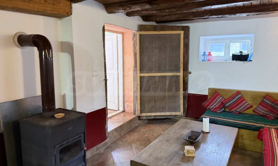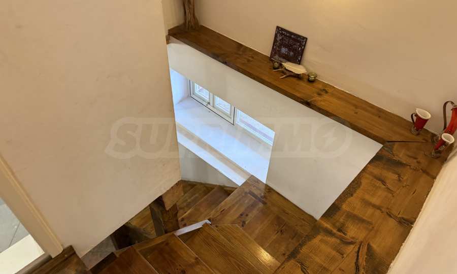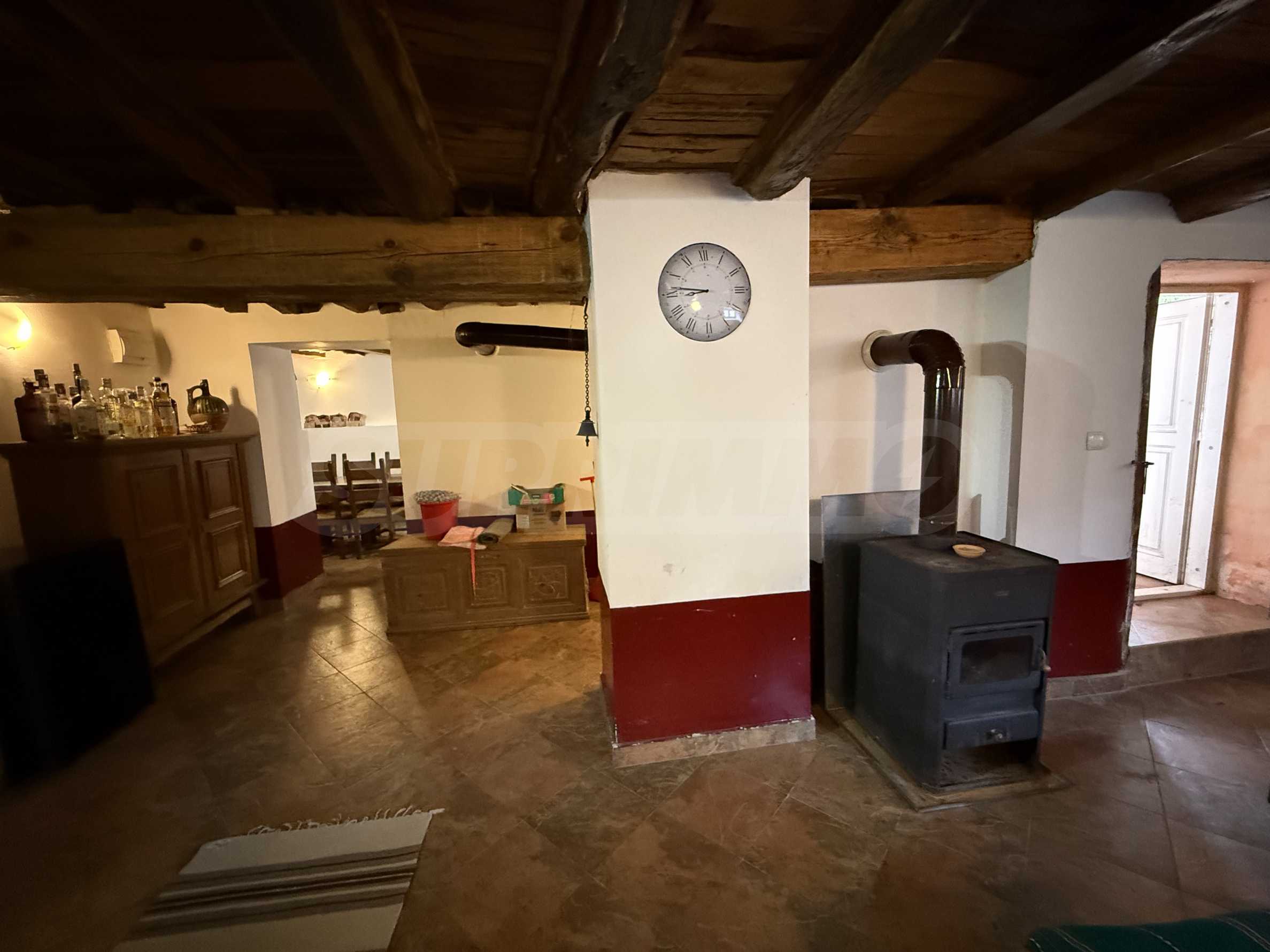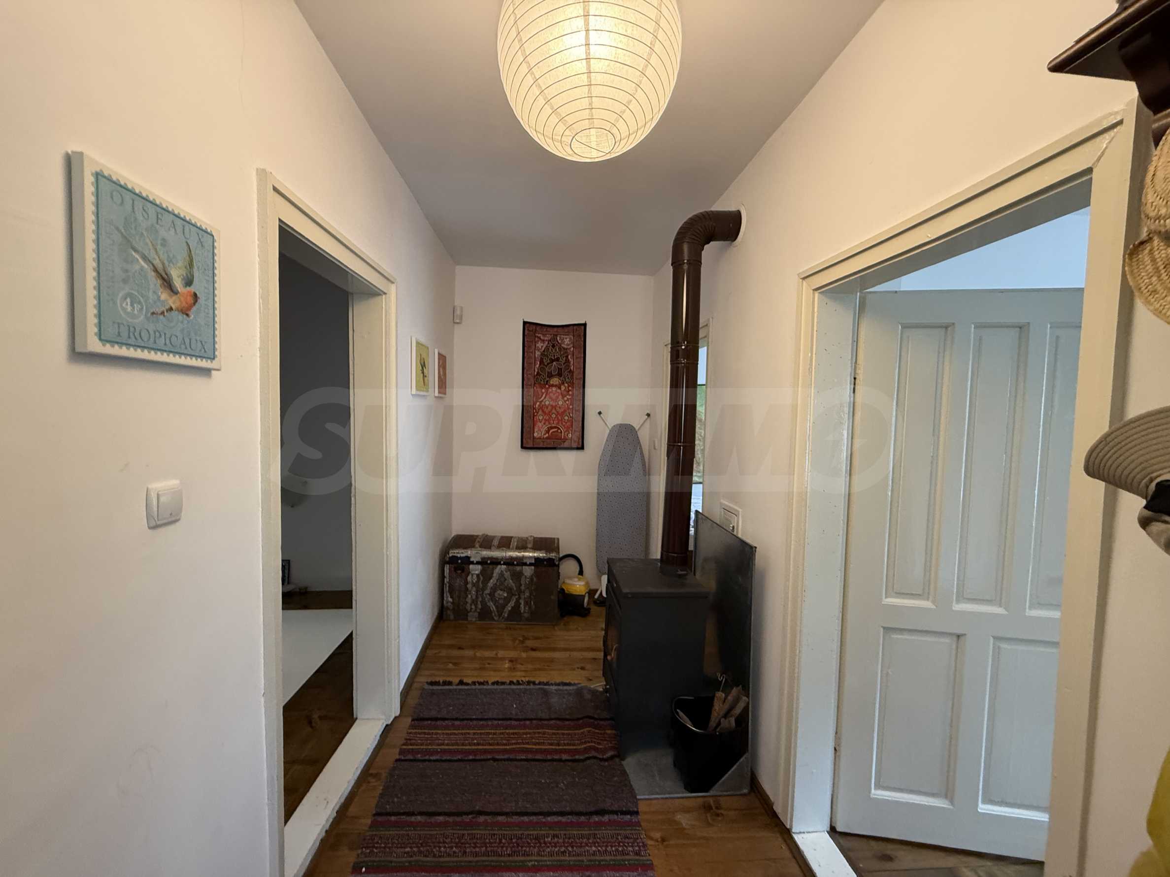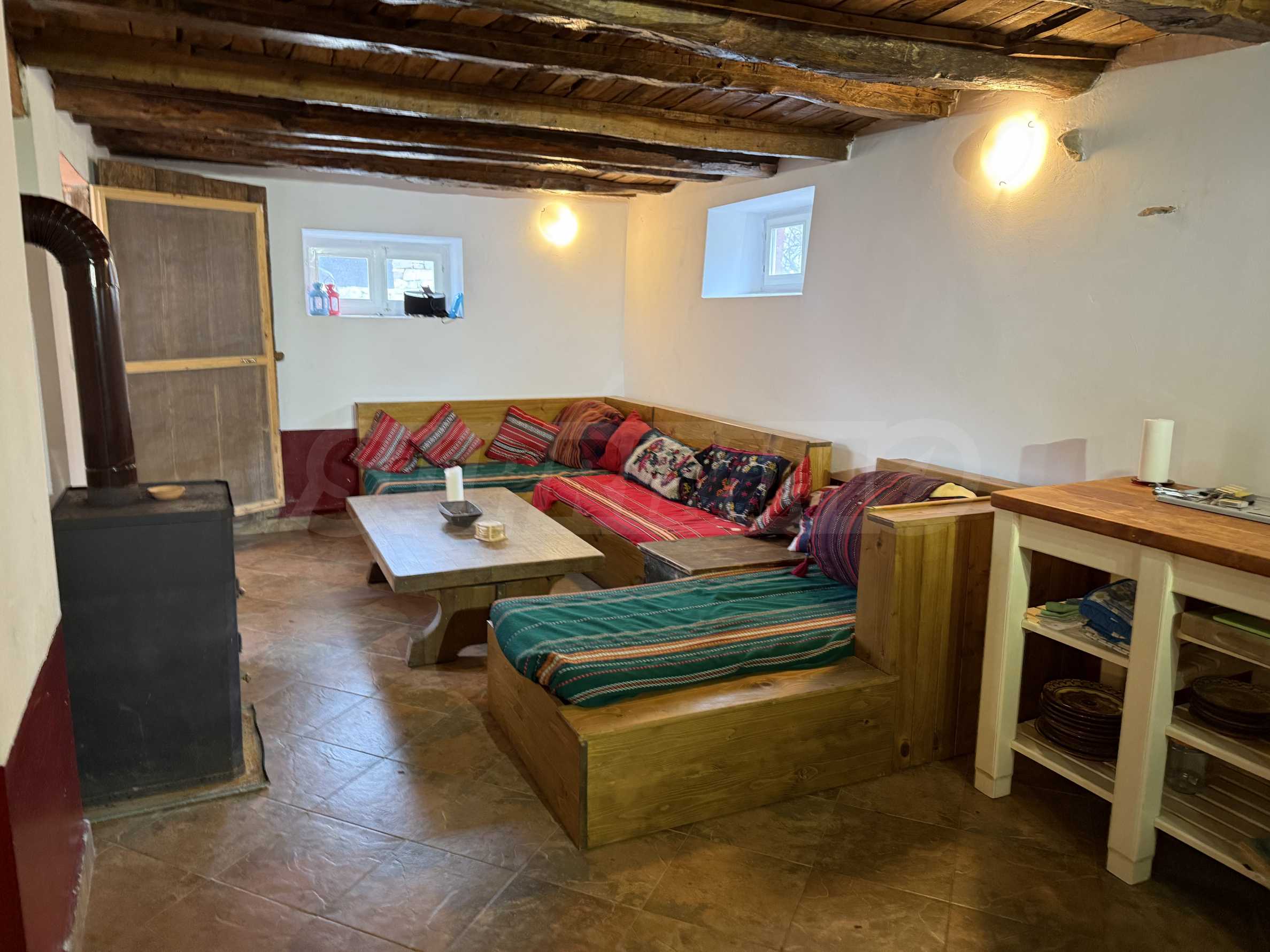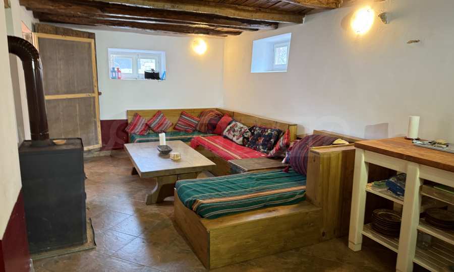 Първият етаж разполага с голямо отворено помещение, обединяващо кухня, трапезария и дневна зона, с камина, която внася топлина и уют. На втория етаж са разположени три спални, баня с тоалетна и втора камина. Подовете на горния етаж са от естествено дърво, както и дограмата, запазена в традиционен стил.