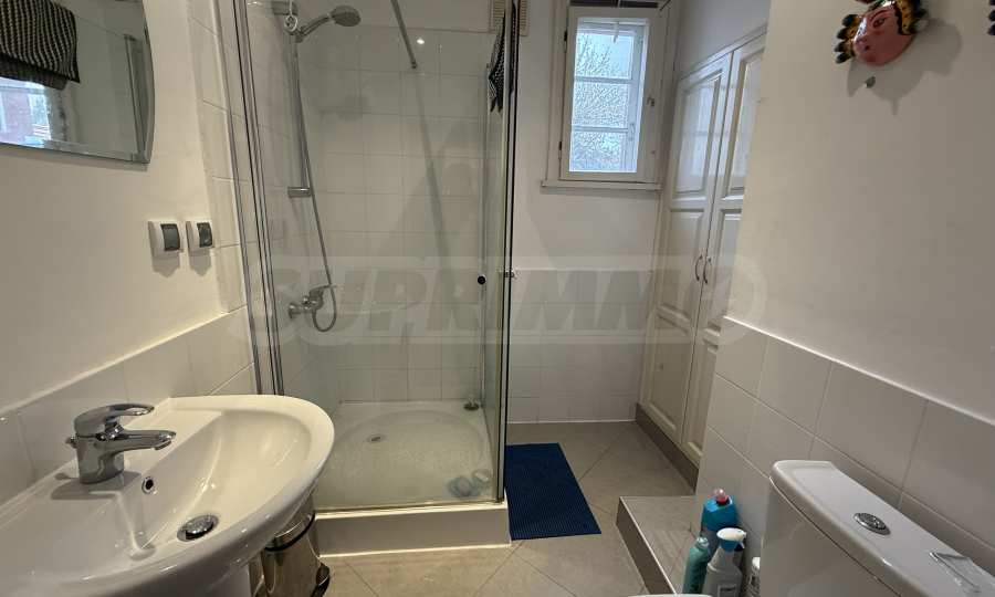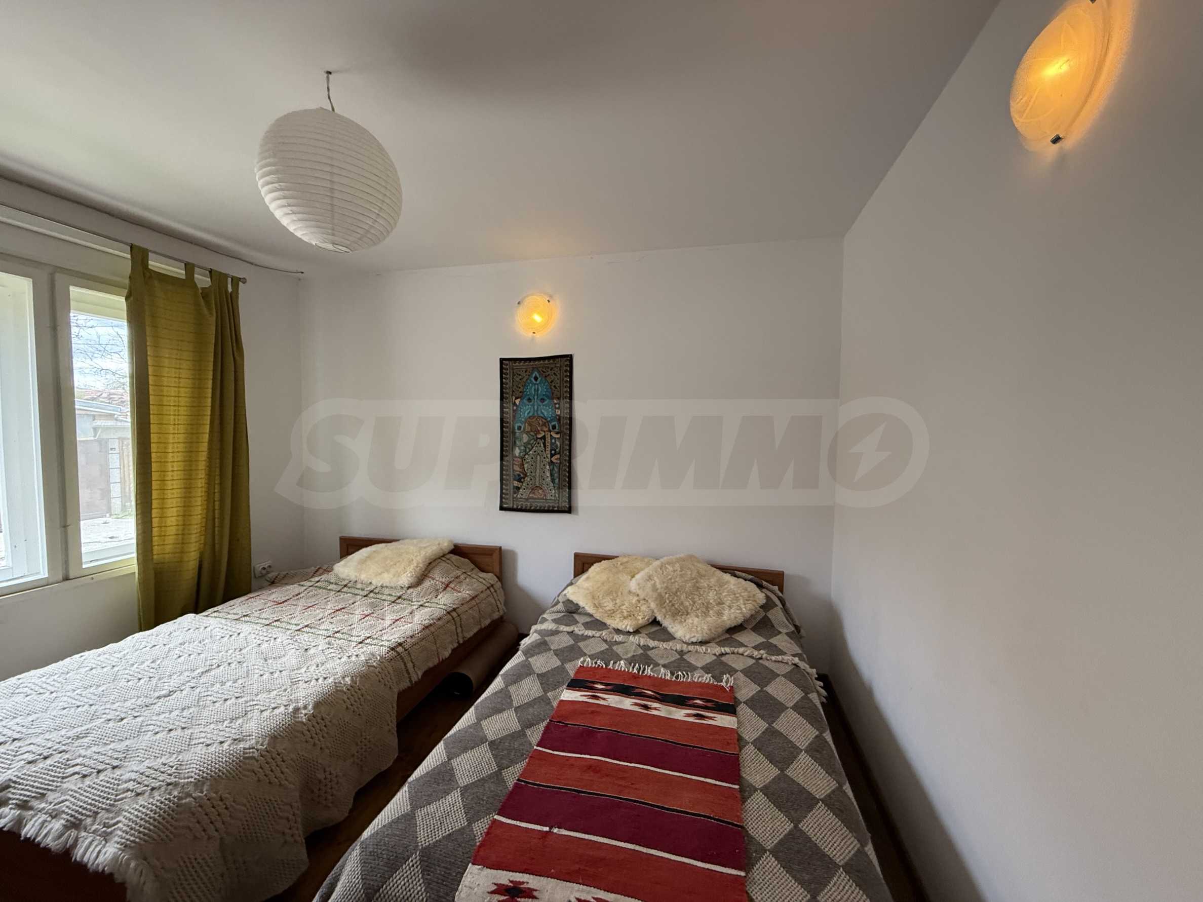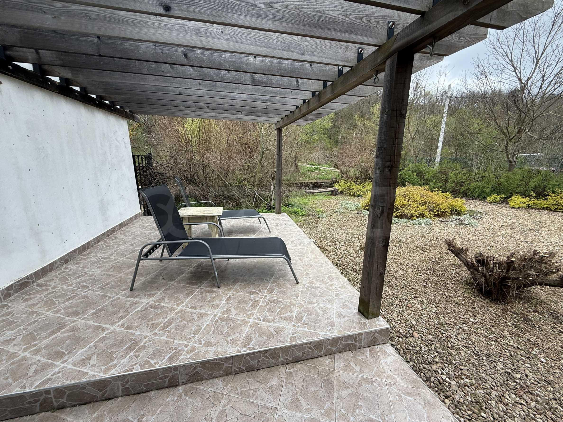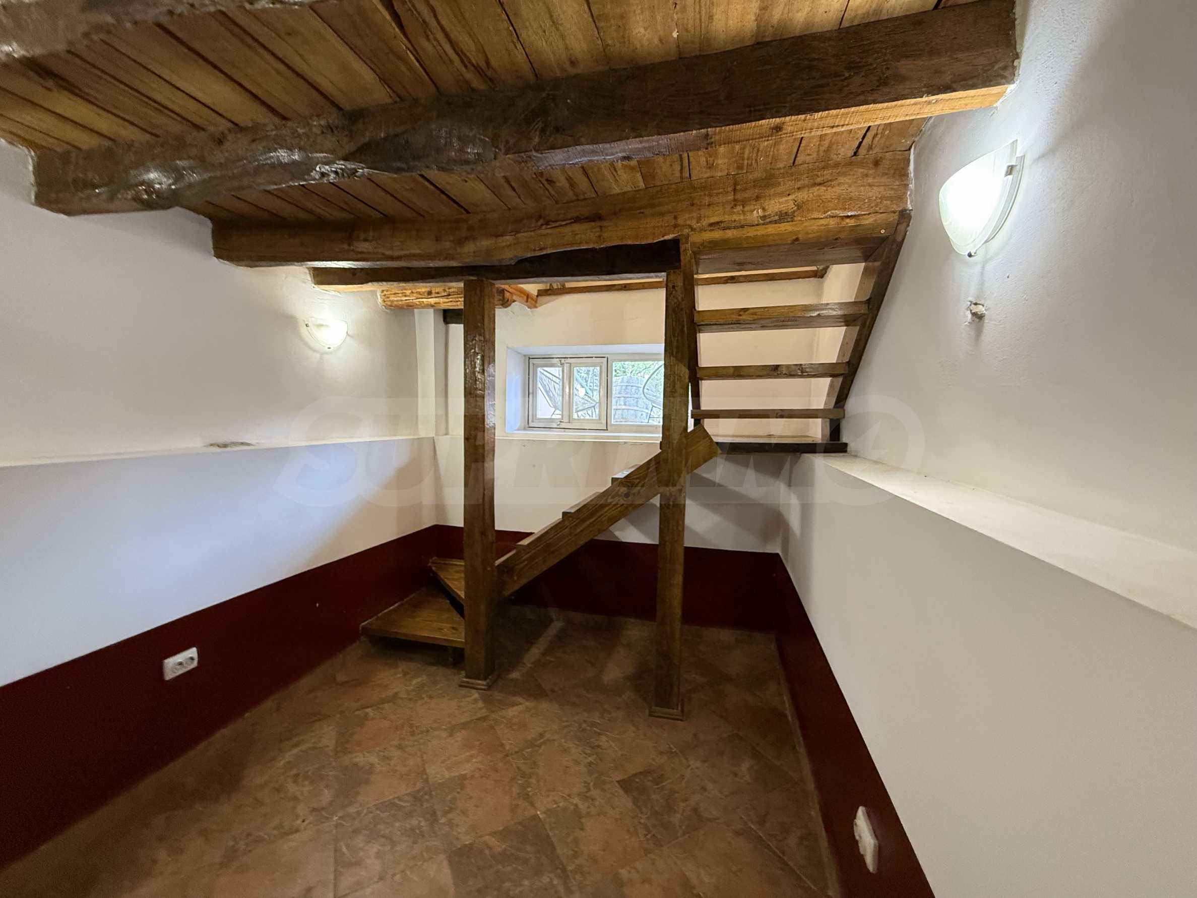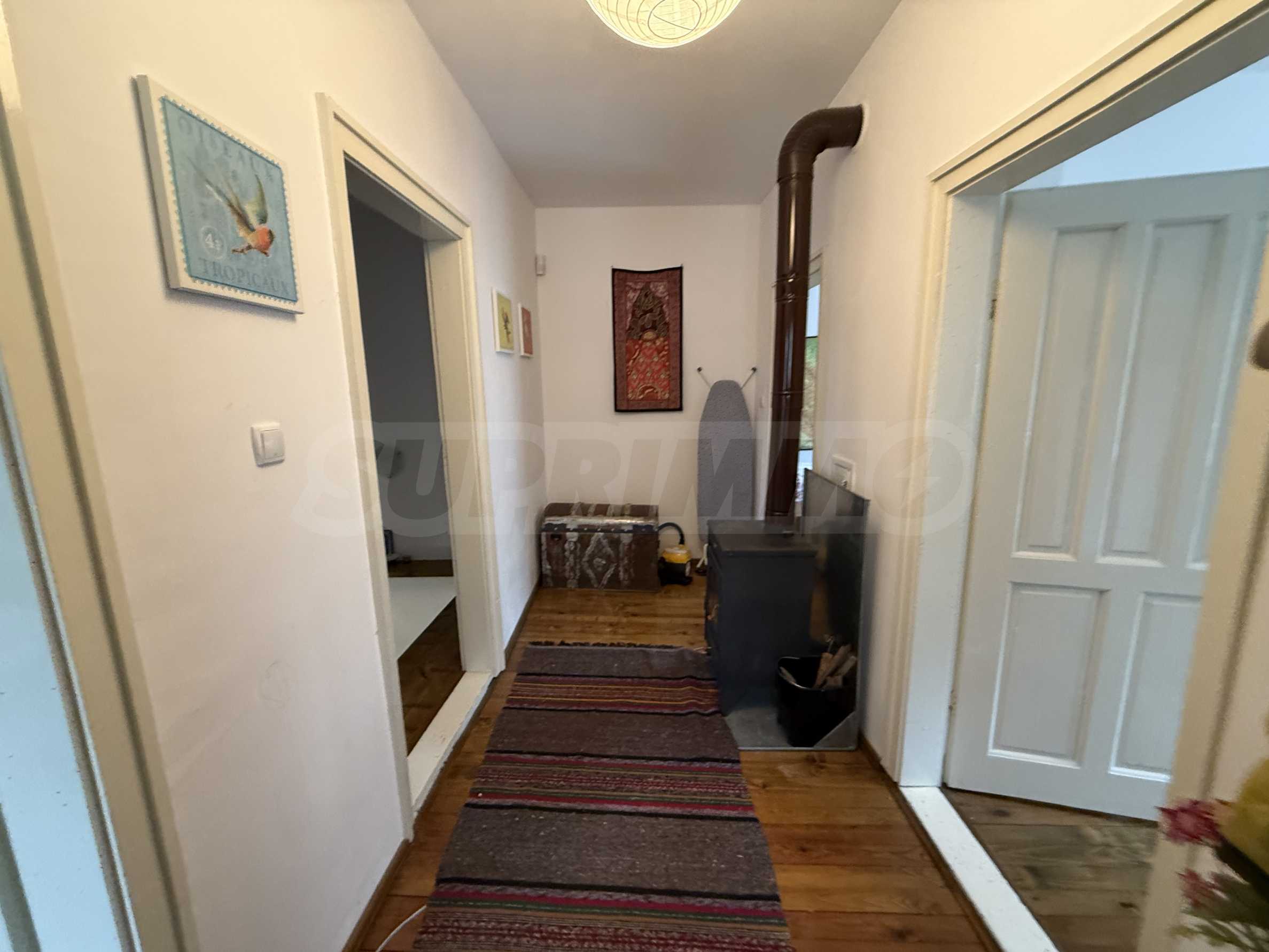 Първият етаж разполага с голямо отворено помещение, обединяващо кухня, трапезария и дневна зона, с камина, която внася топлина и уют. На втория етаж са разположени три спални, баня с тоалетна и втора камина. Подовете на горния етаж са от естествено дърво, както и дограмата, запазена в традиционен стил.