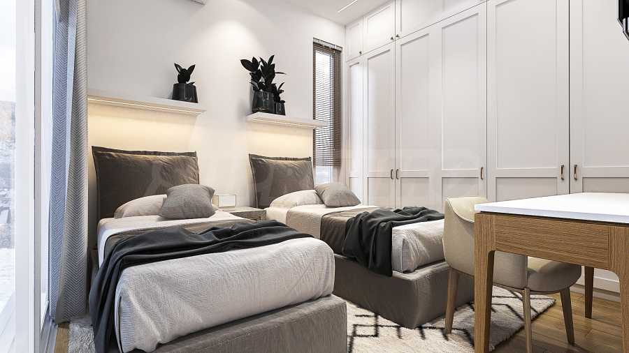 • етаж 2: три спални, три бани, дрешник, мокро помещение и тераса;