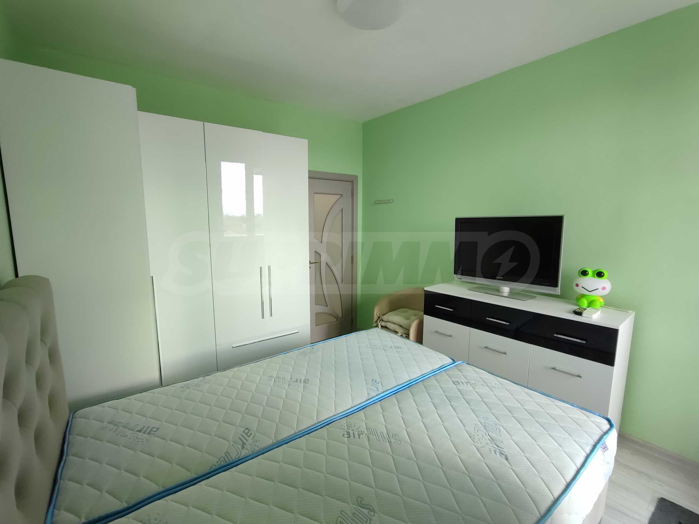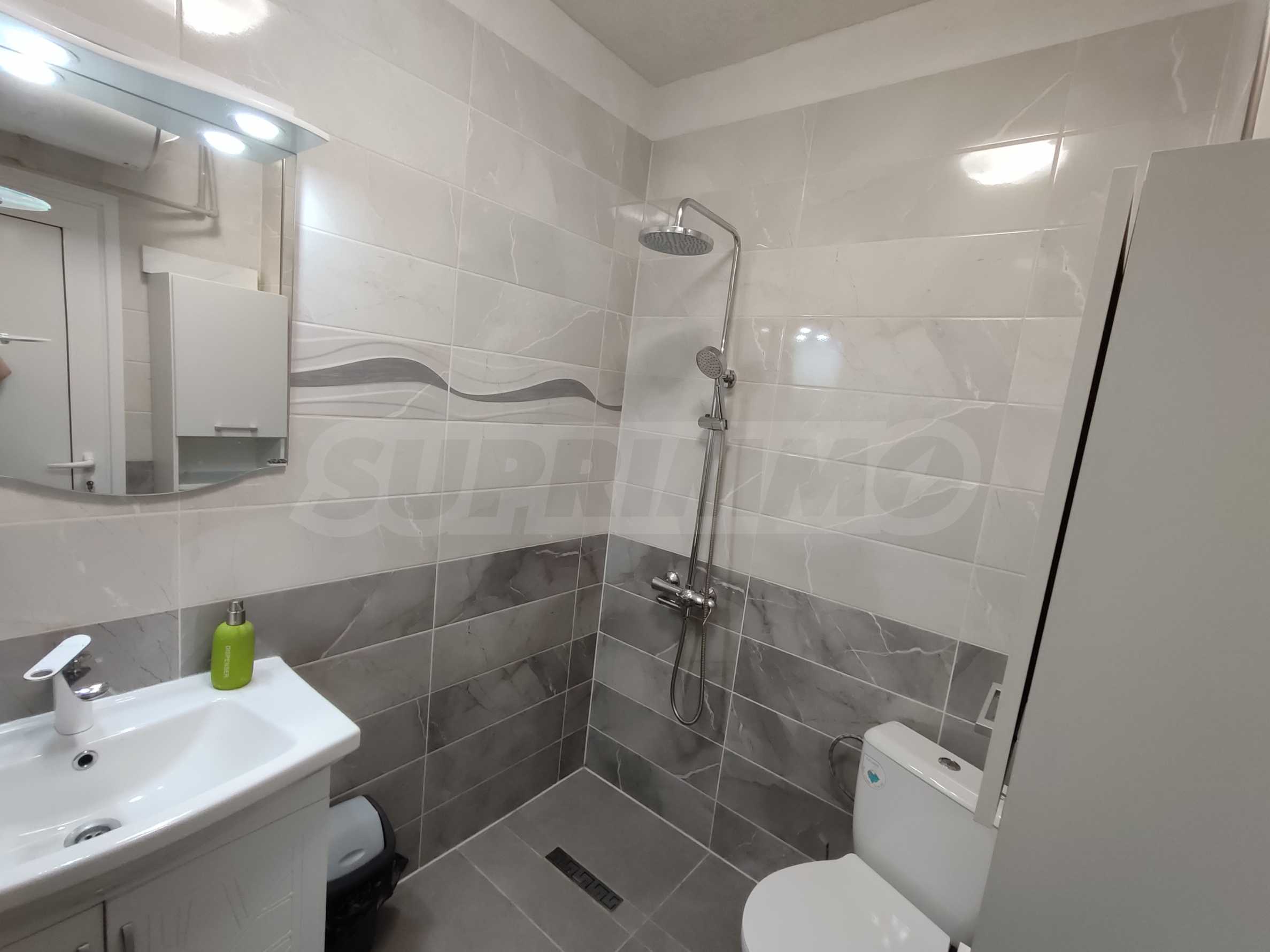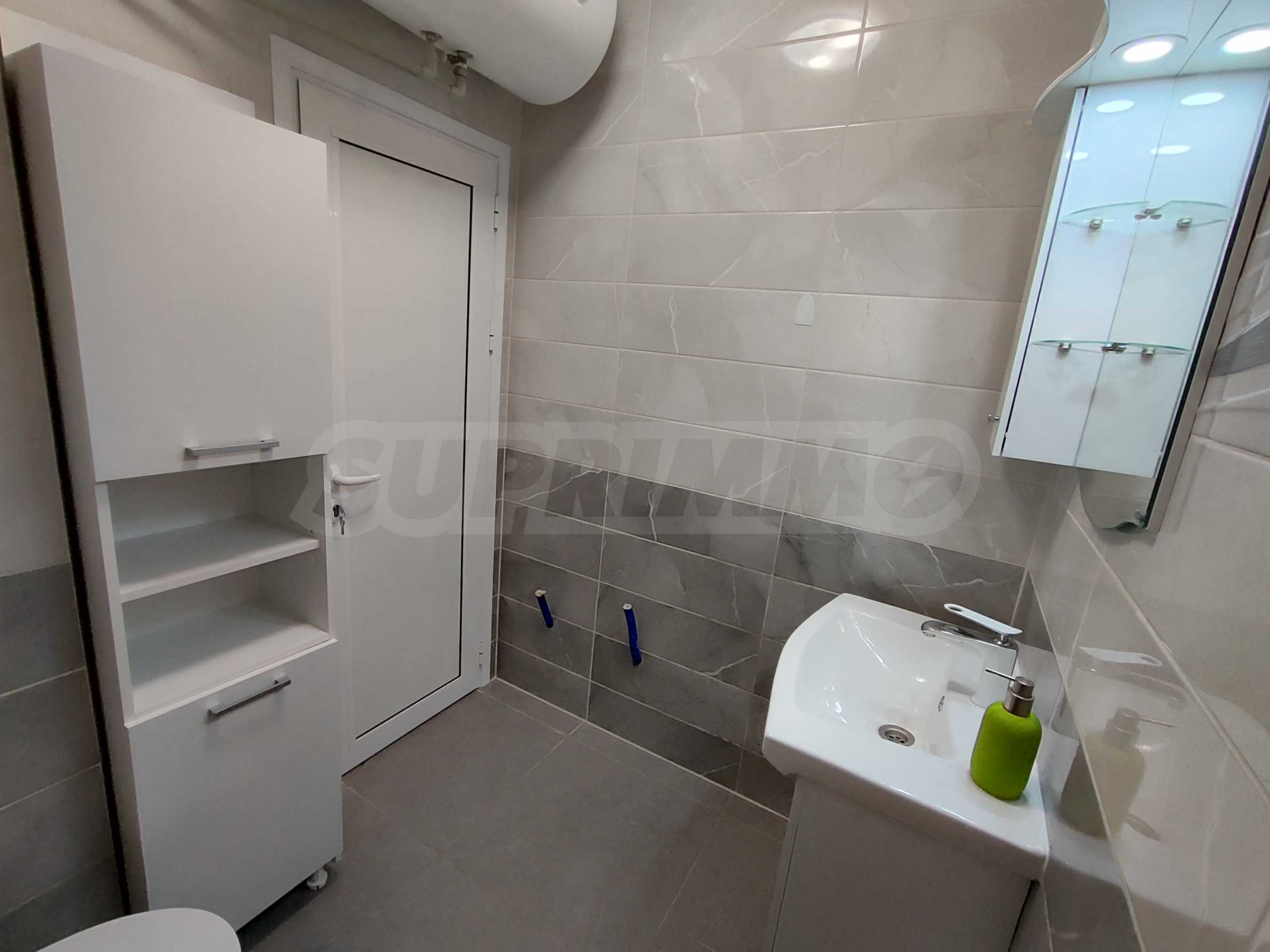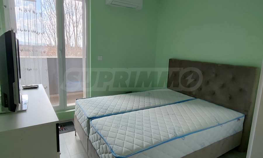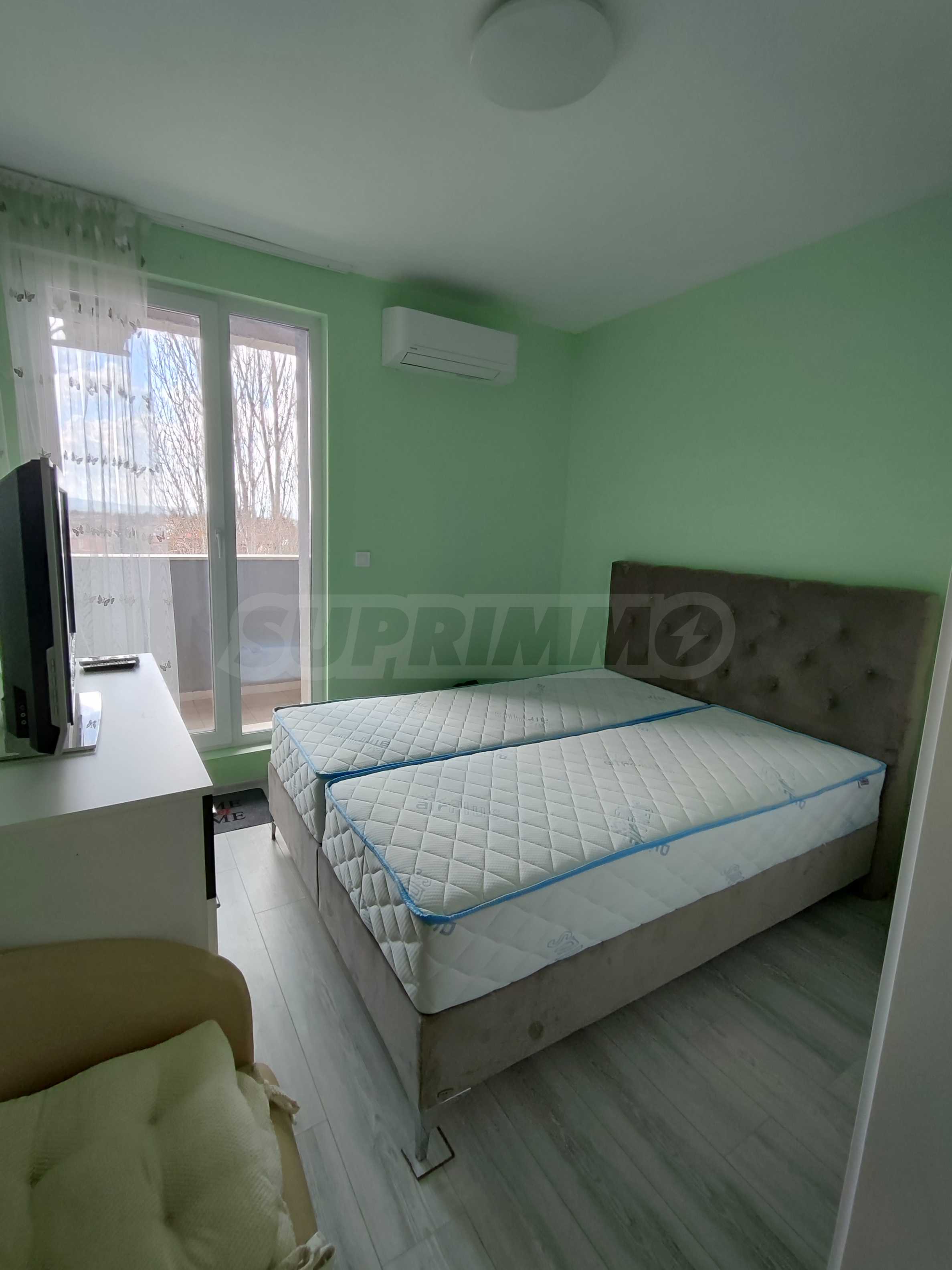 Апартаментът се намира в нов затворен комплекс от 2022 г. и се предлага с паркомясто на цена от 25 евро.