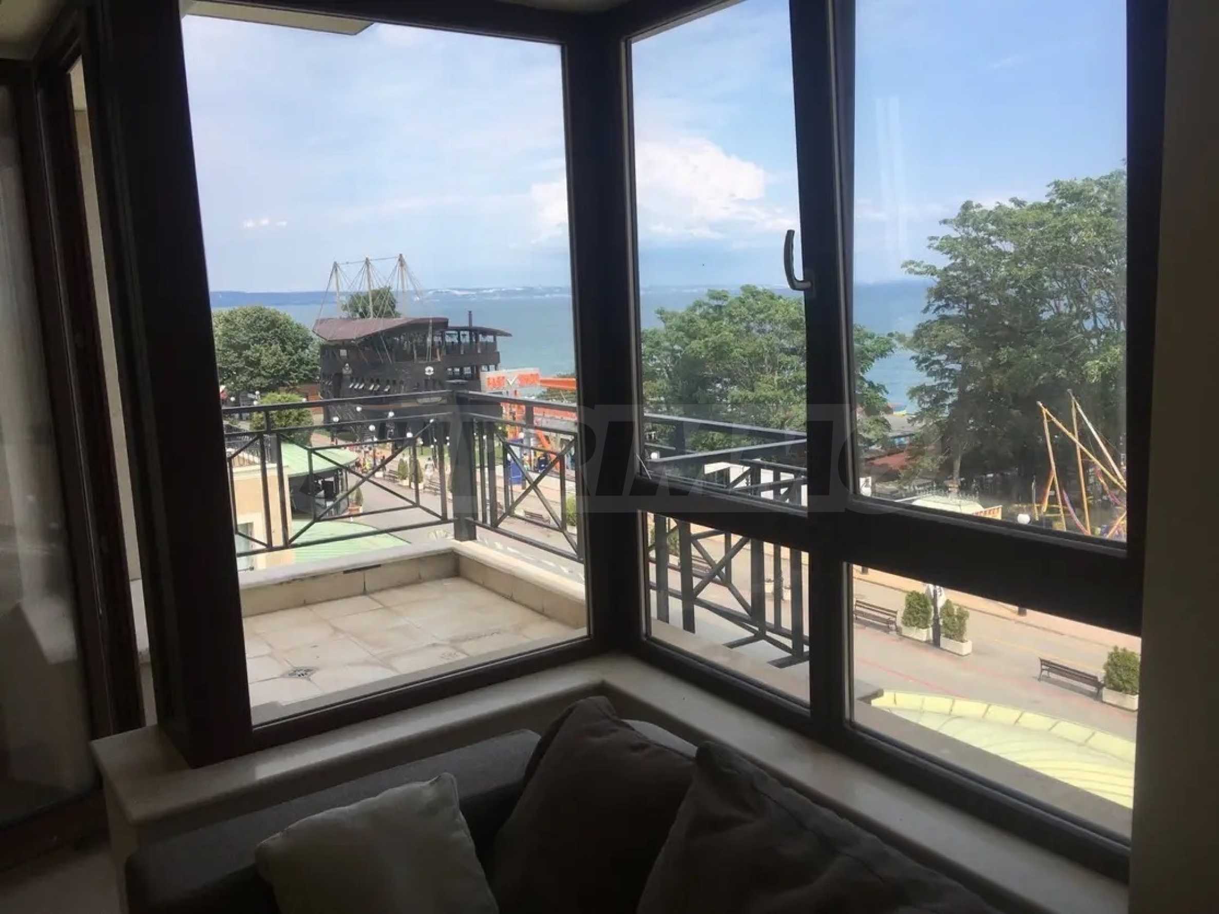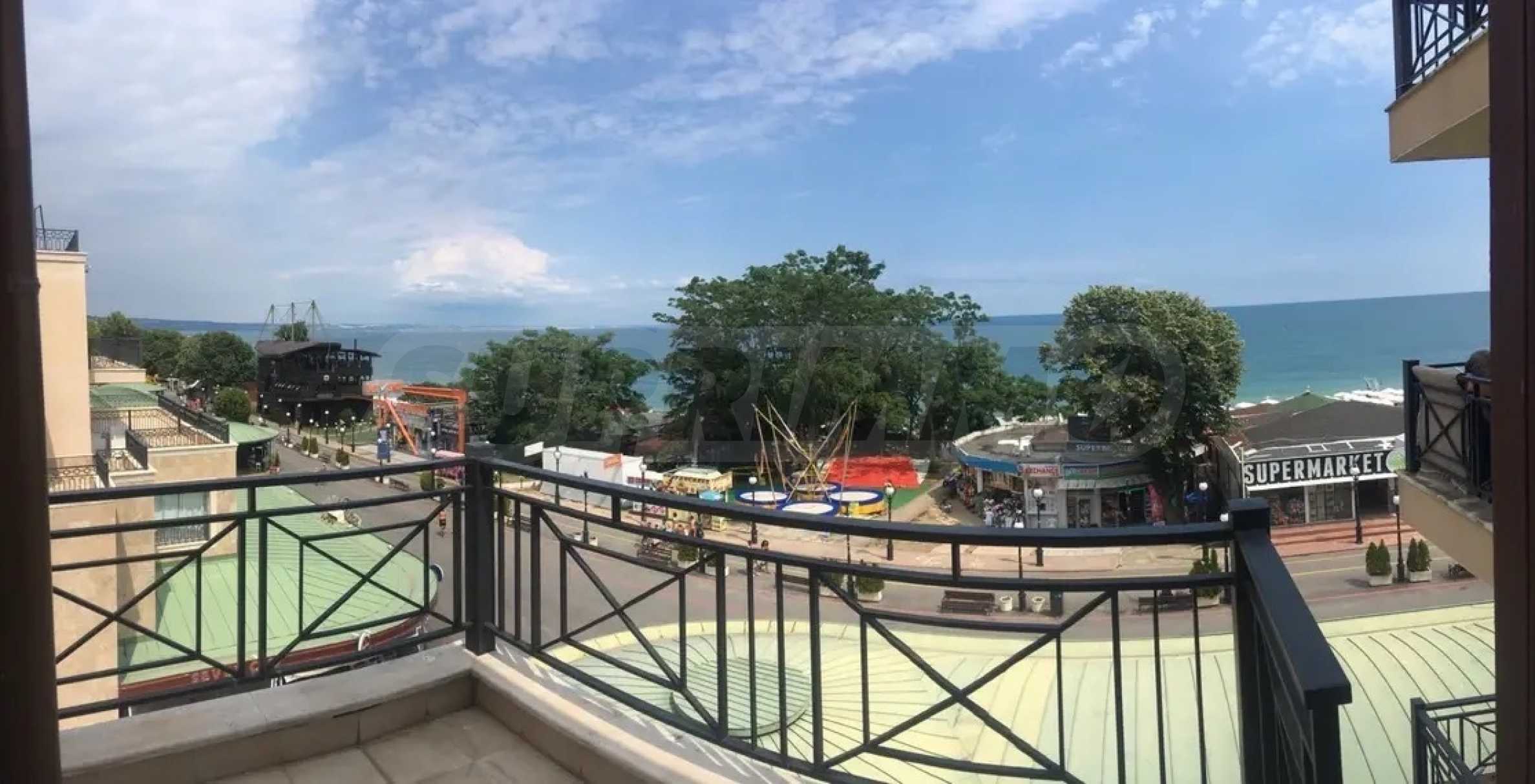 На първа линия, в непосредствена близост до ресторанти, барове, магазини, кафенета и други удобства. Плажът на курорта е с изключително чиста морска вода, дълга и широка пясъчна ивица и е сред любимите на гостите на Варна.