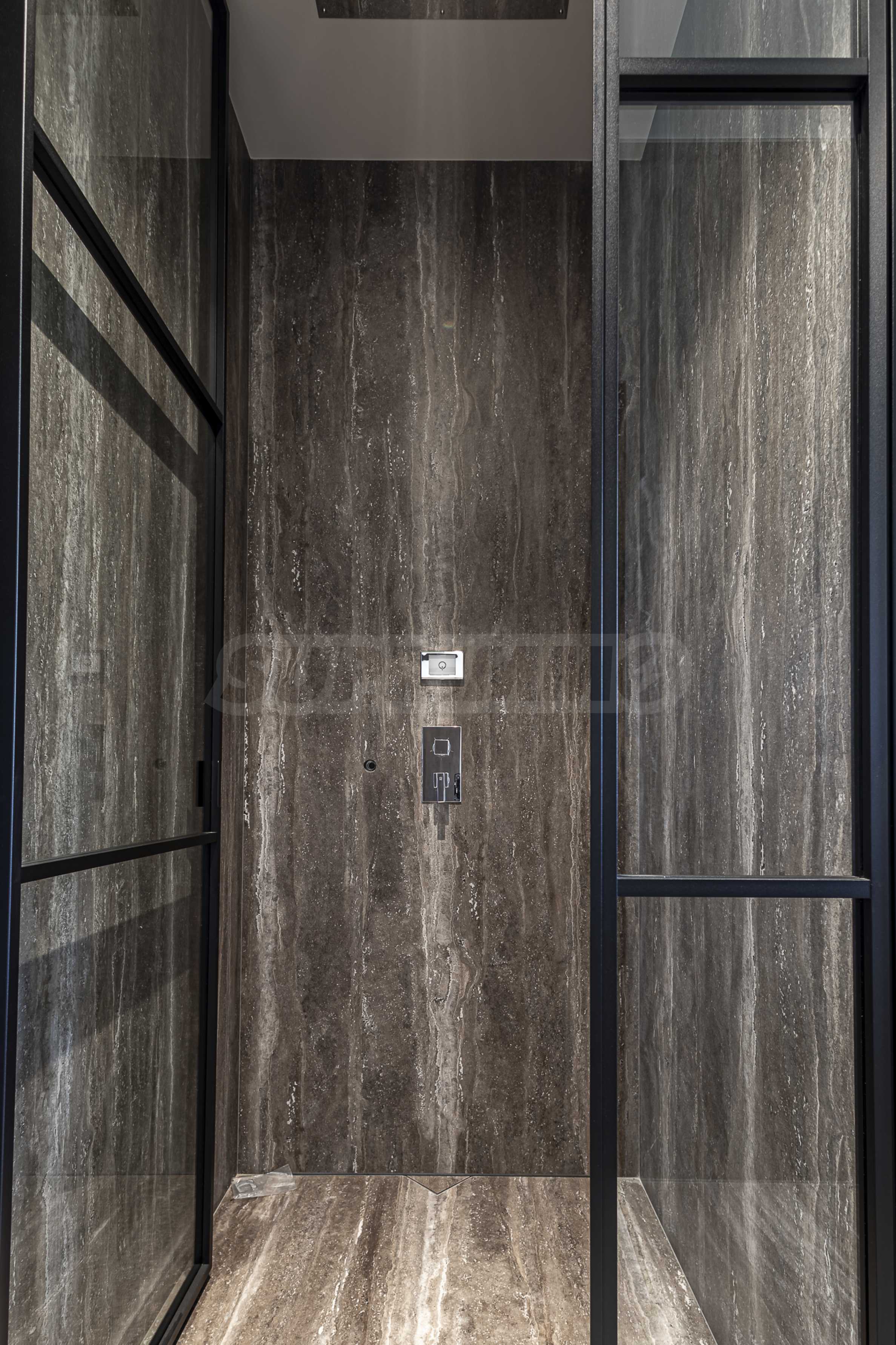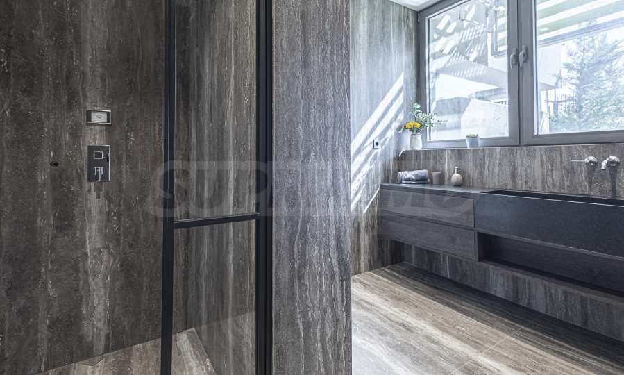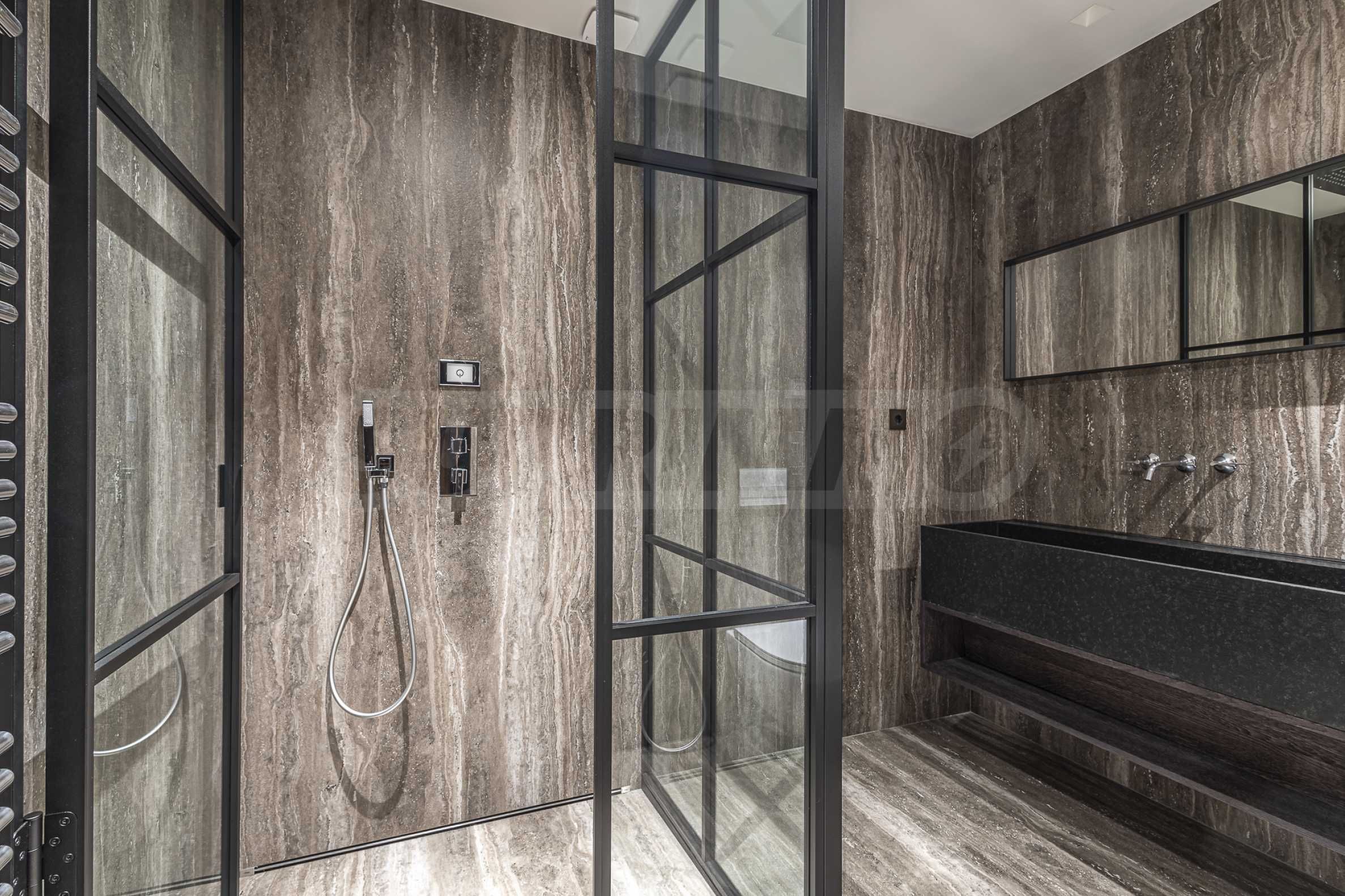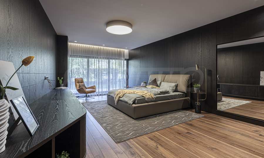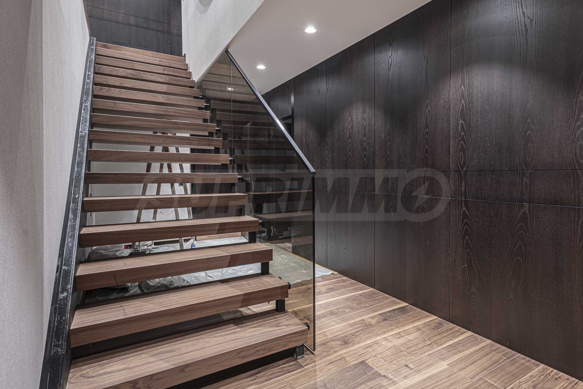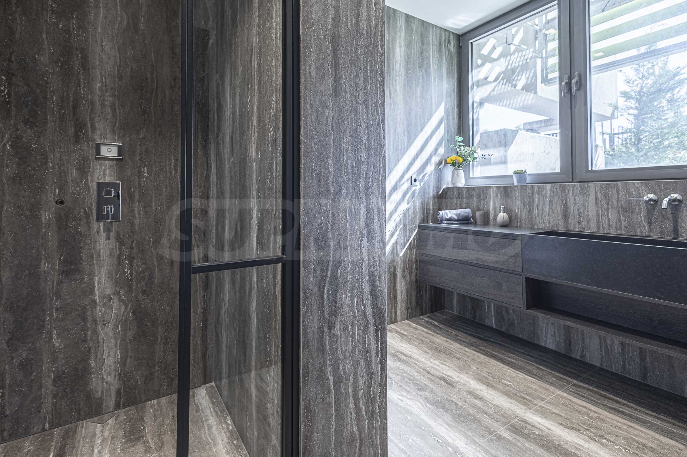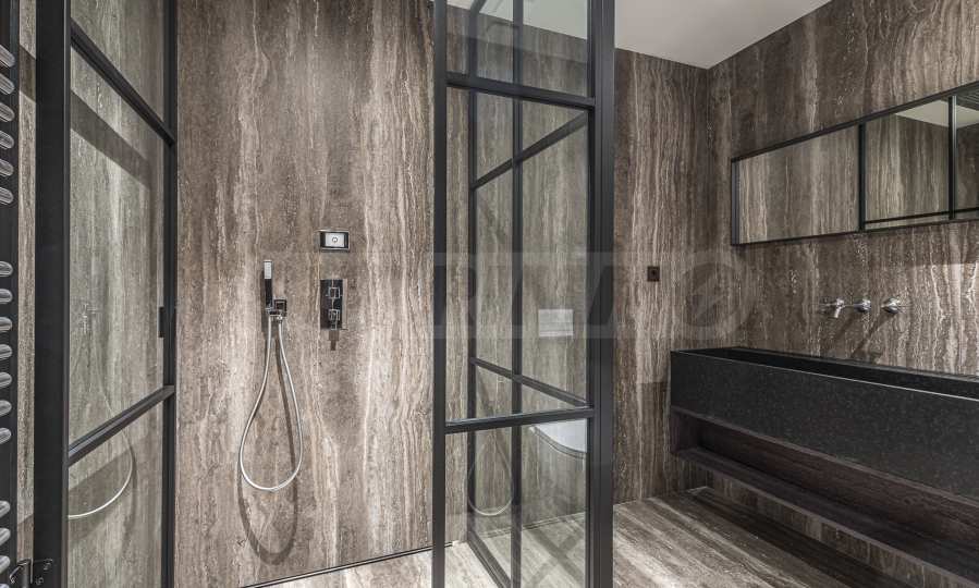 Апартаментът е завършен и обзаведен с най-висок клас материали, мебели и уреди. В дневната е монтирана модерна и функционална кухня с вградени уреди Mielе. Всички помещения освен баните са завършени с подова настилка от естествен паркет.