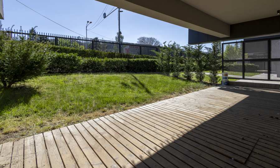 Жилището е разположено на партер и първи етажи в 4-етажна сграда, на първа линия от езерото. Сградата е тип затворен комплекс с охрана.