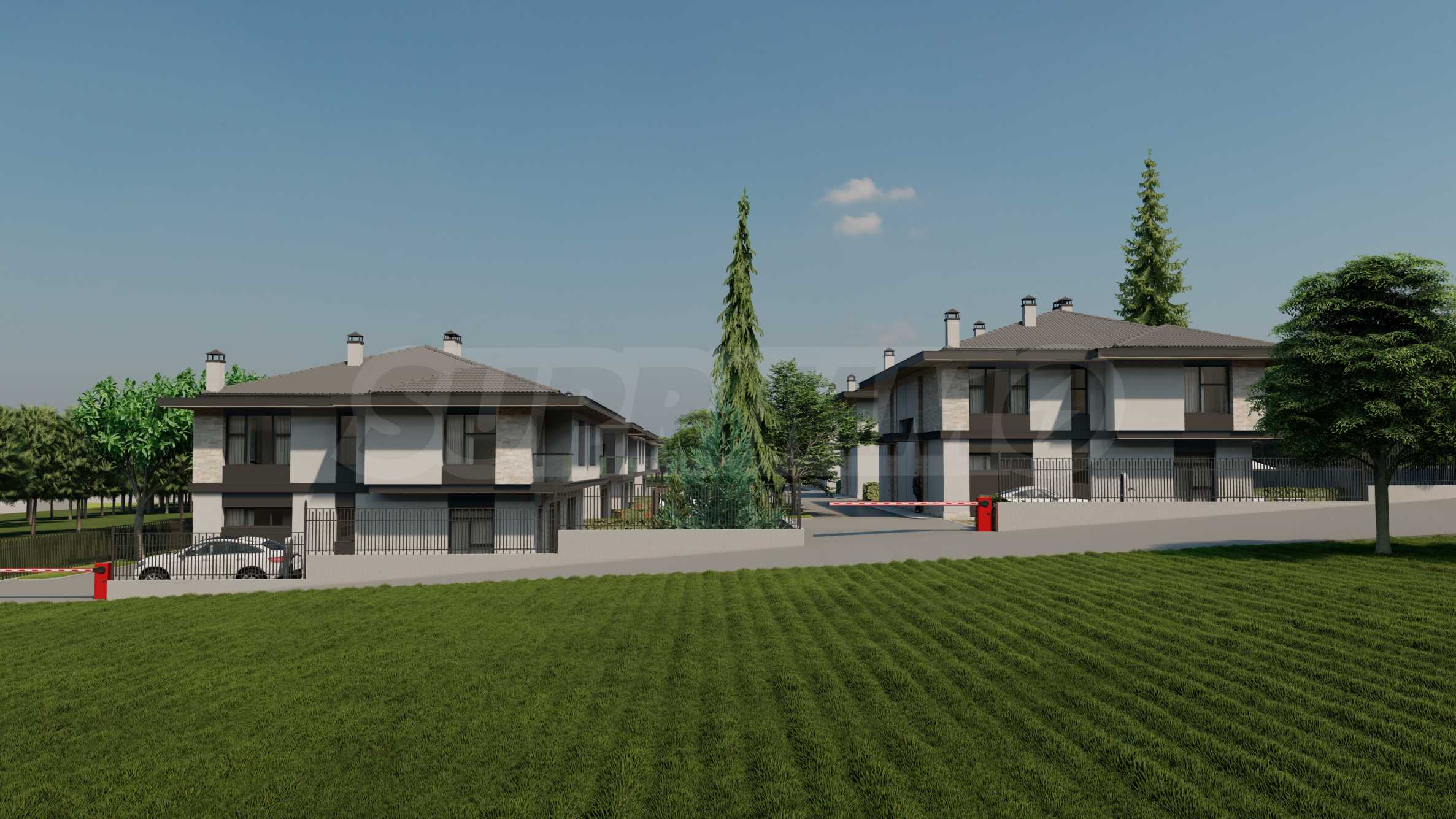 Архитектурната концепция на къщите залага на съвременна и изчистена визия, вдъхновена от идеята за модерен семеен дом сред природата. Фасадата е решена в балансирана комбинация от светли мазилки, облицовка с камък и детайли от композитни панели в графитен акцент, които придават елегантност и устойчивост във времето. Широките стрехи, правите линии и хоризонталните обеми осигуряват усещане за мащаб и спокойствие, а големите прозорци допринасят за максимално естествено осветление във вътрешните пространства. Конструкцията и довършителните елементи следват принципите на енергоефективност и качество, превръщайки всяка къща в хармоничен съвременен дом с подчертана индивидуалност.