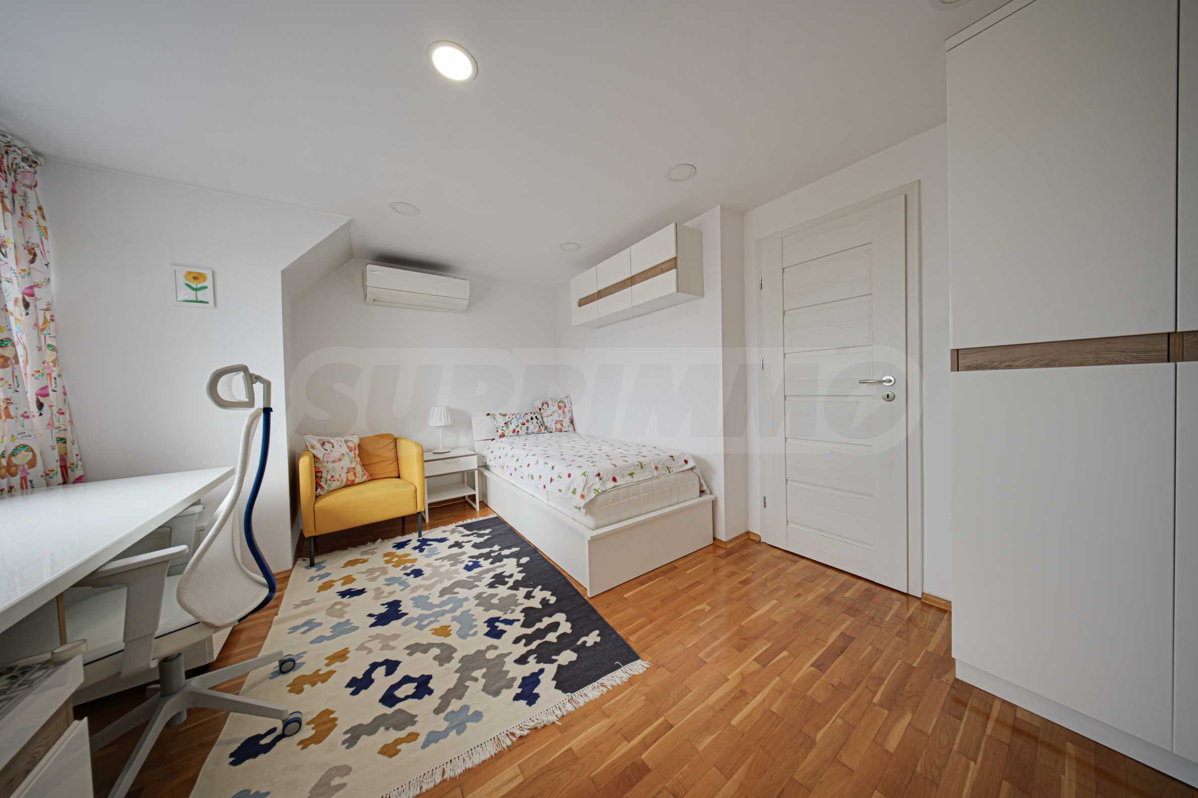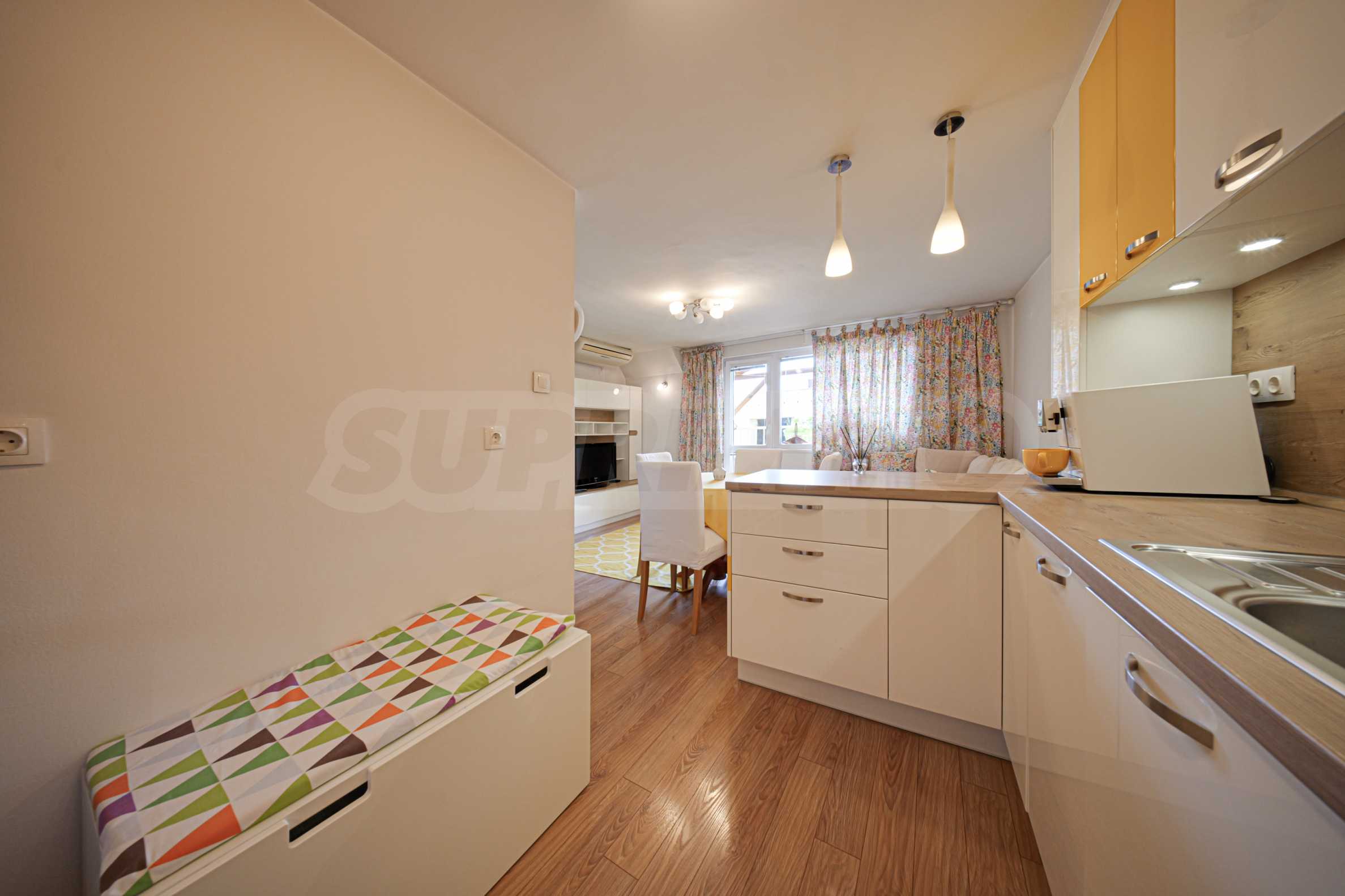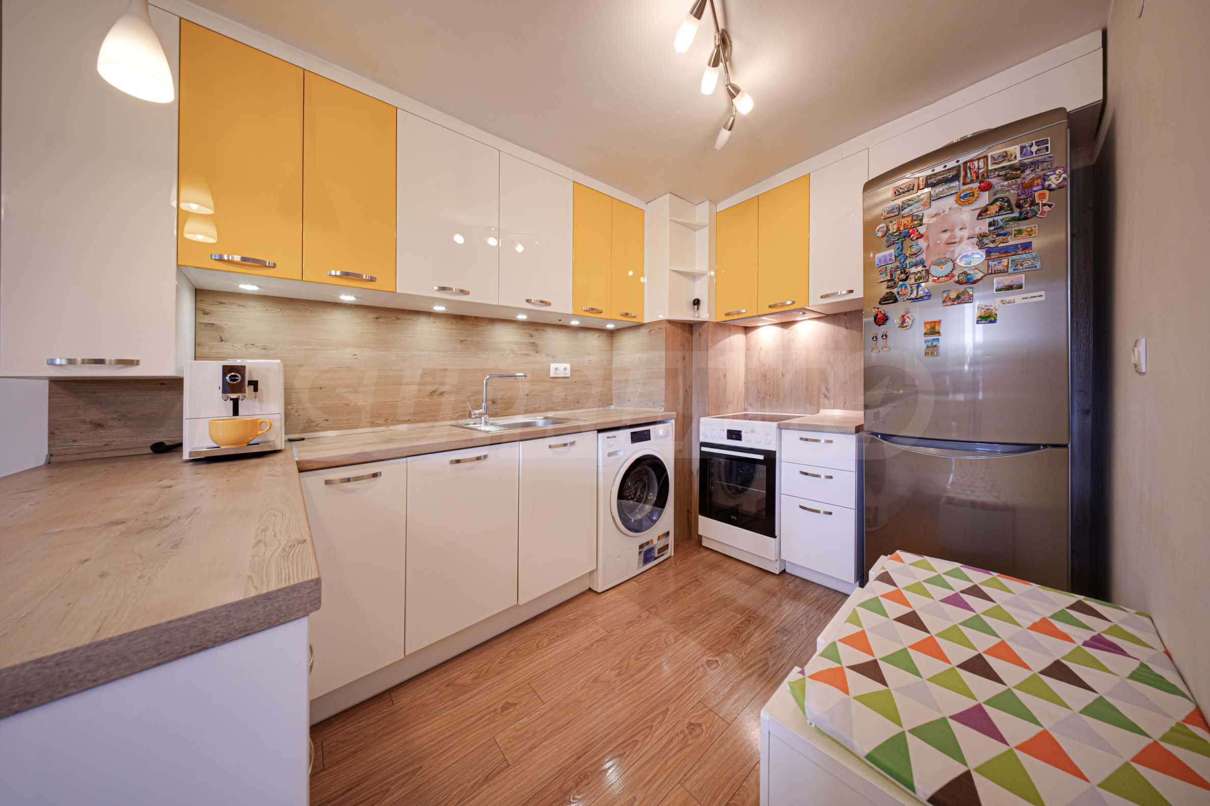Кухнята е напълно оборудвана с висок клас уреди – пералня и съдомиялна Miele, свързани с мобилно приложение, хладилник Ariston и абсорбатор Bosch. Осветлението е модерно и ефективно разположено във всяко помещение. Всички врати на санитарните помещения са изработени от PVC – влагоустойчиви и лесни за поддръжка. Имотът е окабелен за оптичен интернет и кабелна телевизия.