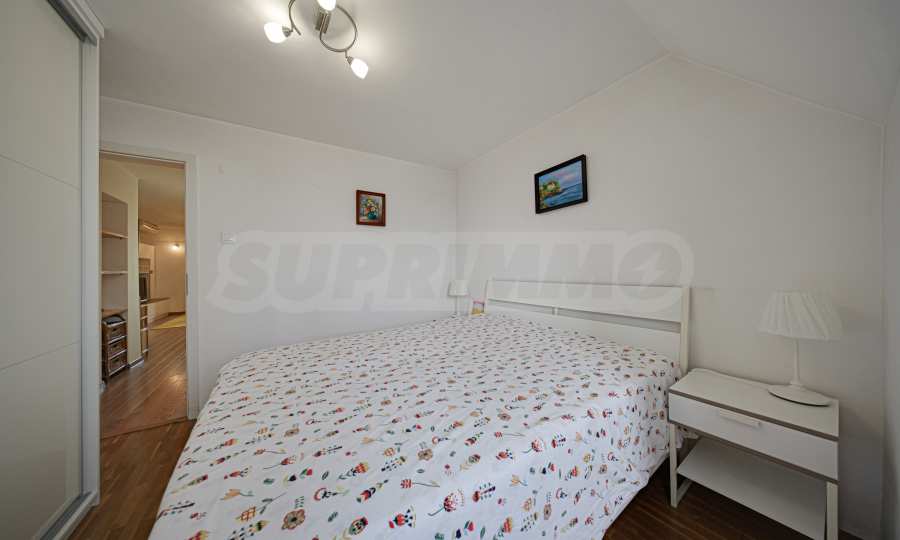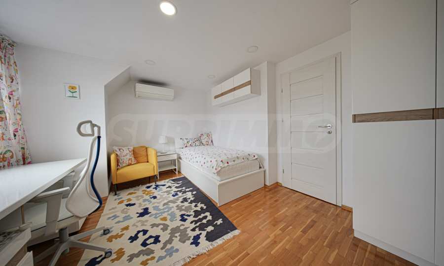Апартаментът е оборудван с енергоспестяващ климатик Daikin за цялостно отопление и охлаждане, а в спалнята на горния етаж е инсталиран модел Daikin Ururu Sarara с функция за пречистване и автоматично следене на въздуха. Подовите настилки са от естествен паркет.