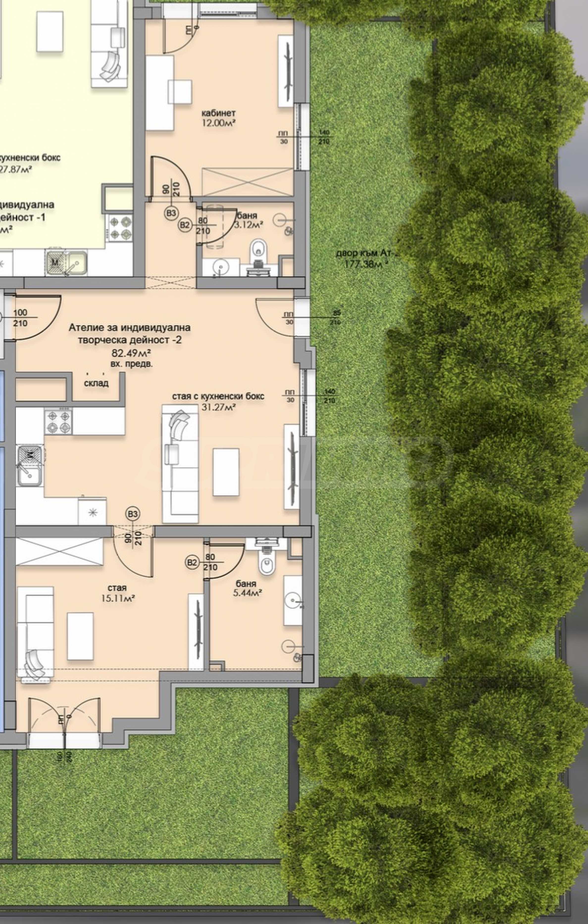 • дневна с трапезария, кухненски бокс;