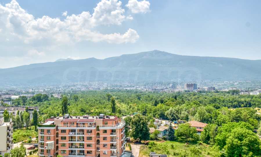 Имотът впечатлява с нескриваема панорамна гледка към планина Витоша и града, благодарение на високия етаж и ниското околно застрояване около сградата – перфектната комбинация от градска енергия и природна хармония. На пешеходно разстояние от апартамента се намира Софийският зоопарк, което допринася за зелена среда и допълнителна стойност на имота, както и удобство за семейства с деца.