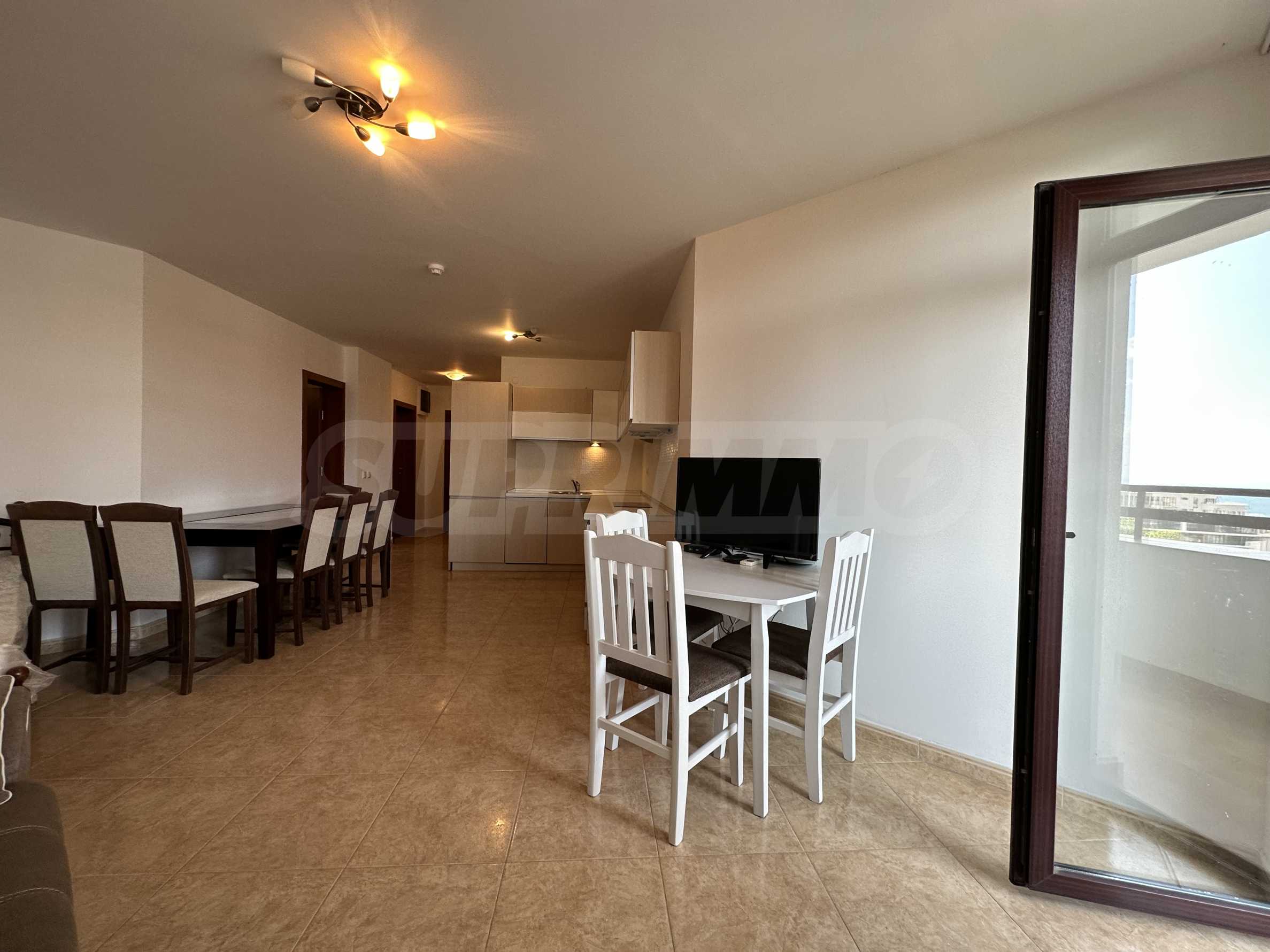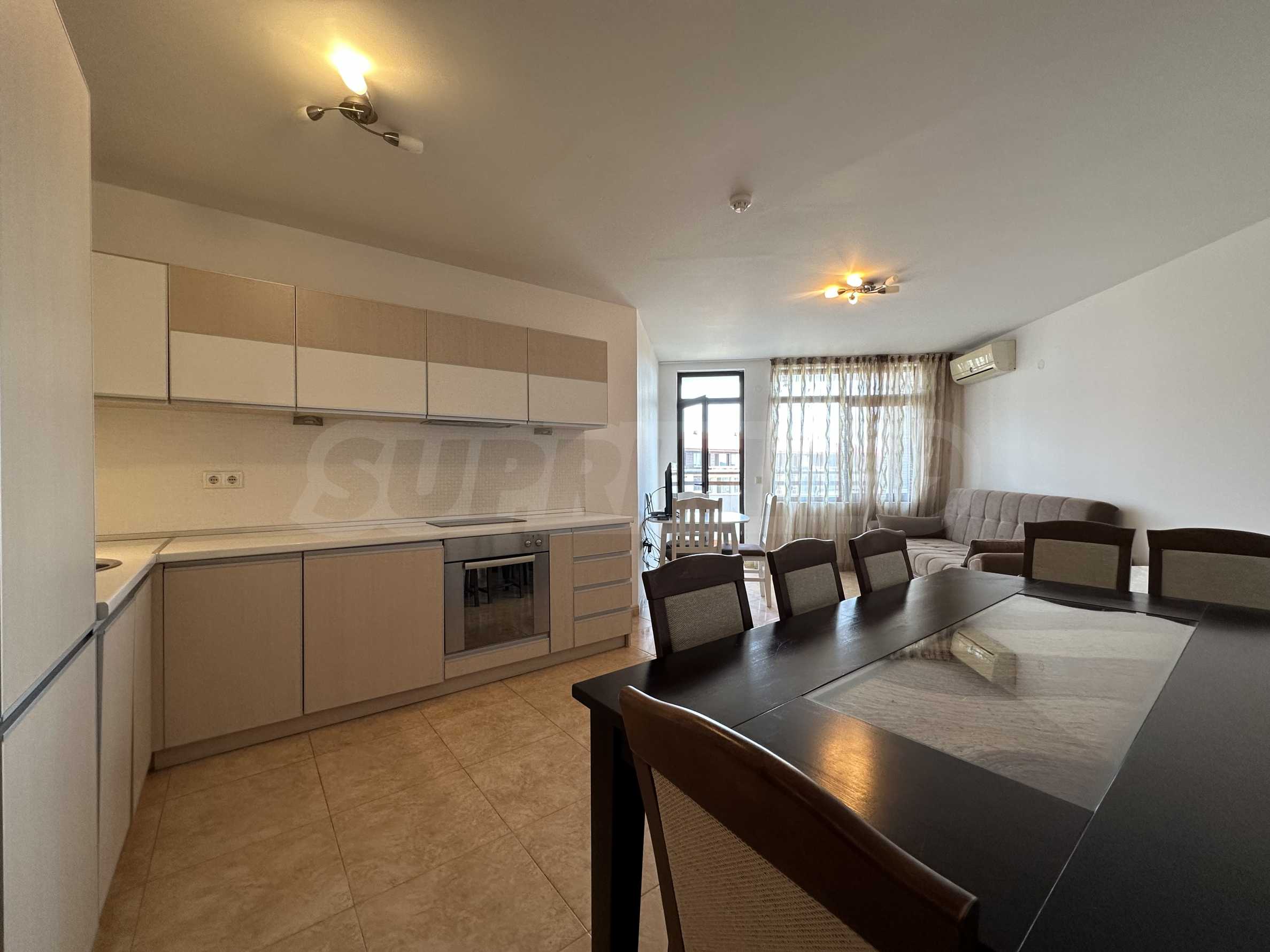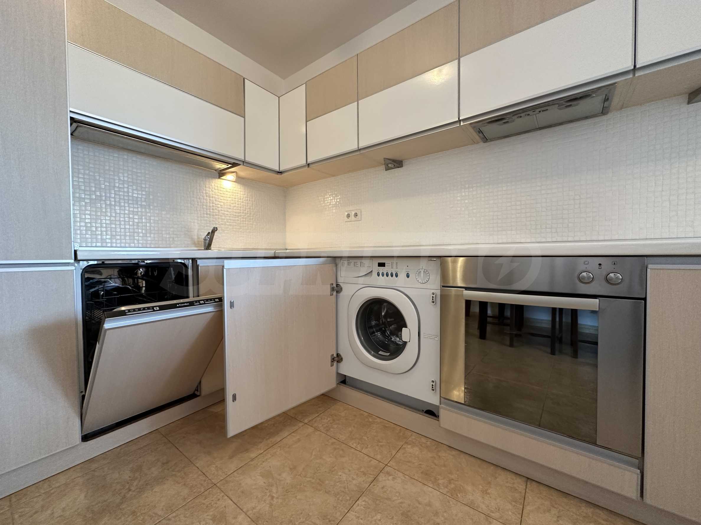 • Състояние: напълно обзаведен и отлично оборудван - печка, пералня, съдомиялна, хладилник, климатик, ТВ и др.
