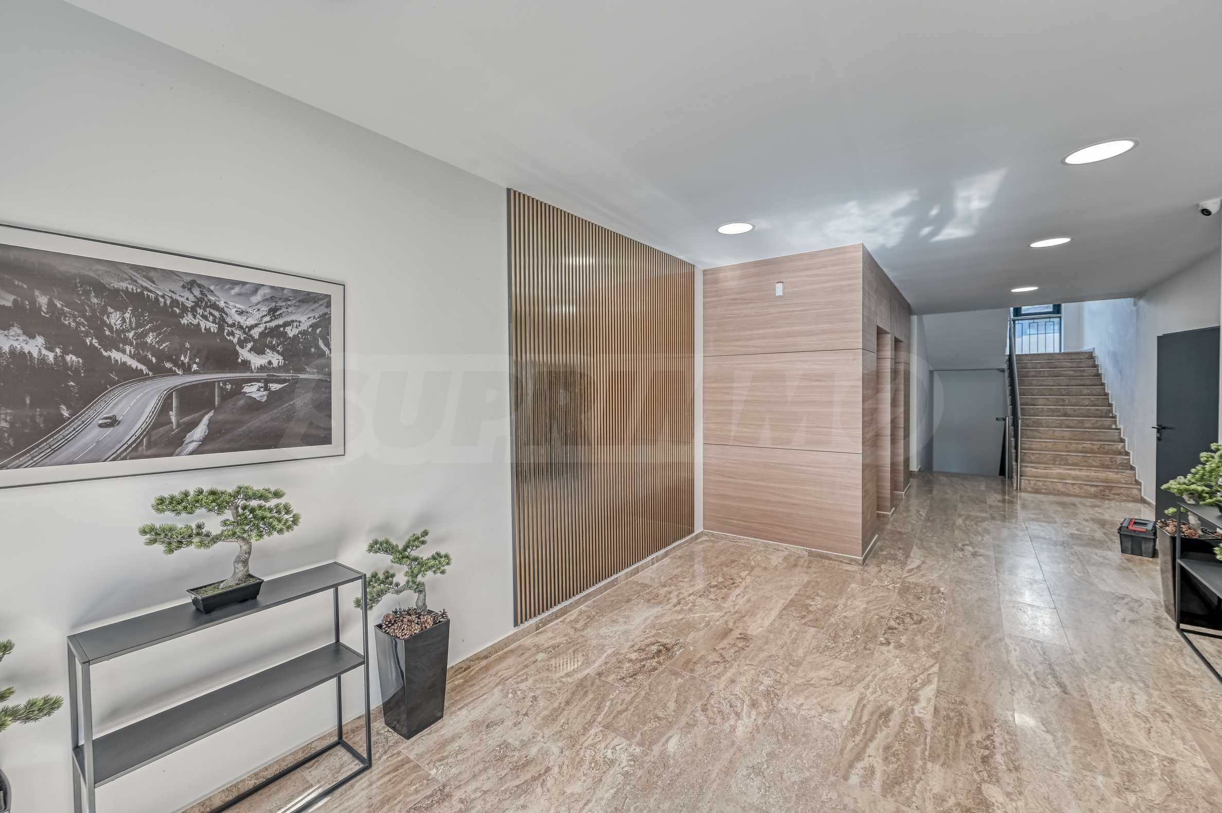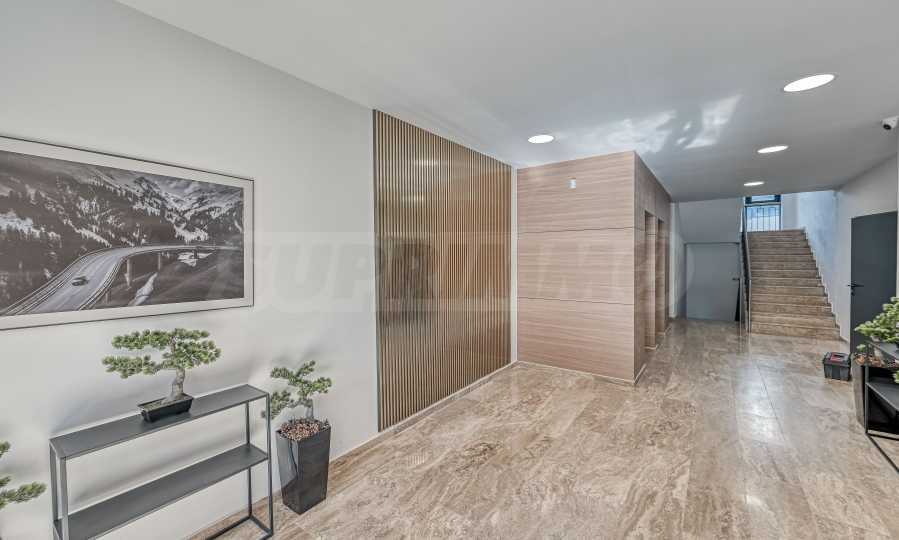Общите части на сградата са завършени с естествен камък и отличават с модерна визия и луксозно изпълнение. Има два асансьора Orona с капацитет по 6 души всеки. Балконите са завършени с мразоустойчив гранитогрес, а звукоизолационна мембрана между етажите гарантира тишина и комфорт. Входната врата е висок клас блиндирана с касова брава.