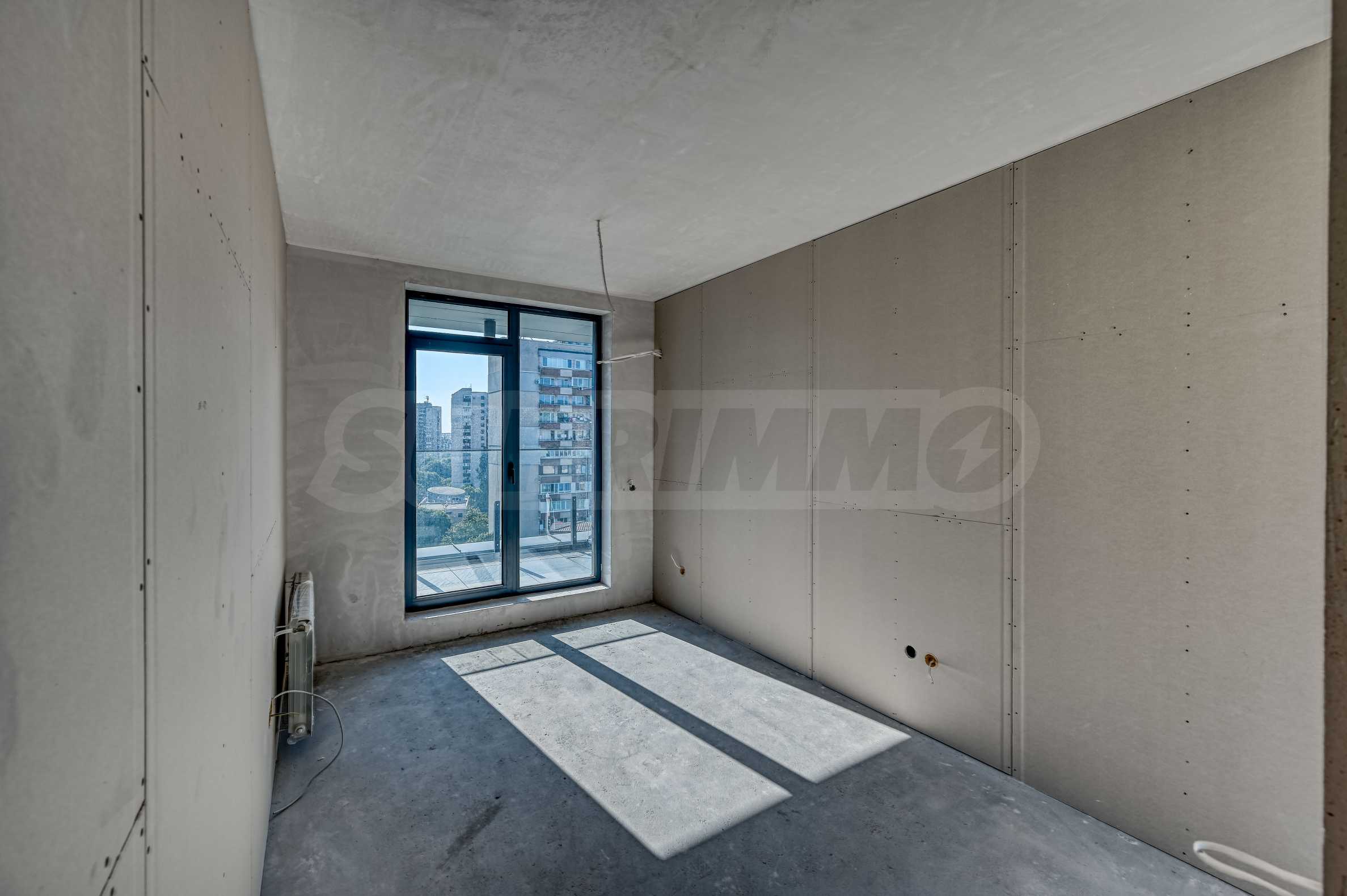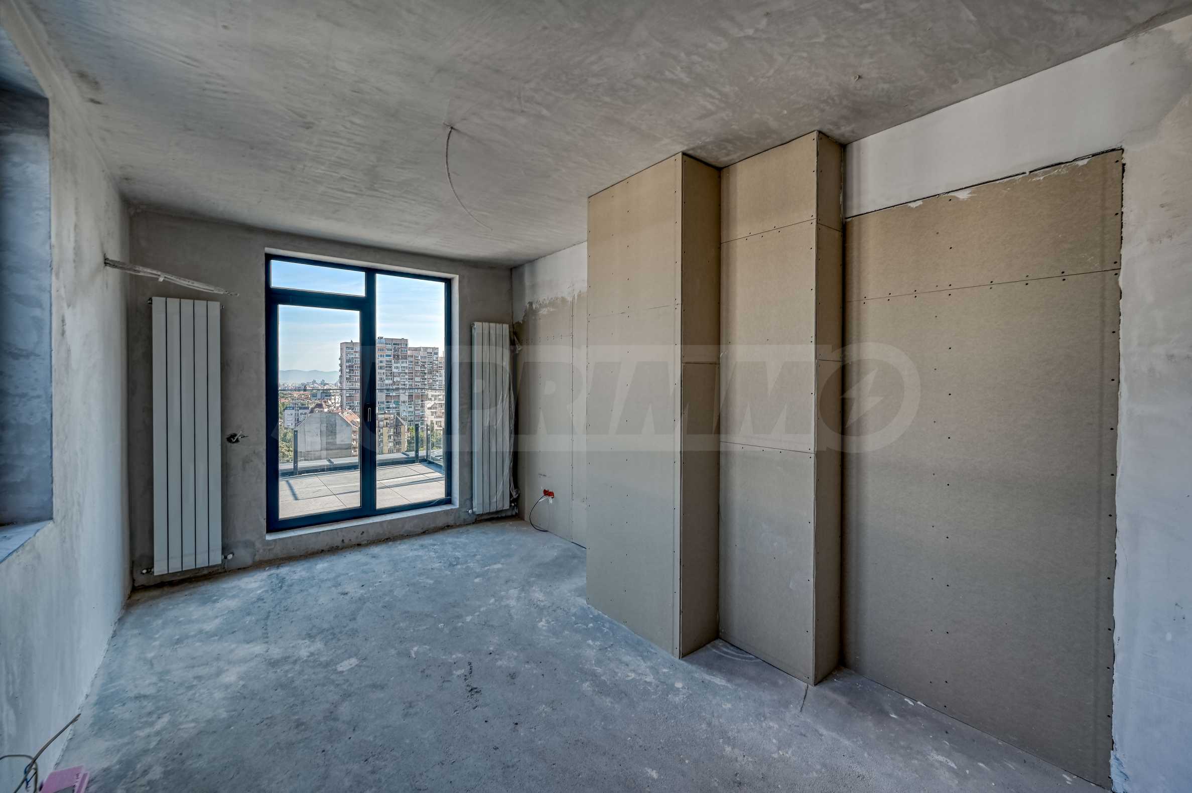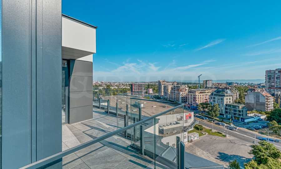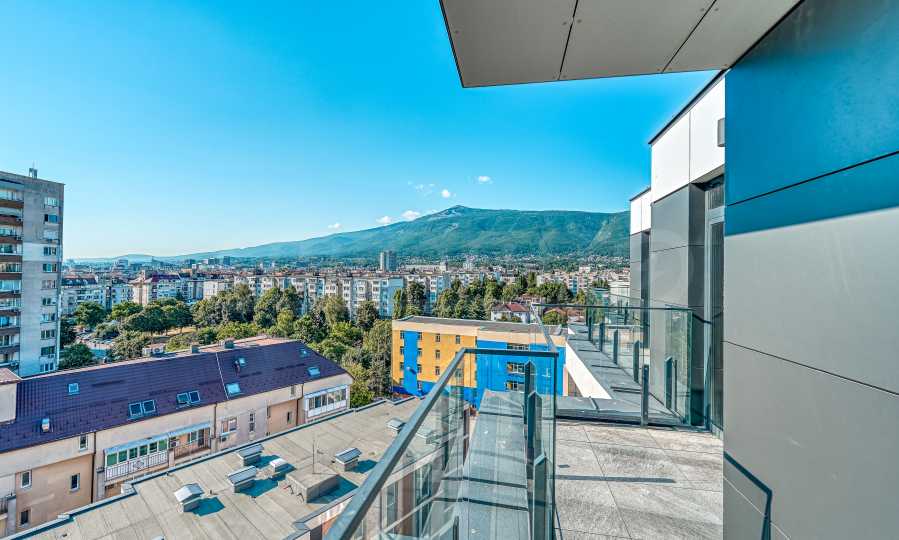 Апартаментът е с троен обхват на изложения – запад, север и изток – което осигурява светлина през целия ден и панорамни гледки към Витоша и града.