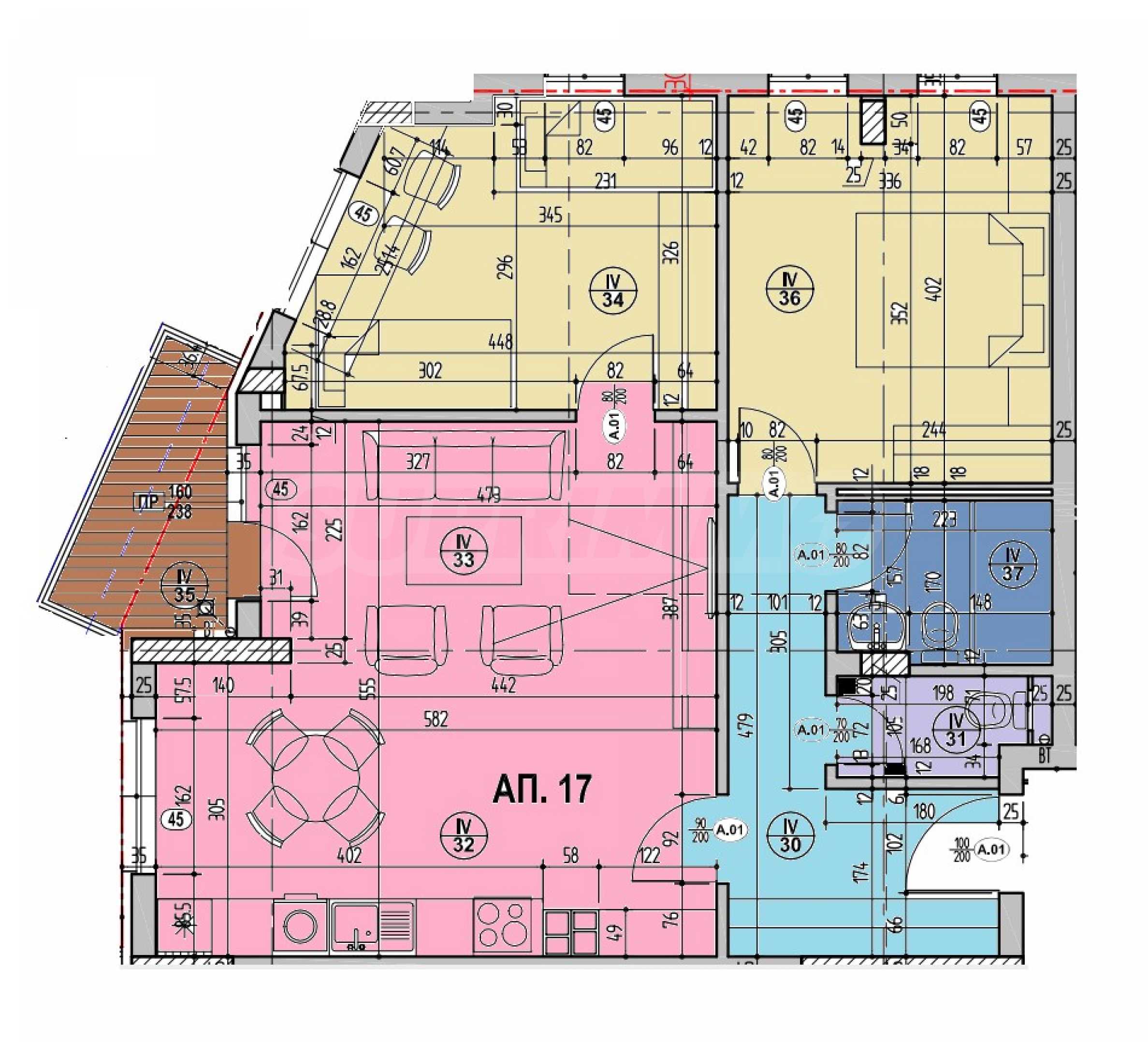 Апартаментът е разположен на 4-ти етаж и е с чиста площ 85,50 кв.м.