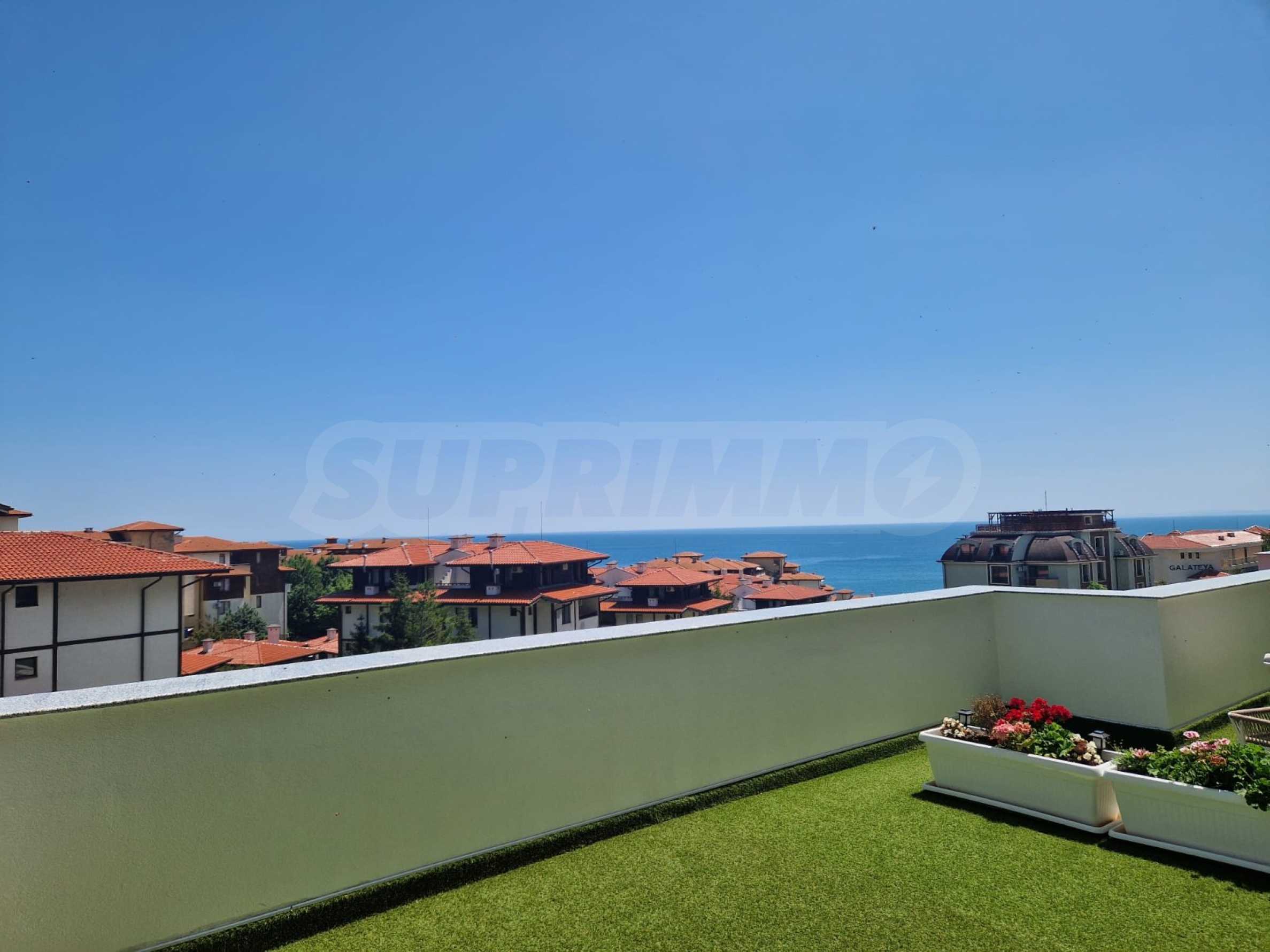 Студиото е с чиста площ от 34 кв.м и обща площ от 43 кв.м, разположено е на 2-ри етаж и предлага прекрасна, голяма тераса с гледка към морето и залива, идеална за отдих на открито.