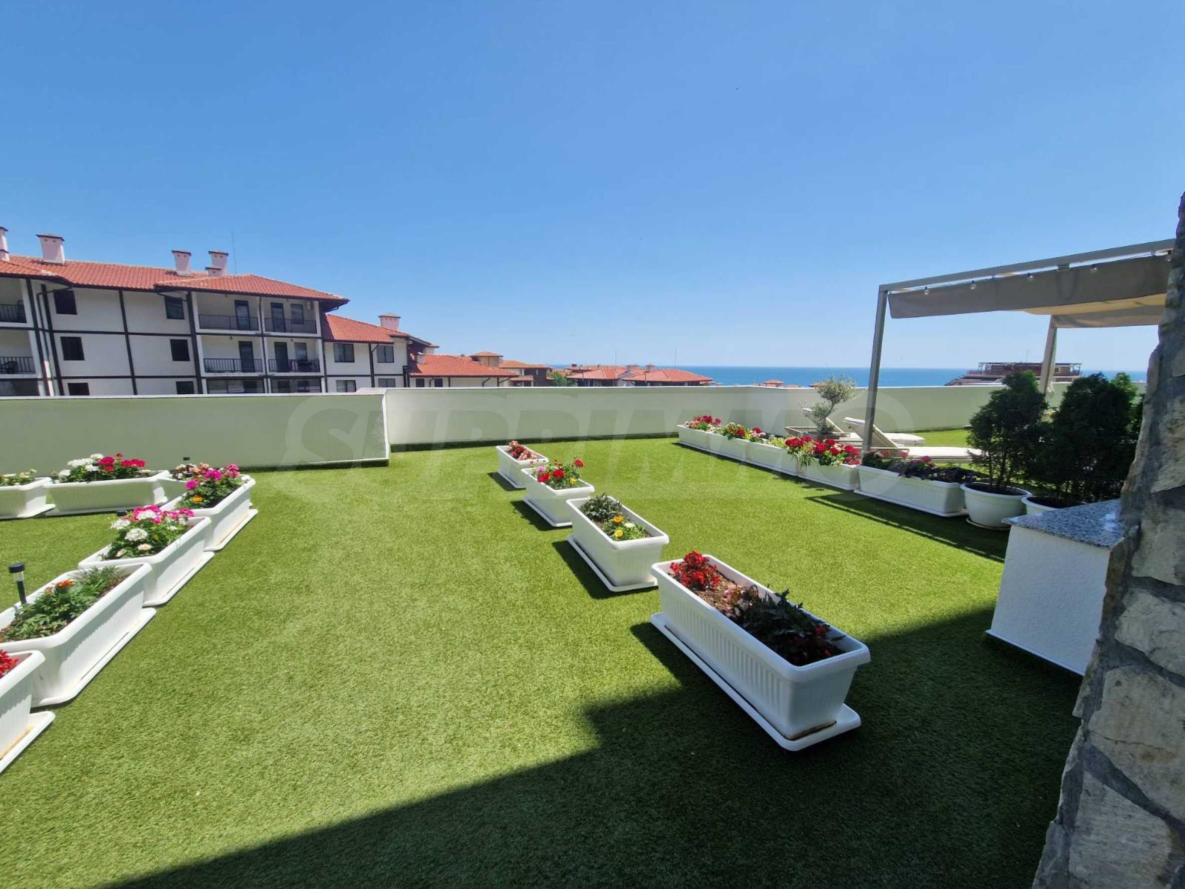 За удобството и уюта на обитателите, комплексът предлага два големи басейна за възрастни и деца, бар към басейна и богато озеленена градина с екзотични дървесни видове и зони за релакс.
