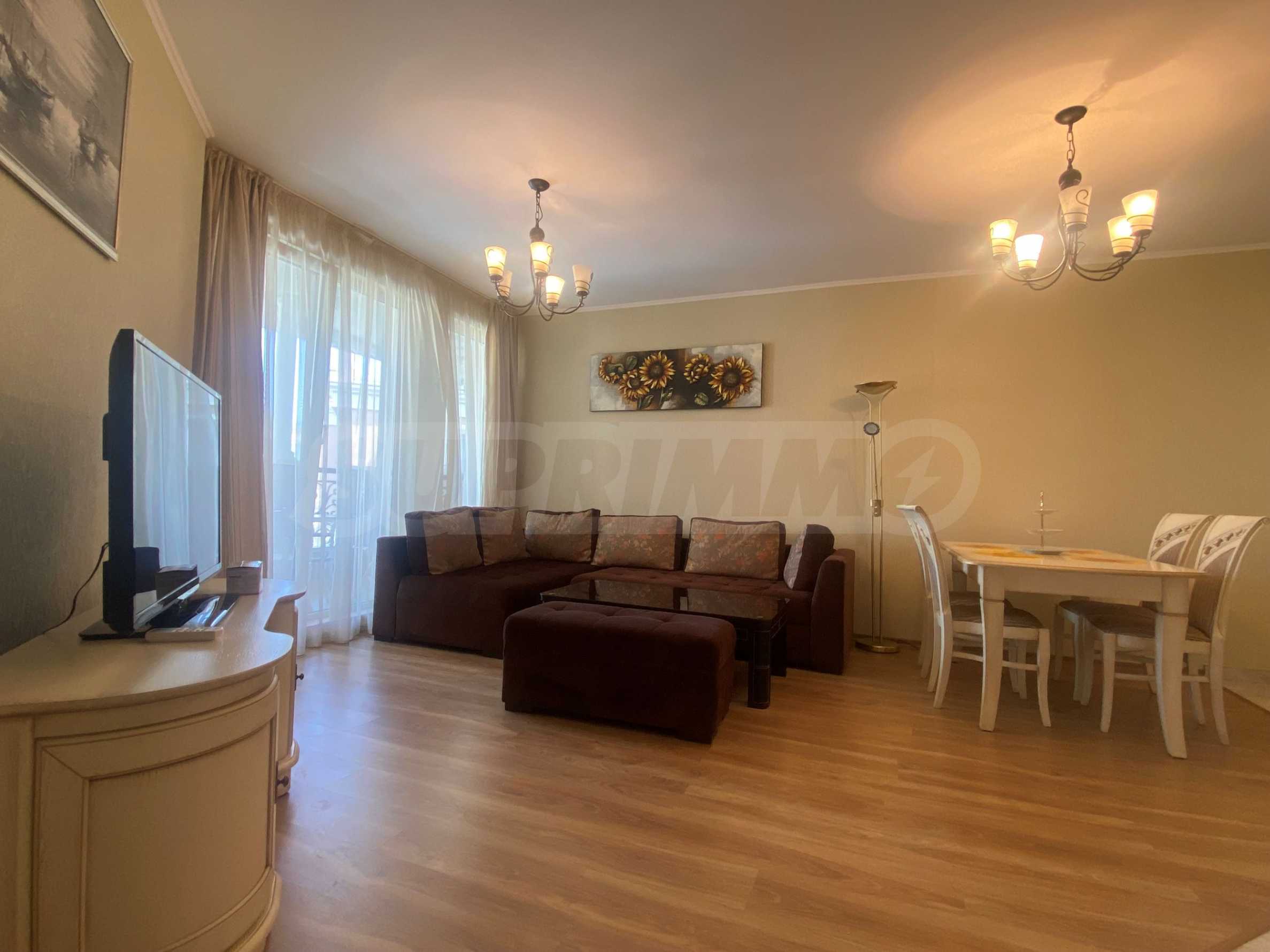 • просторна всекидневна с напълно оборудвана кухня, трапезария, мека мебел, ТВ зона и климатик;