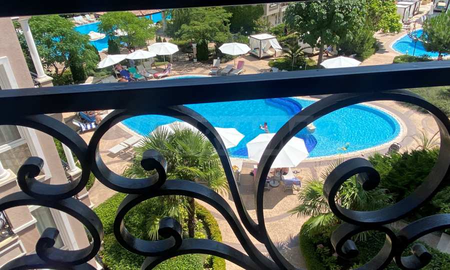 • тераса с прекрасна гледка към басейна.