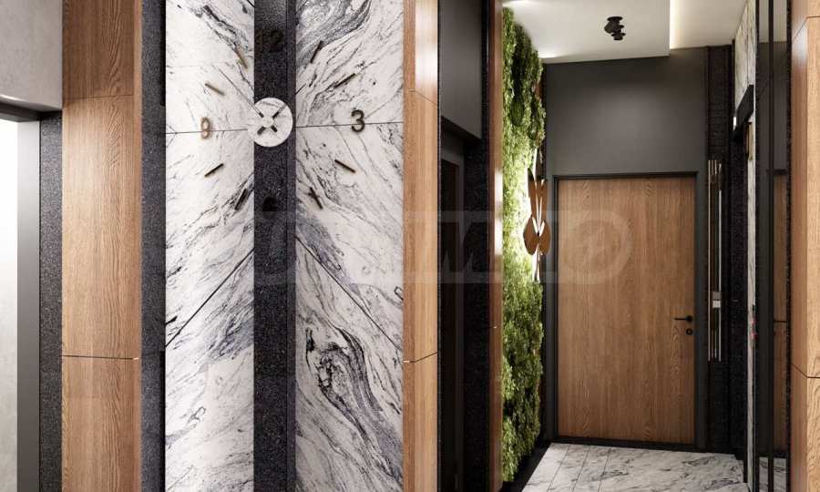 • фоайе и общи части по специален интериорен проект - с вътрешно оформление от мрамор, съчетан с декоративни елементи Ламинам;