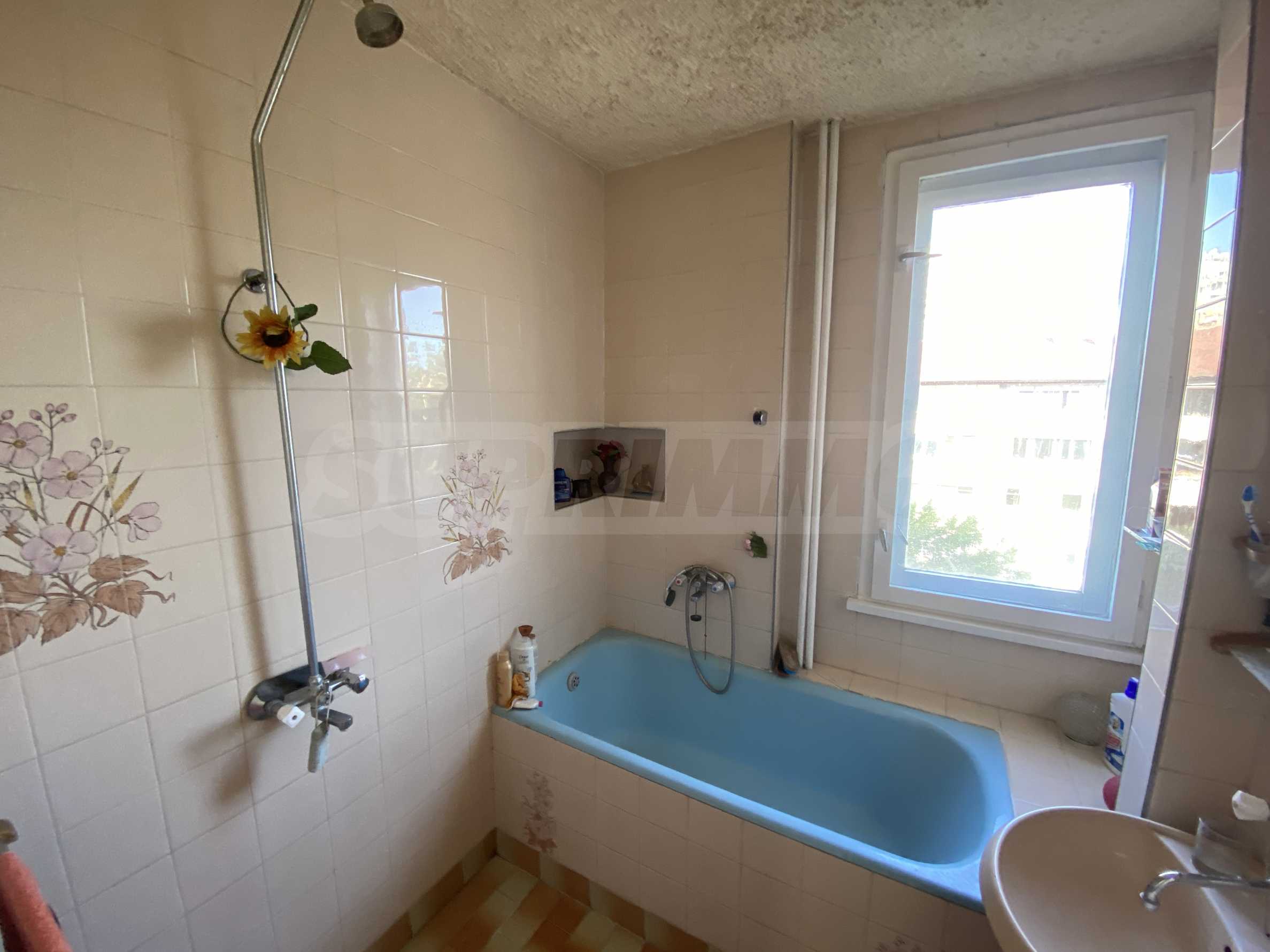 Имота е с площ от 97 квадратни метра и е разположен на пети етаж в сграда, оборудвана с асансьор.