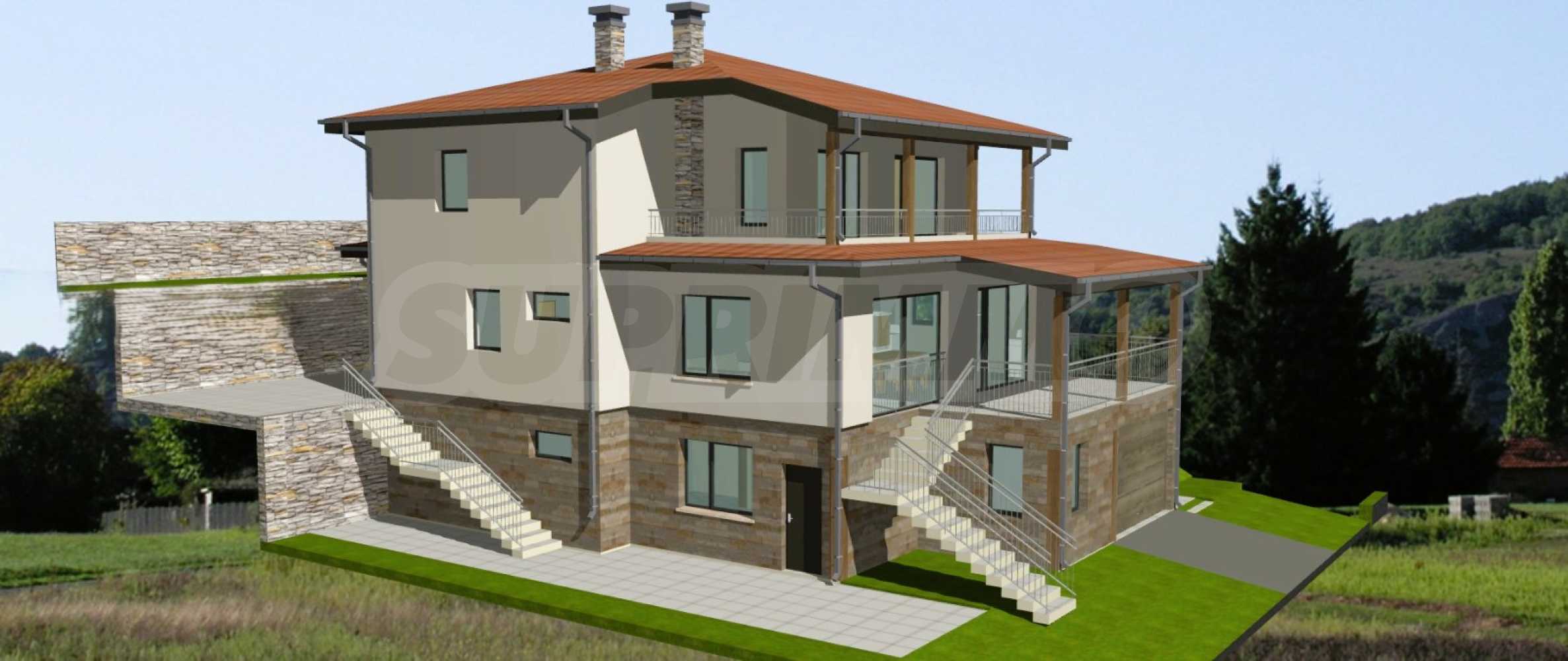 Местоположението на къщата предлага чист въздух, тишина и невероятни природни гледки. Архитектурната и визия е модерна, хармонираща със заобикалящата зелена среда и създаваща усещане за спокойствие. Разположена в парцел с площ от 567 кв.м, къщата е разпределена на три нива с просторни и функционално разпределени помещения.
