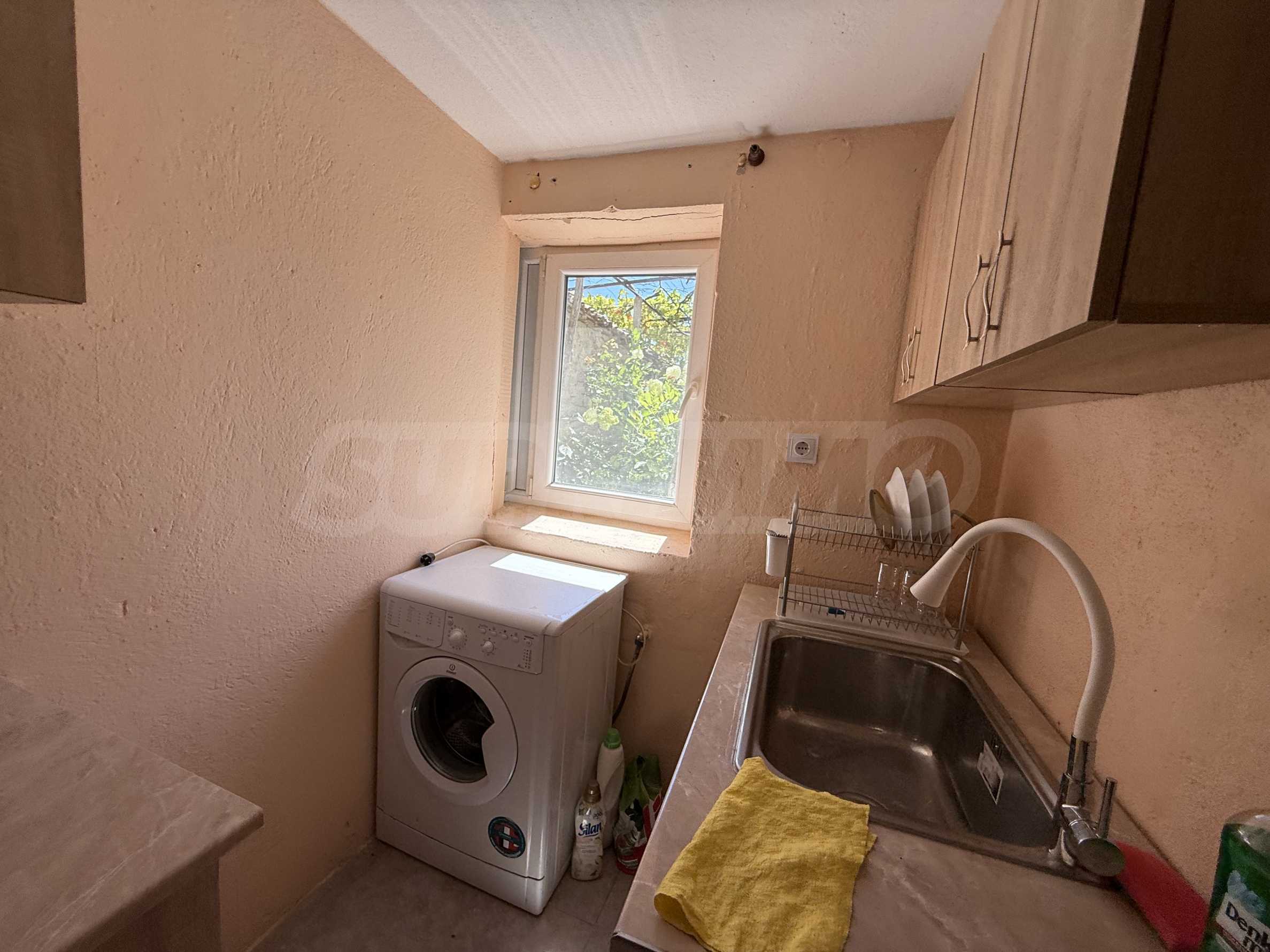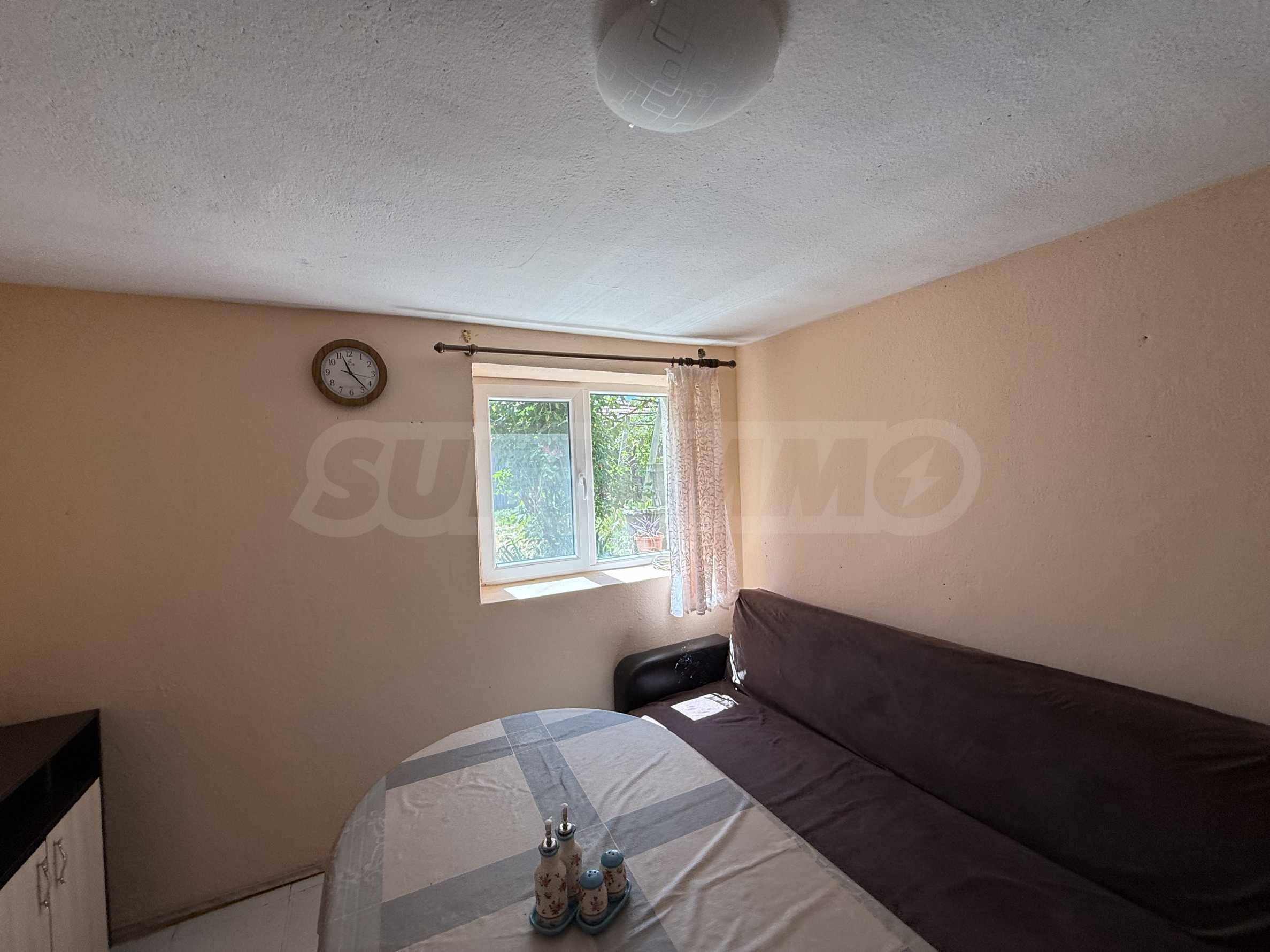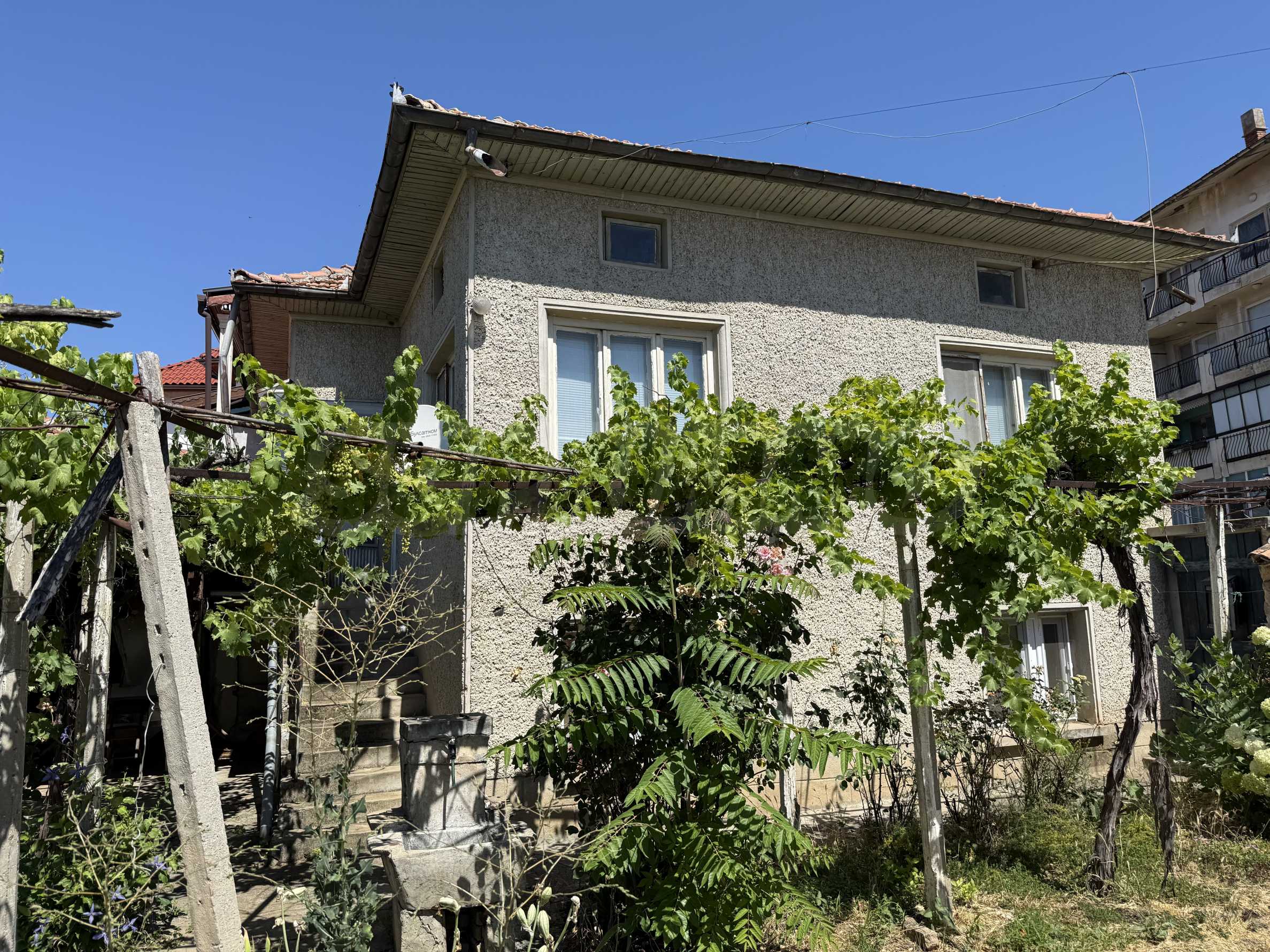 Имотът разполага с частично подменена дограма, вътрешни и външни стълби, ток и вода от централен водопровод. Просторният двор позволява допълнителни подобрения като барбекю зона, зеленчукова градина или дори малък басейн.