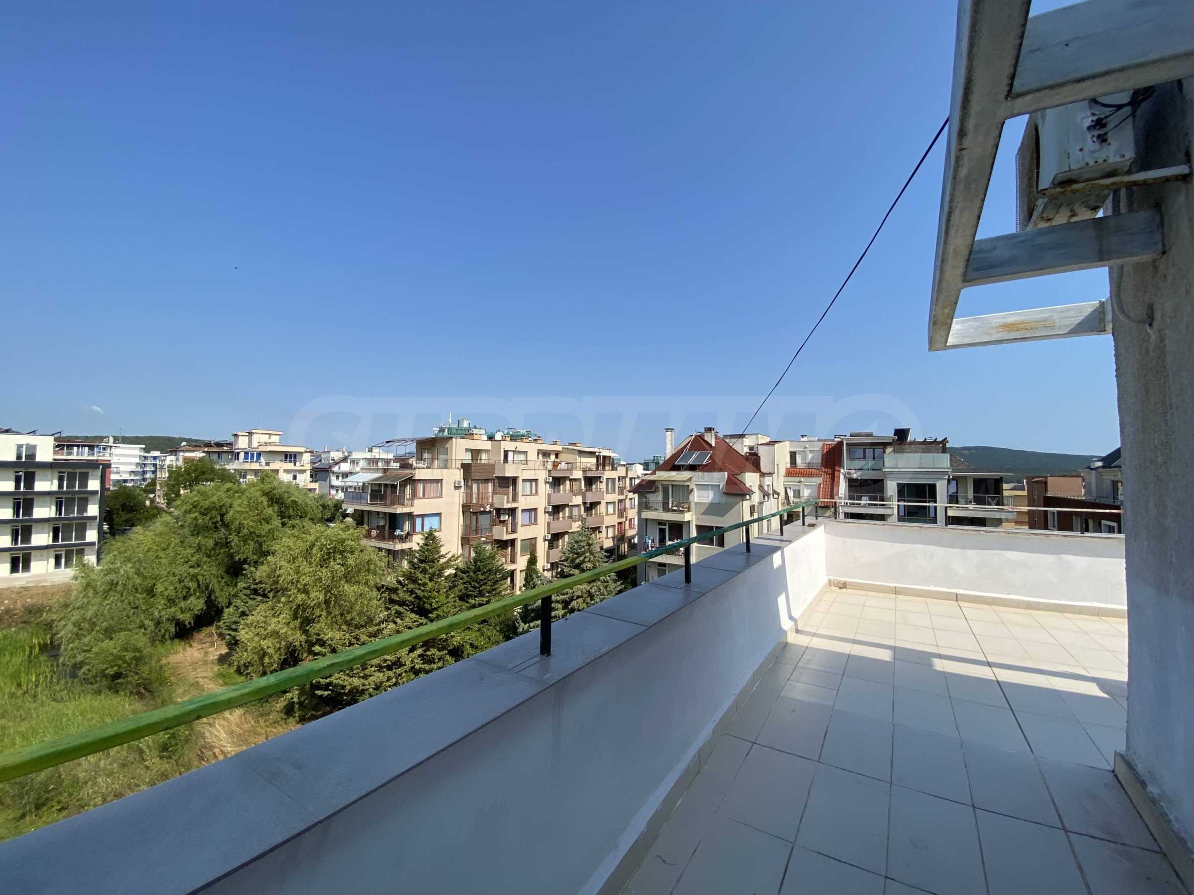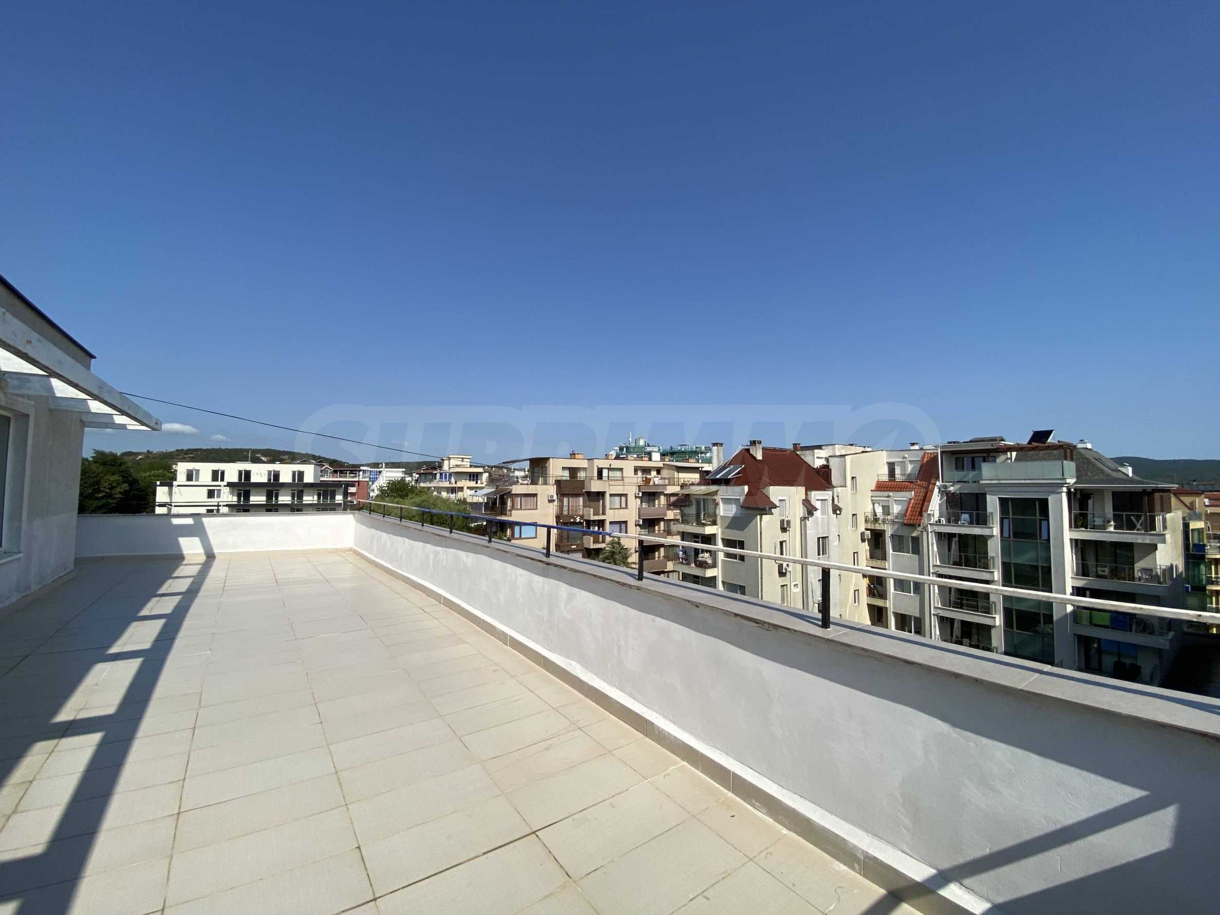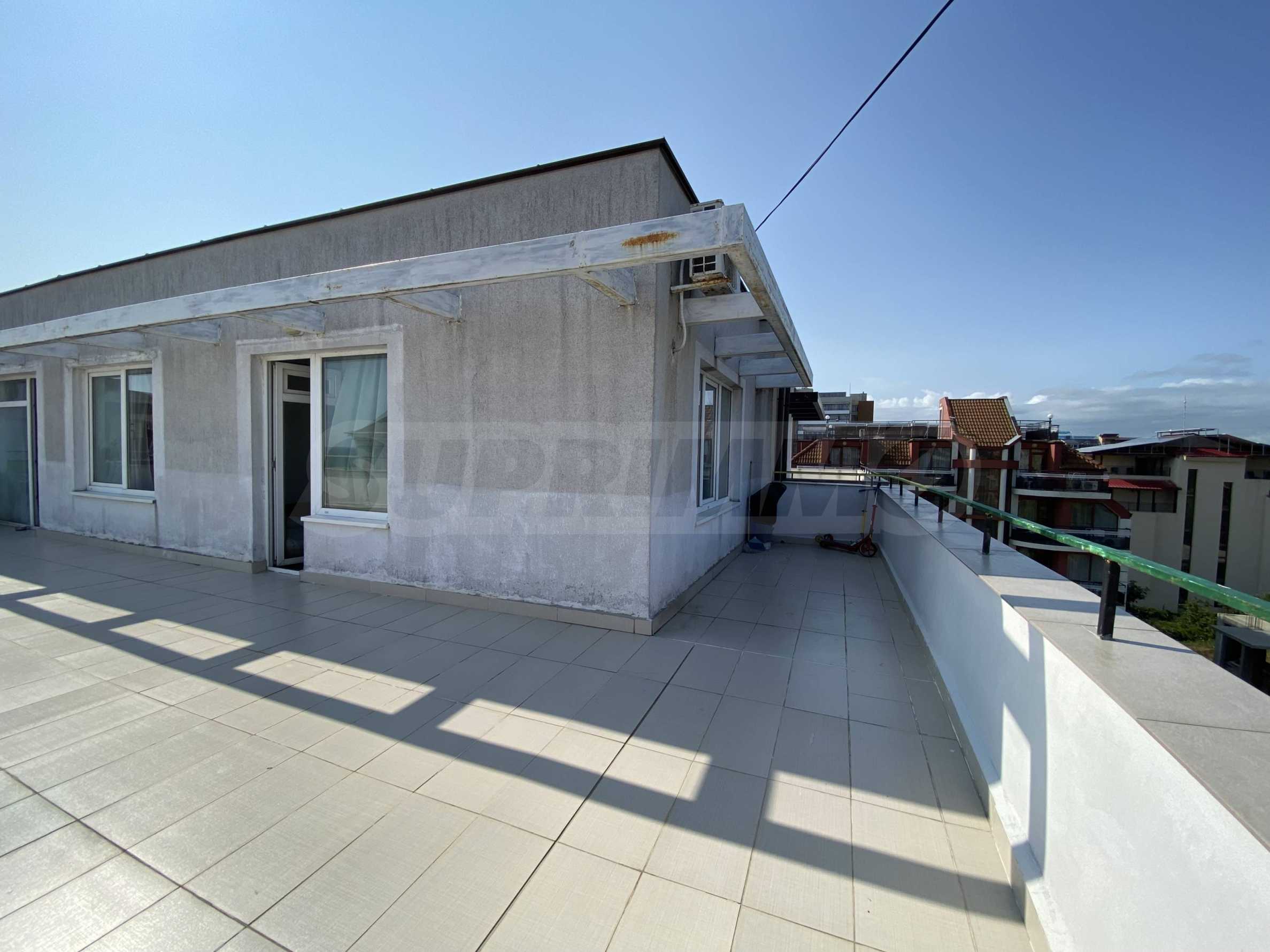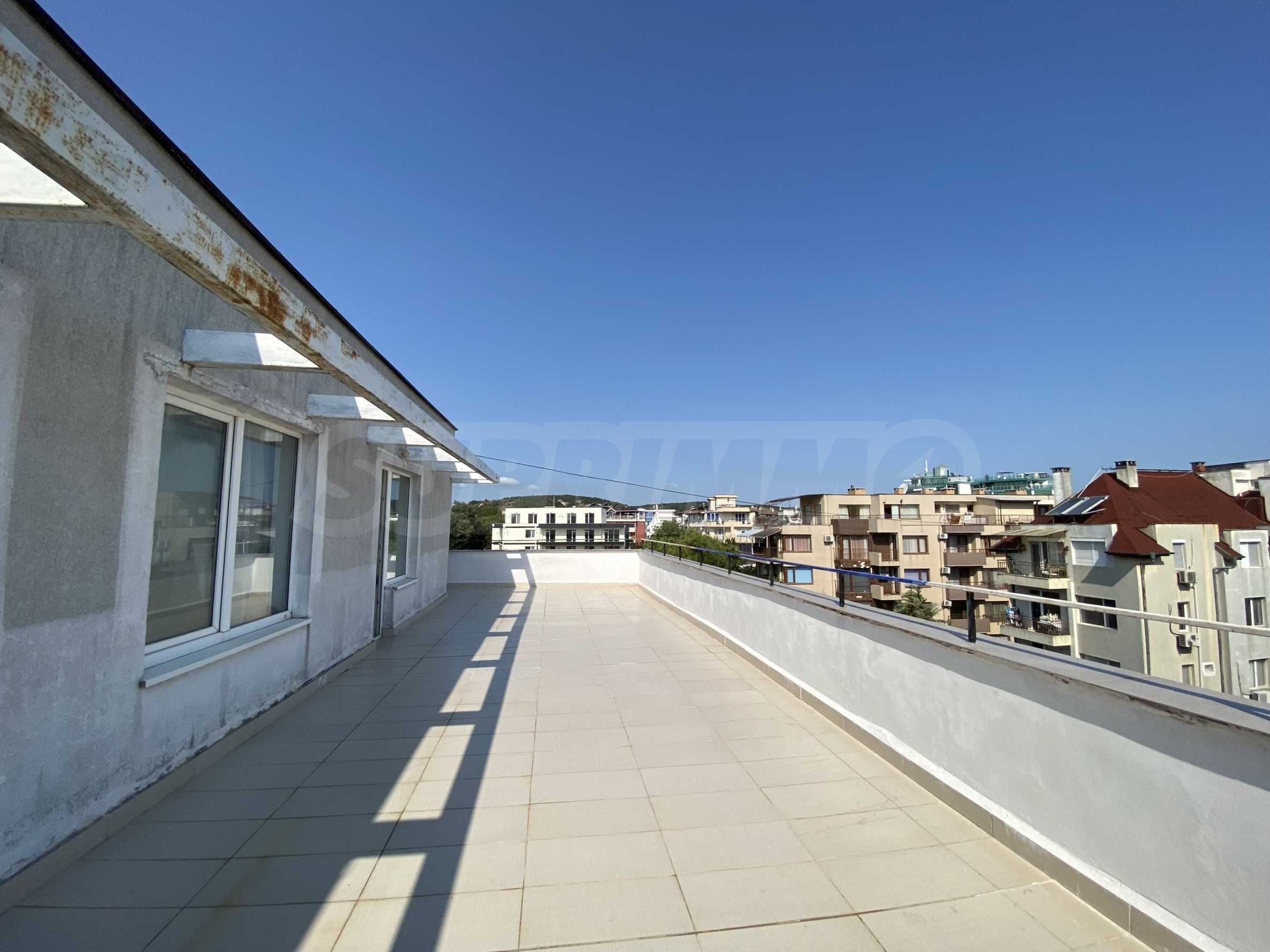 Имотът е с обща площ 52,45 кв.м, разположен на 5-и етаж с тераса с площ от 64,46 кв.м и красива гледка към морето.