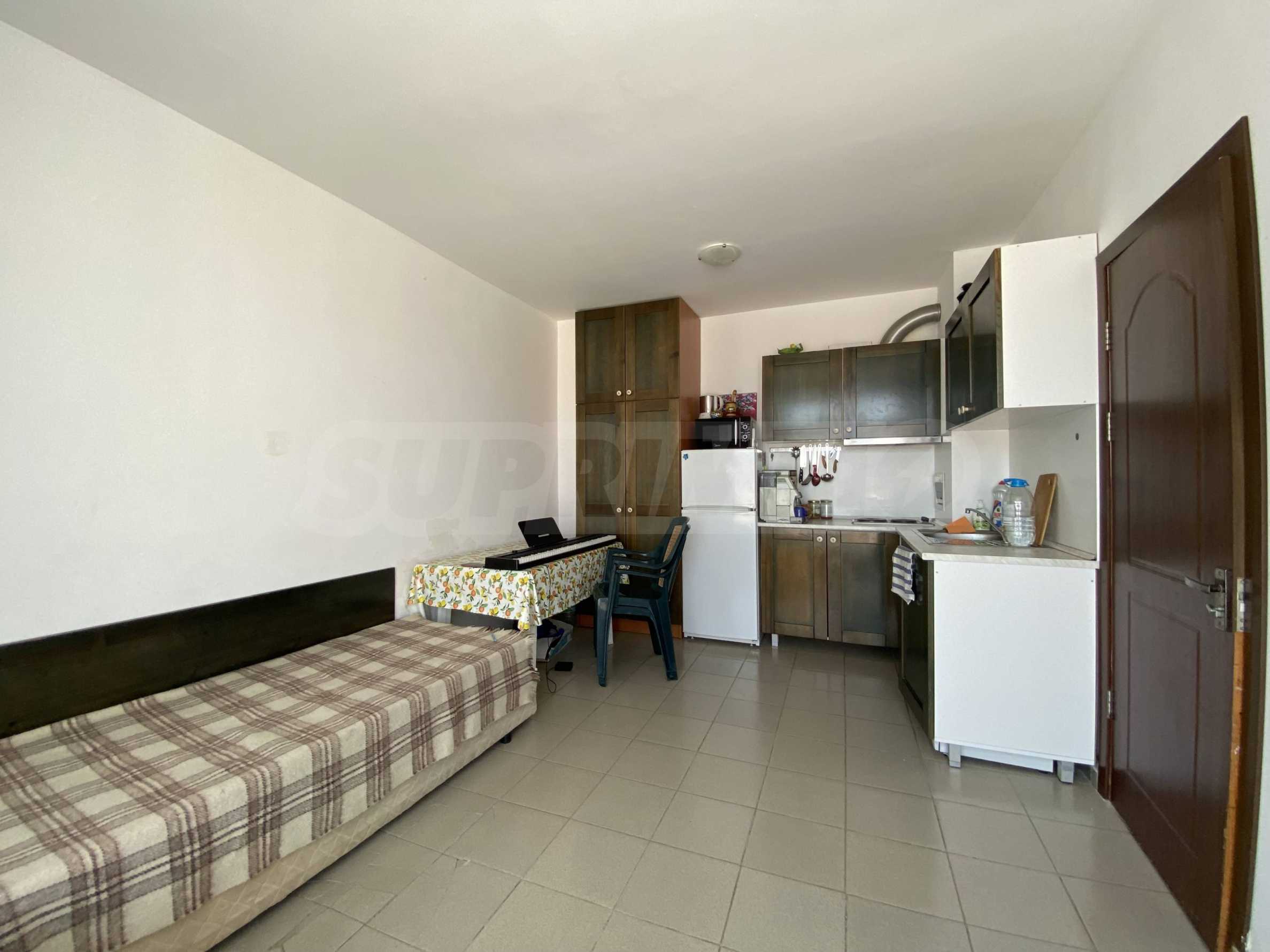 Жилището е за основен ремонт, има възможност терасата да се покрие и да се увеличи площта на апартамента. Подходящ е както за ваканционно ползване, така и за целогодишно обитаване.