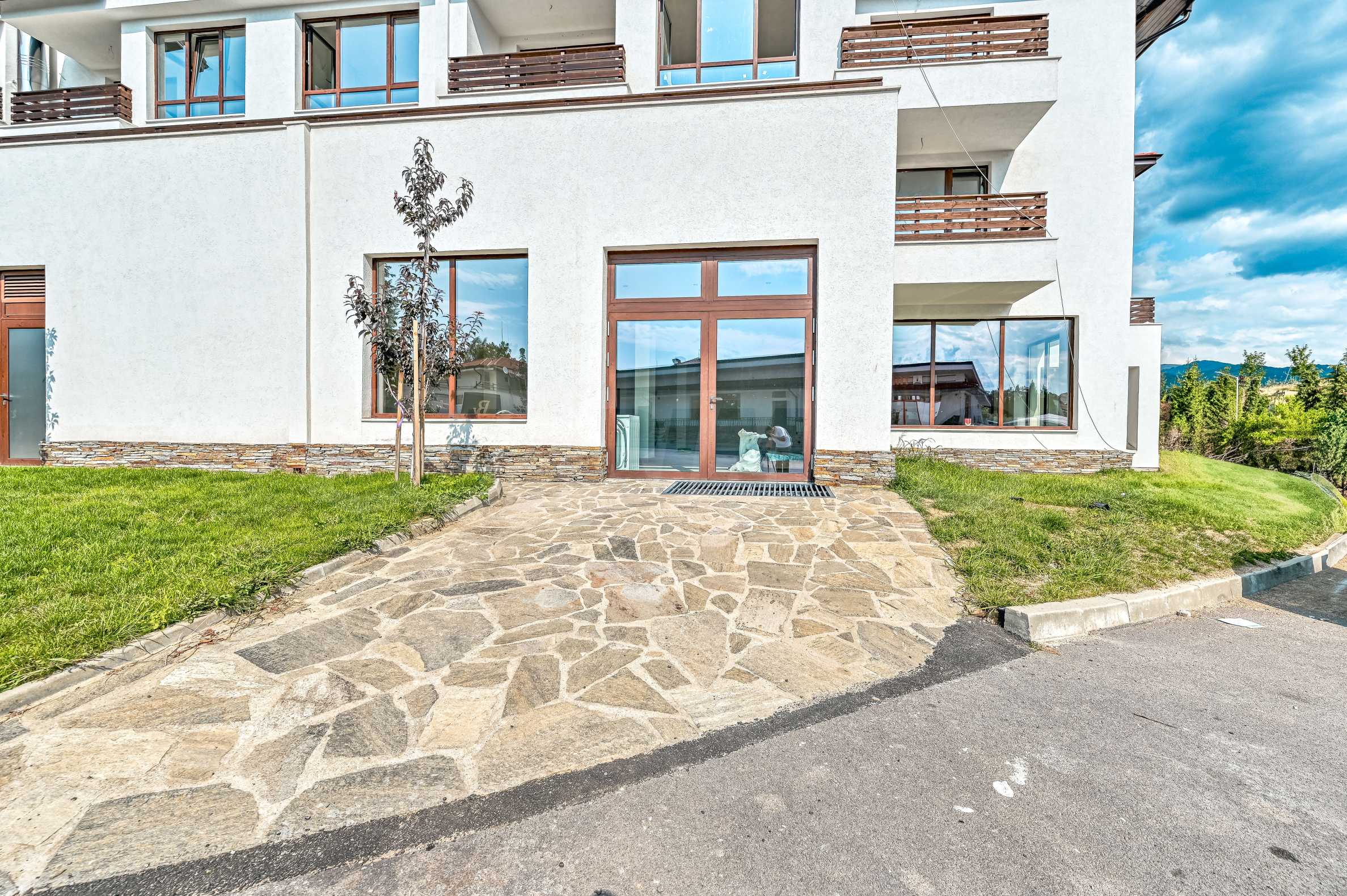 - Локация: Помещението се намира в нова сграда, отстрани на която е разположен стилен ресторант.