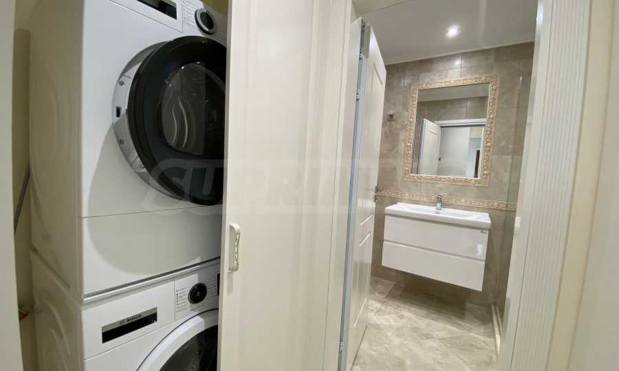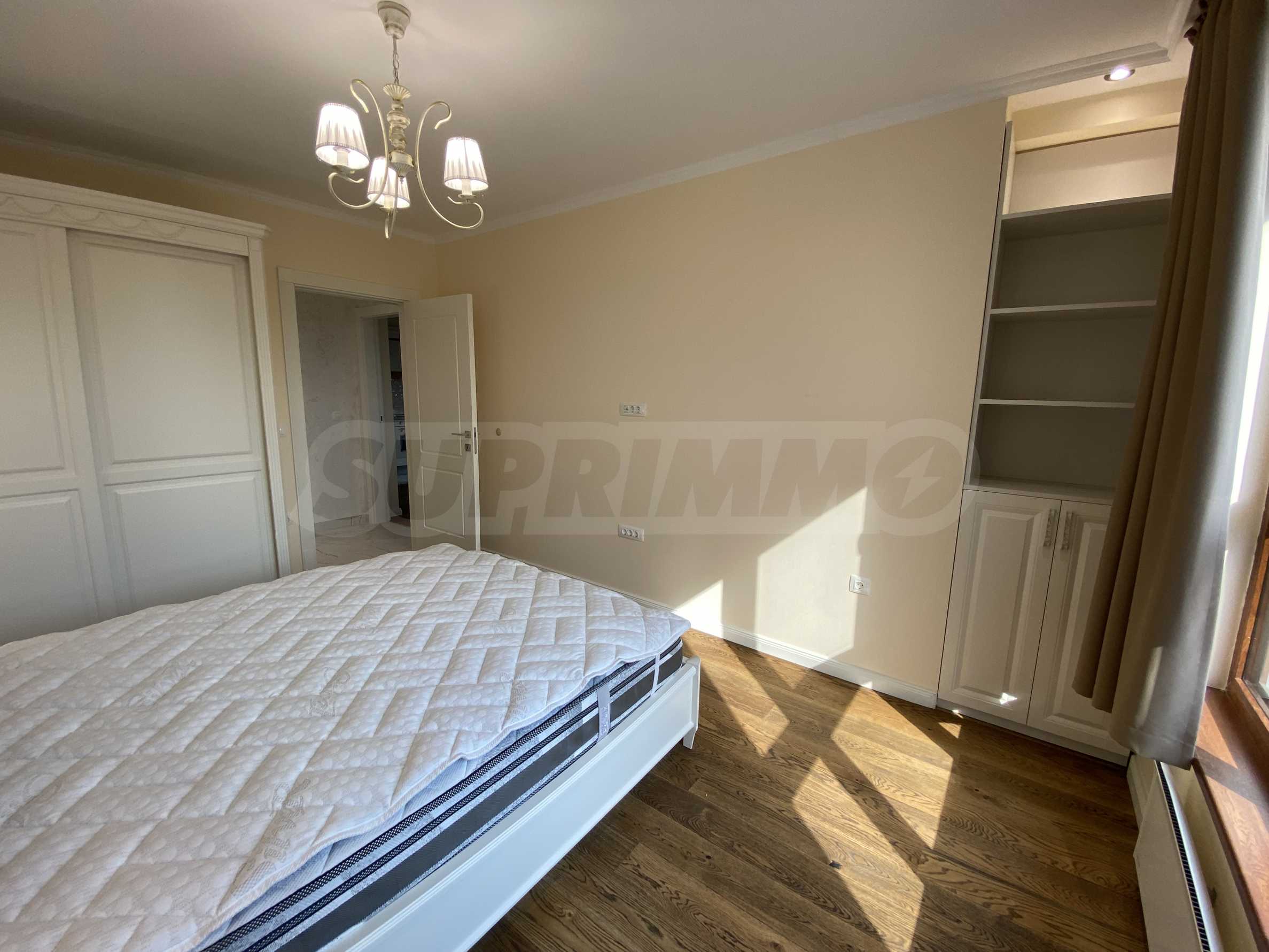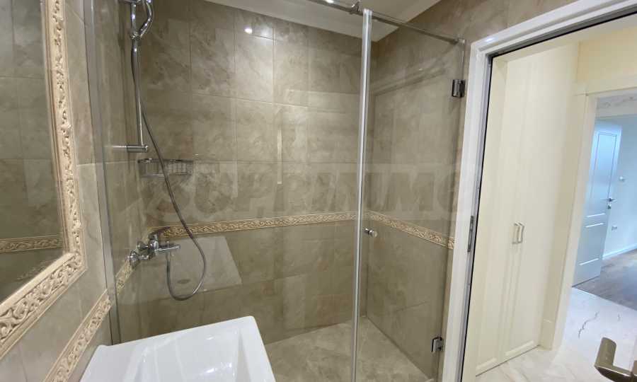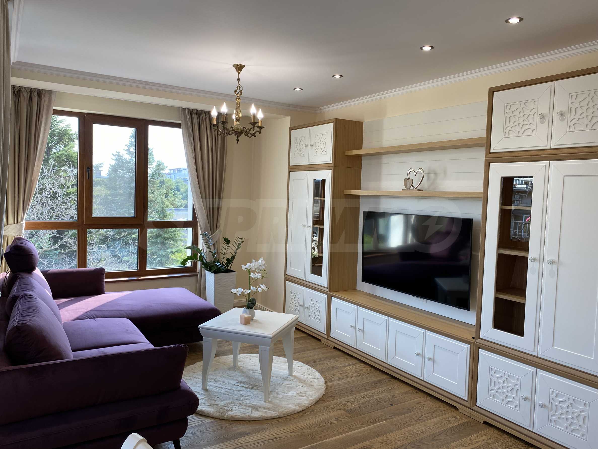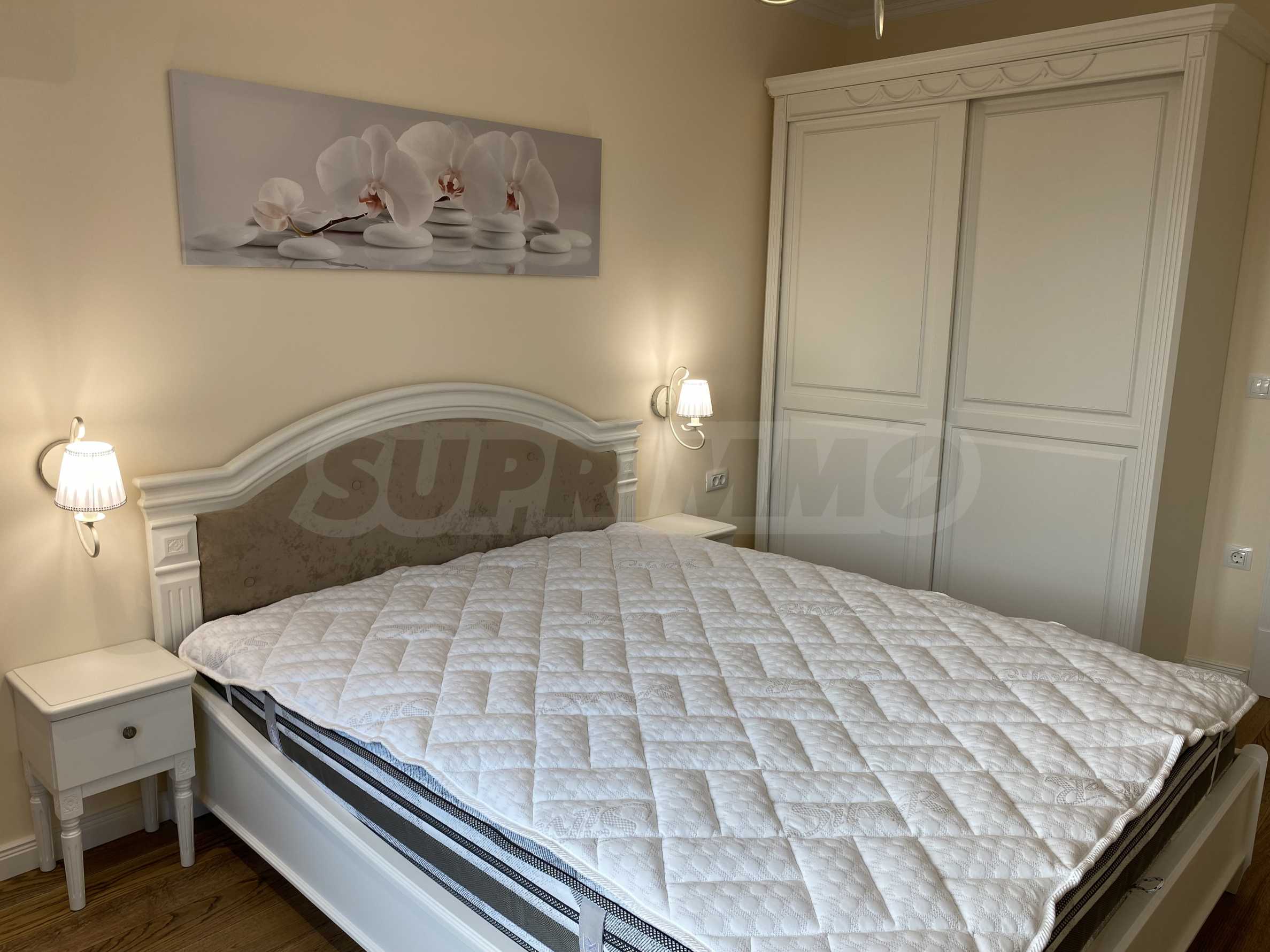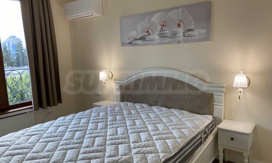 Апартаментът е луксозно обзаведен по дизайнерски проект с поръчкови мебели от масивно дърво. Всеки детайл е внимателно подбран, за да осигури максимално удобство и комфорт.
