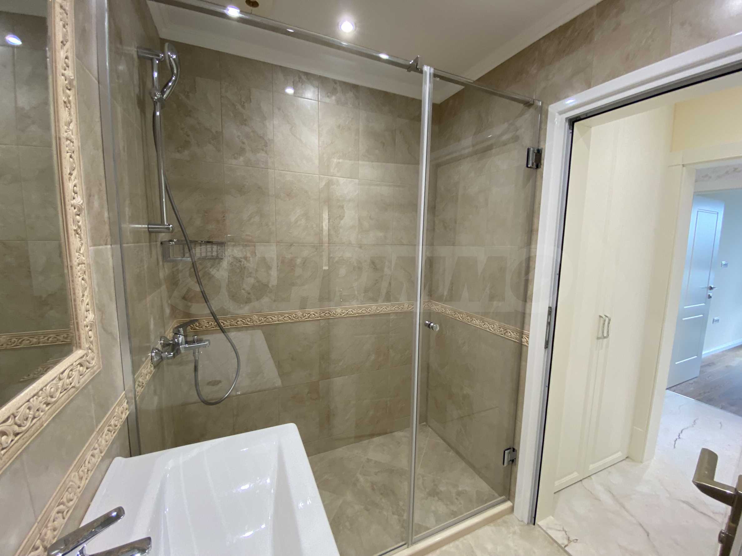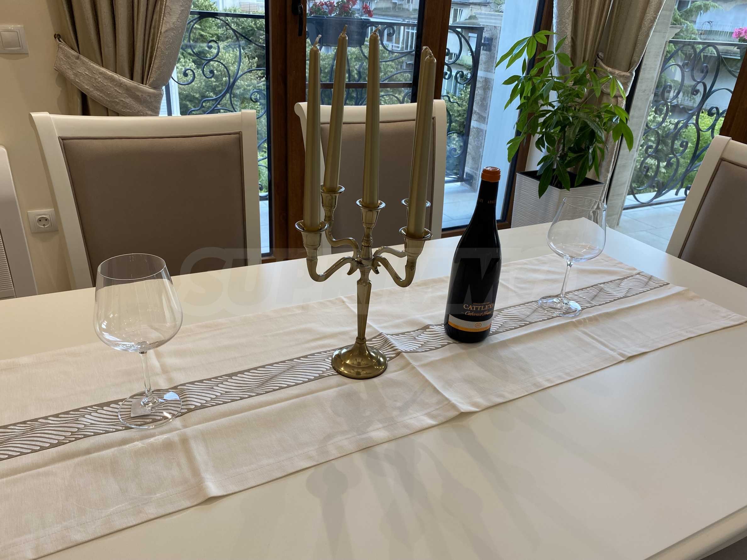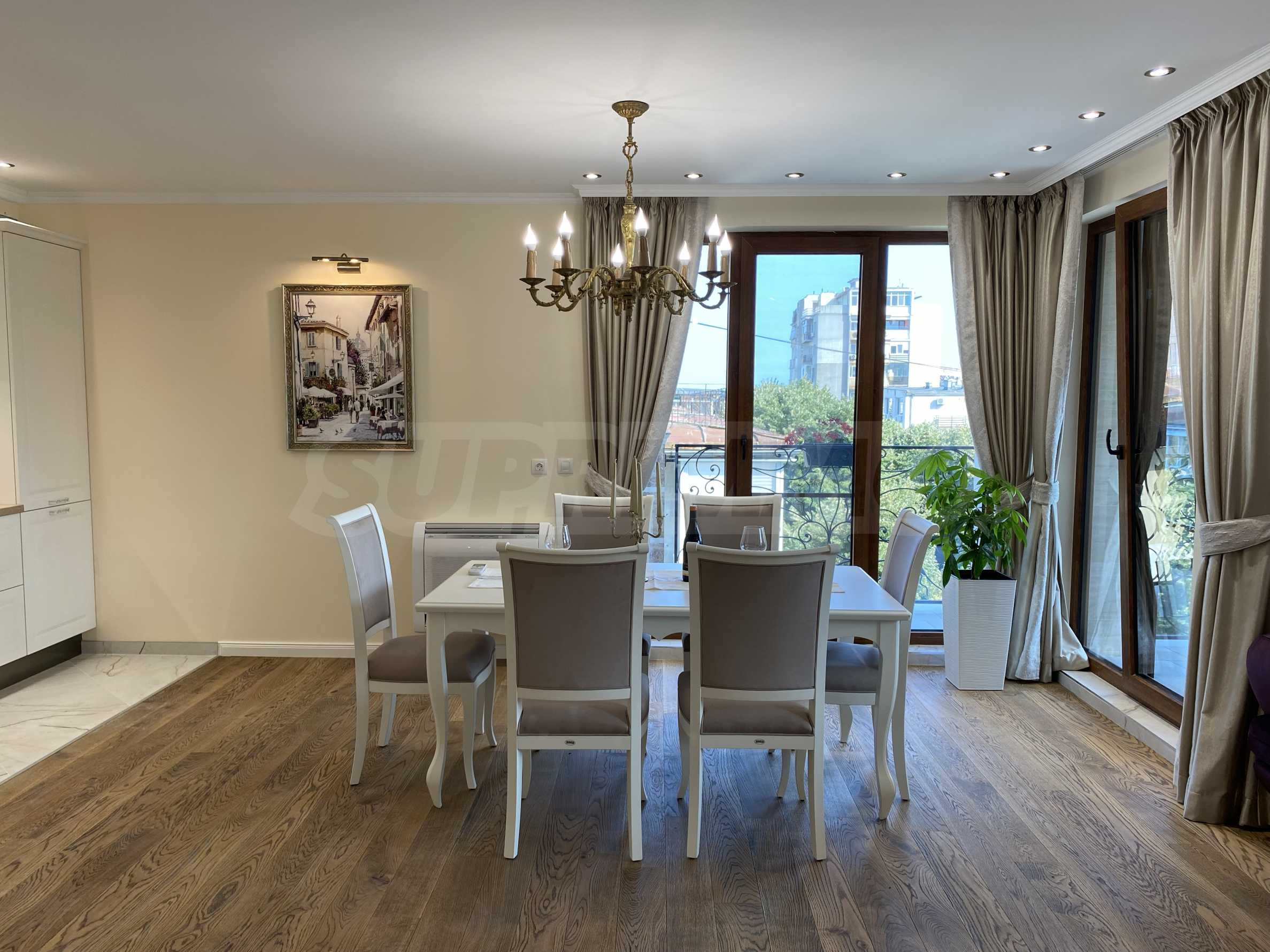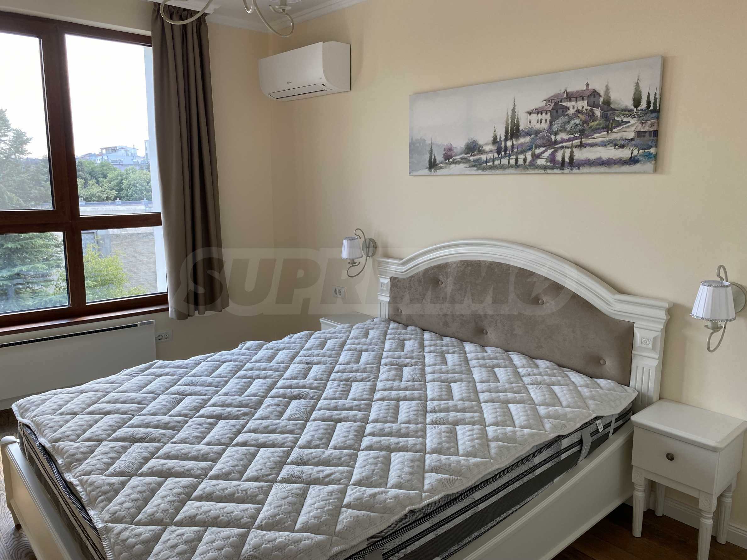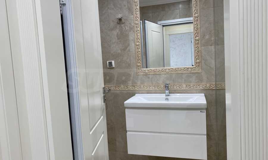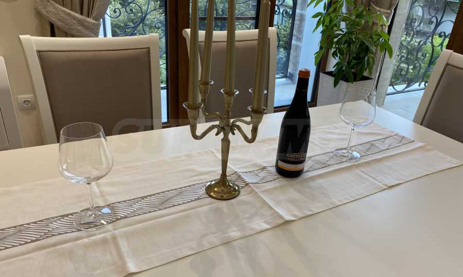 Апартаментът е луксозно обзаведен по дизайнерски проект с поръчкови мебели от масивно дърво. Всеки детайл е внимателно подбран, за да осигури максимално удобство и комфорт.