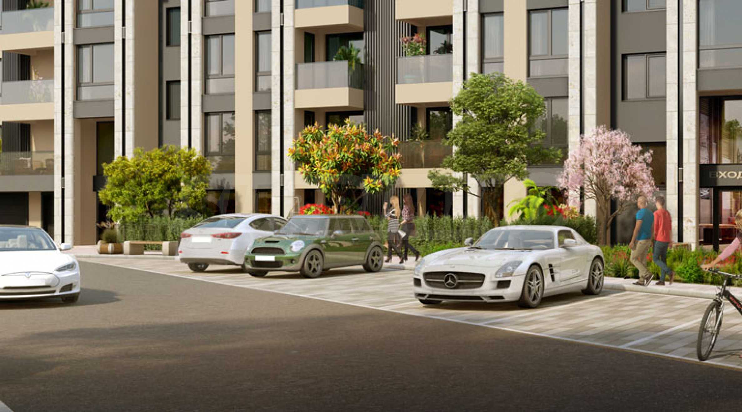 Паркирането е осигурено над 100%, посредством подземни и надземни паркоместа и гаражи - 200 паркоместа и 15 гаража. В подземния паркинг има обособени две зони за съхранение на велосипеди.