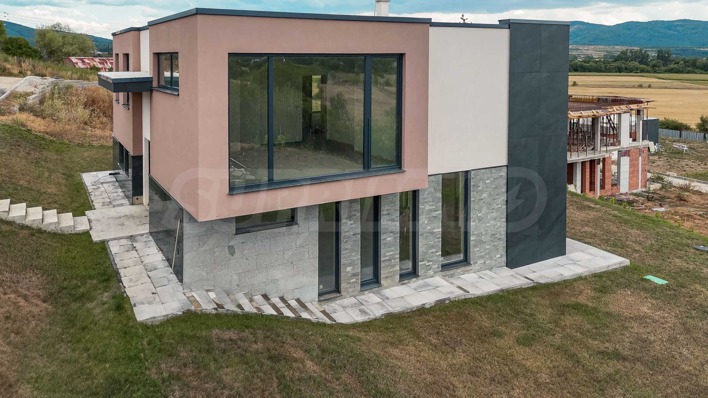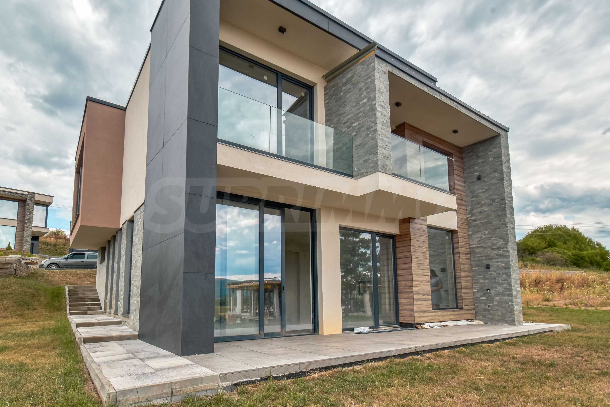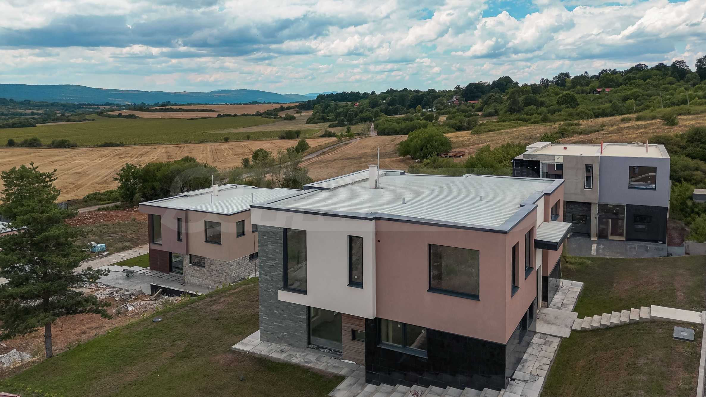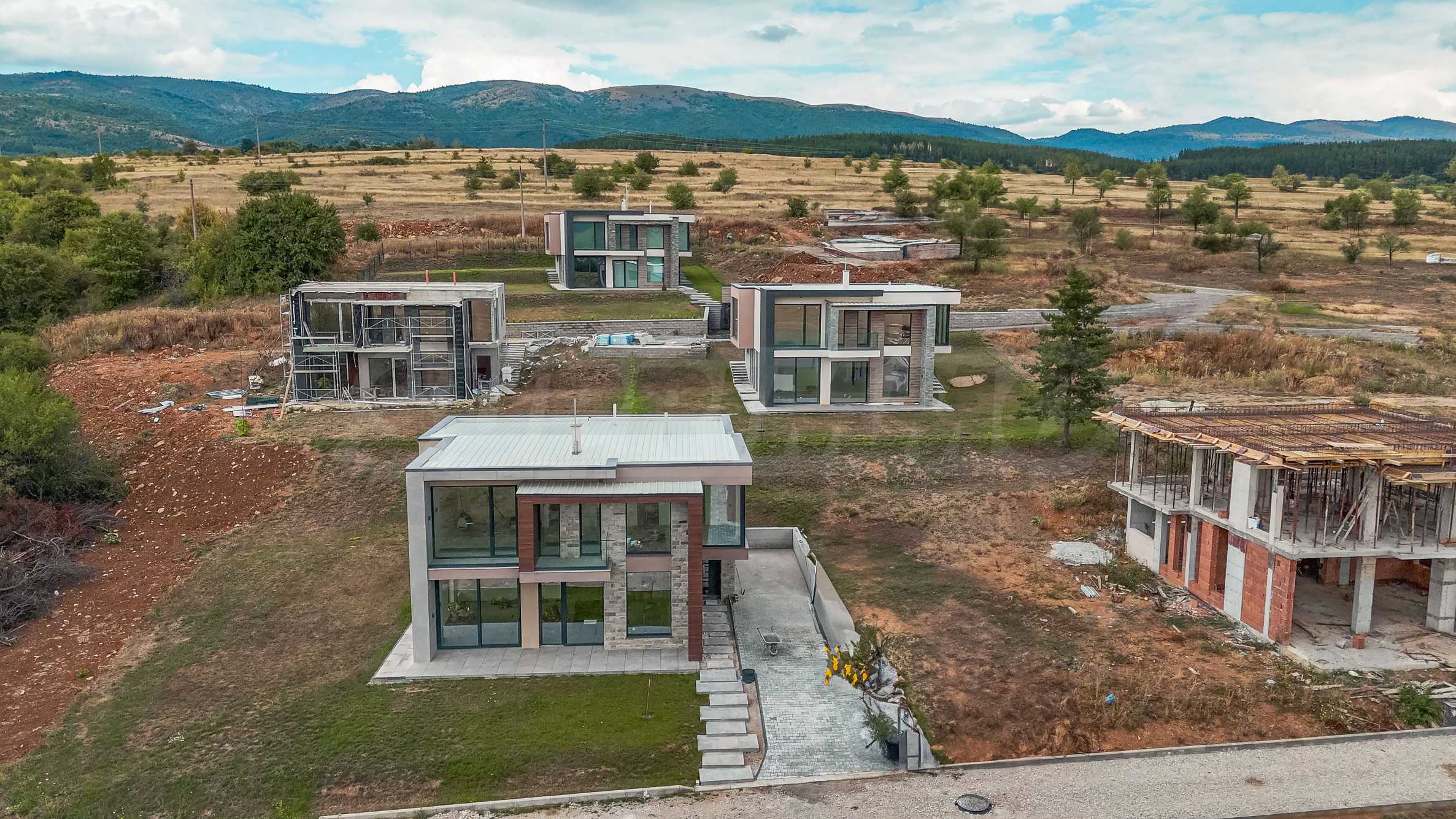 Архитектурната визия на комплекса съчетава изчистени линии, естествени материали като камък и дърво и внимателно подбрани фасадни решения. Висок клас изолация, дограма Rehau Geneo с троен стъклопакет, модерни входни врати и надеждни покривни решения гарантират дълготрайно качество и енергийна ефективност. Отоплението е предвидено чрез термопомпа и подово отопление, а интериорът се предава на шпакловка и замазка, с възможност за завършване „до ключ“ по индивидуален проект.