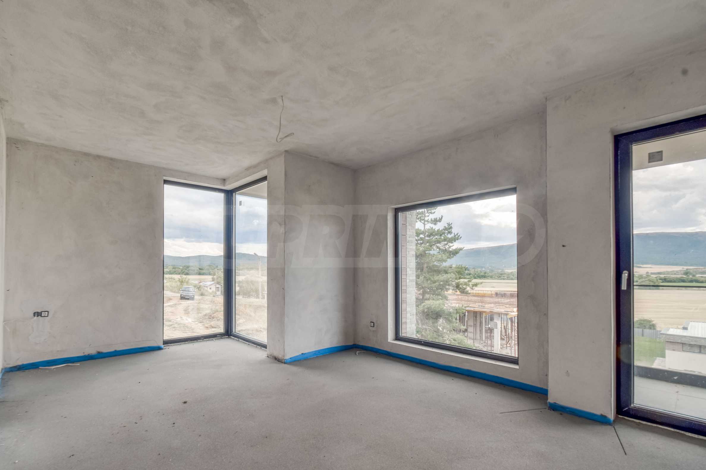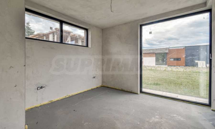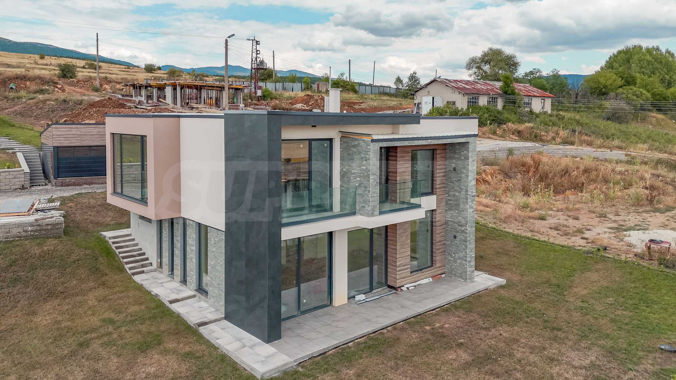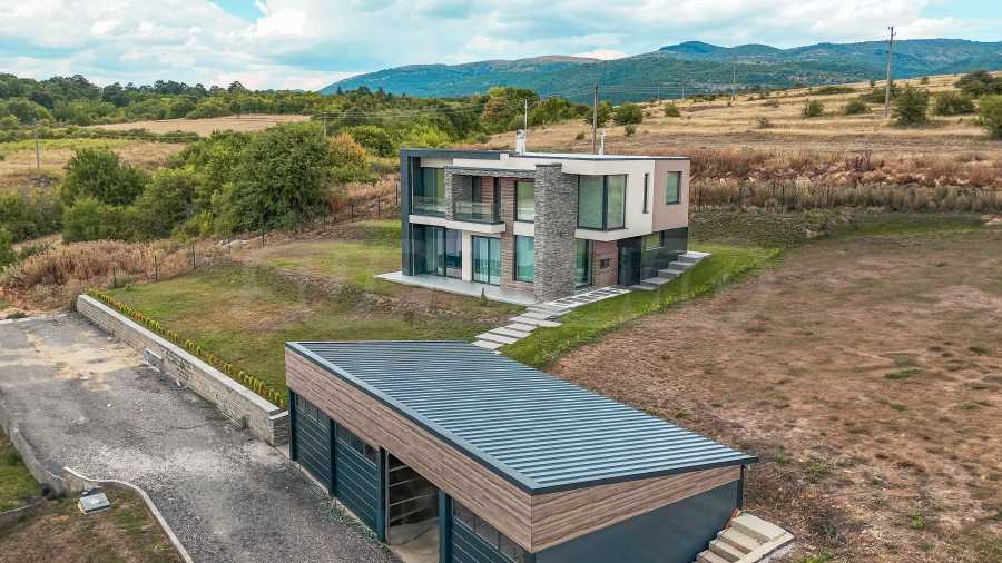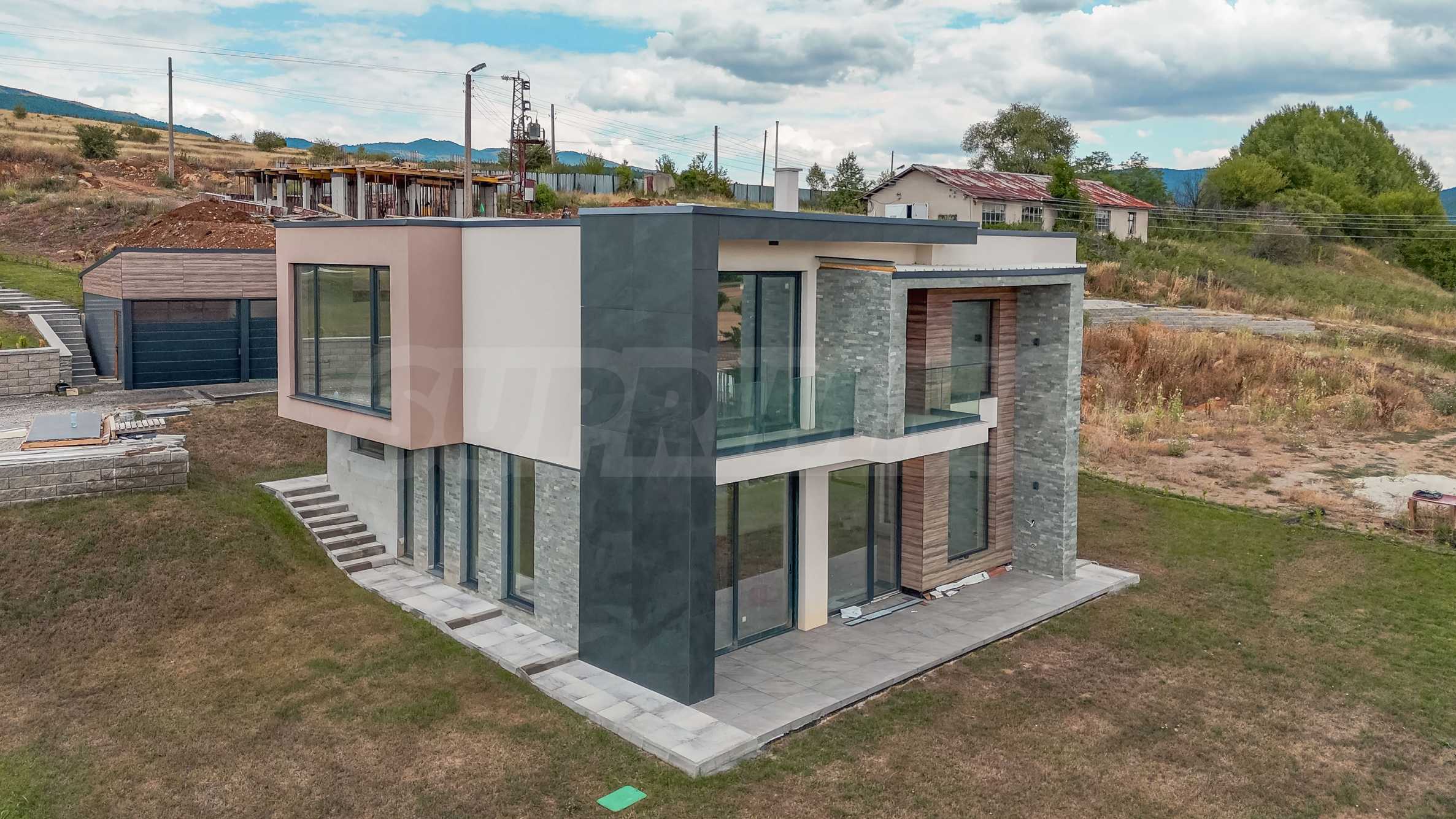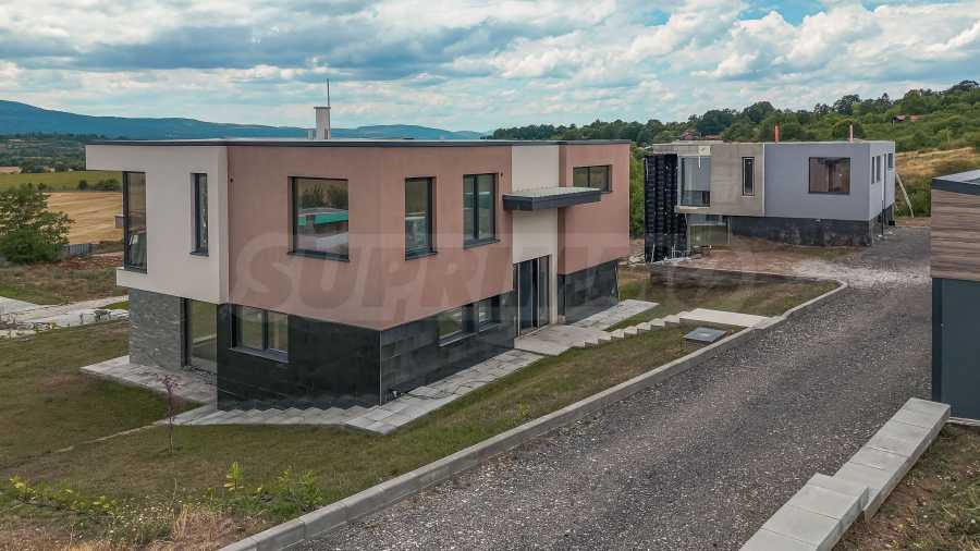 Архитектурната визия на комплекса съчетава изчистени линии, естествени материали като камък и дърво и внимателно подбрани фасадни решения. Висок клас изолация, дограма Rehau Geneo с троен стъклопакет, модерни входни врати и надеждни покривни решения гарантират дълготрайно качество и енергийна ефективност. Отоплението е предвидено чрез термопомпа и подово отопление, а интериорът се предава на шпакловка и замазка, с възможност за завършване „до ключ“ по индивидуален проект.